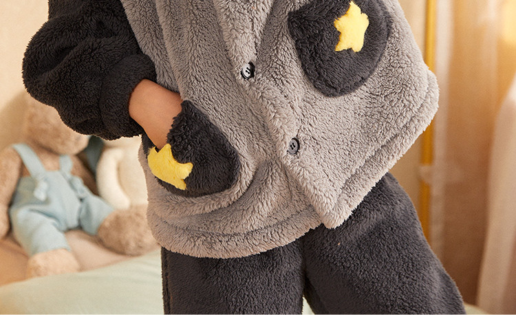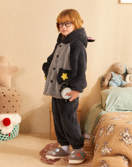 【立体耳朵连帽】男童睡衣秋冬加厚北极绒家居服套装可外穿