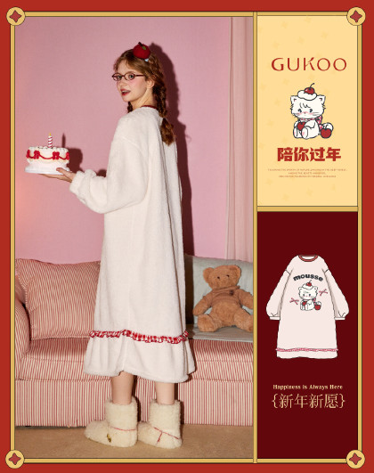 【轻红品系列】睡衣女秋加厚加绒高级感MIKKO系列睡裙可外穿