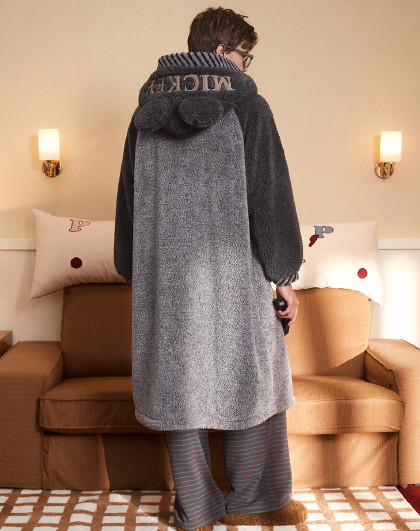 【米奇系列】睡袍男冬季阳离子加厚款保暖连帽可外穿睡袍高级感