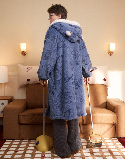 【路西法联名】冬季睡袍男士厚款北极绒连帽卡通家居睡袍可外穿