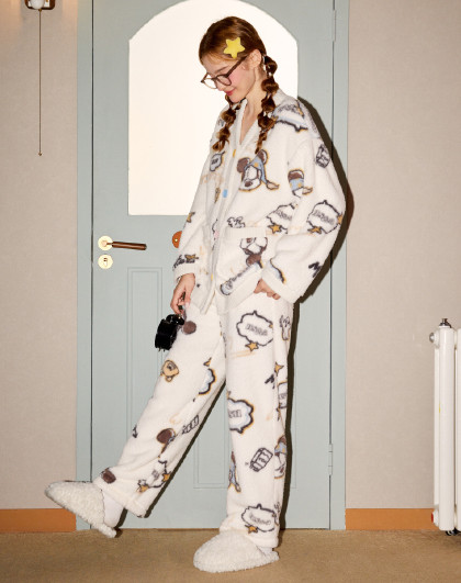【米奇家族系列】睡衣女秋冬加厚北极绒卡通满印家居服套装可外穿