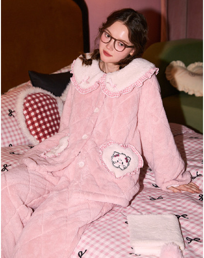 【MIKKO系列】睡衣女冬三层夹棉卡通女士家居服套装可外穿
