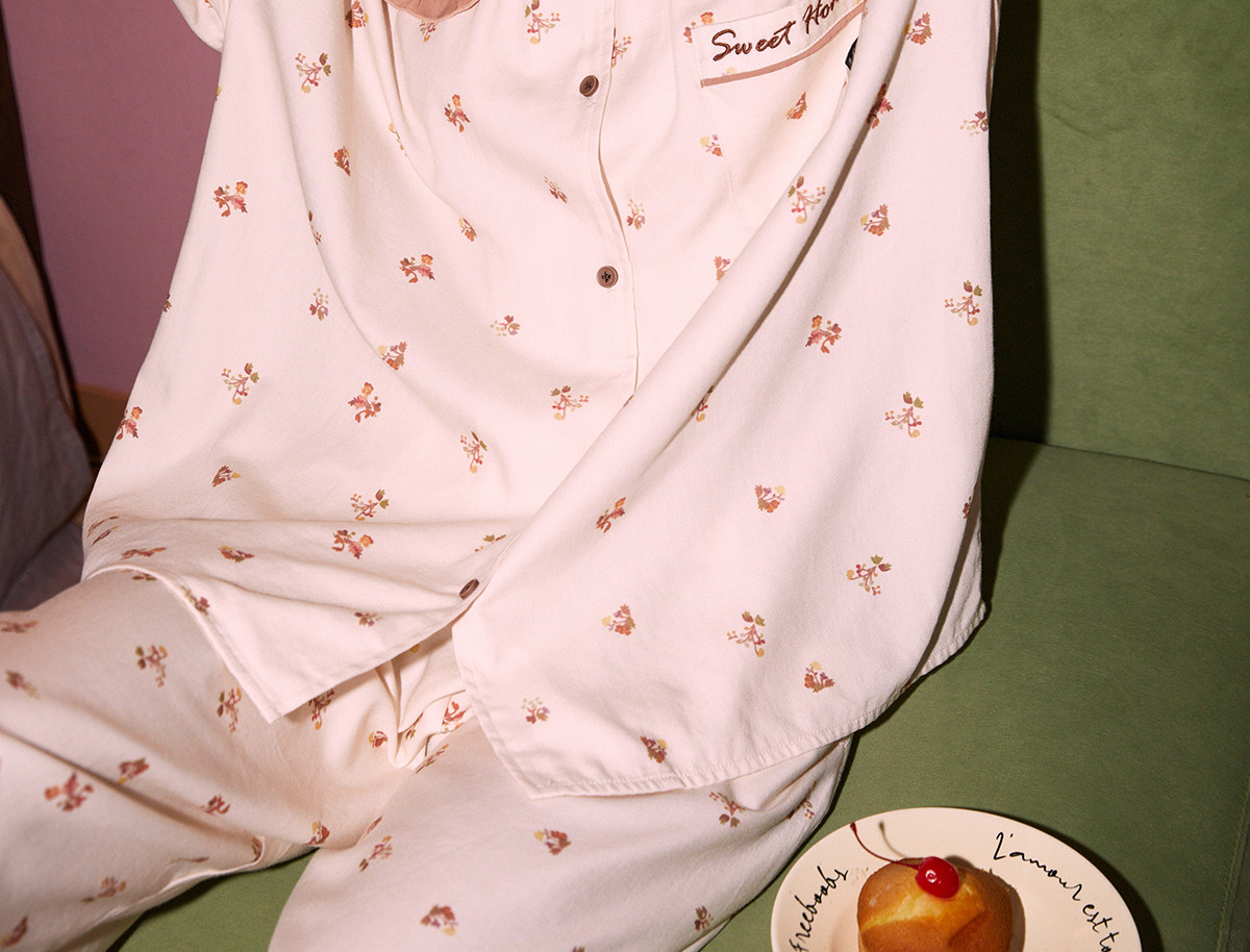 【商场同款】果壳睡衣女春秋款小碎花满印新款简约女家居服套装C