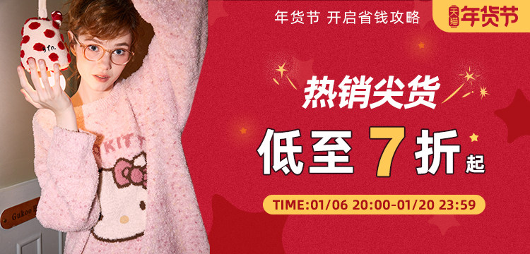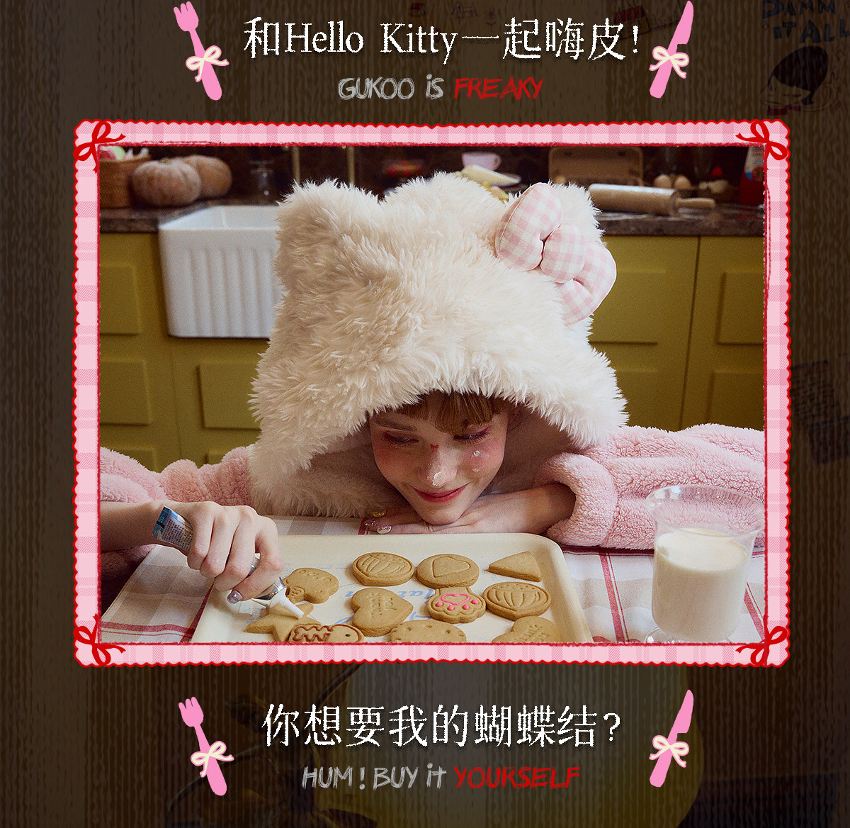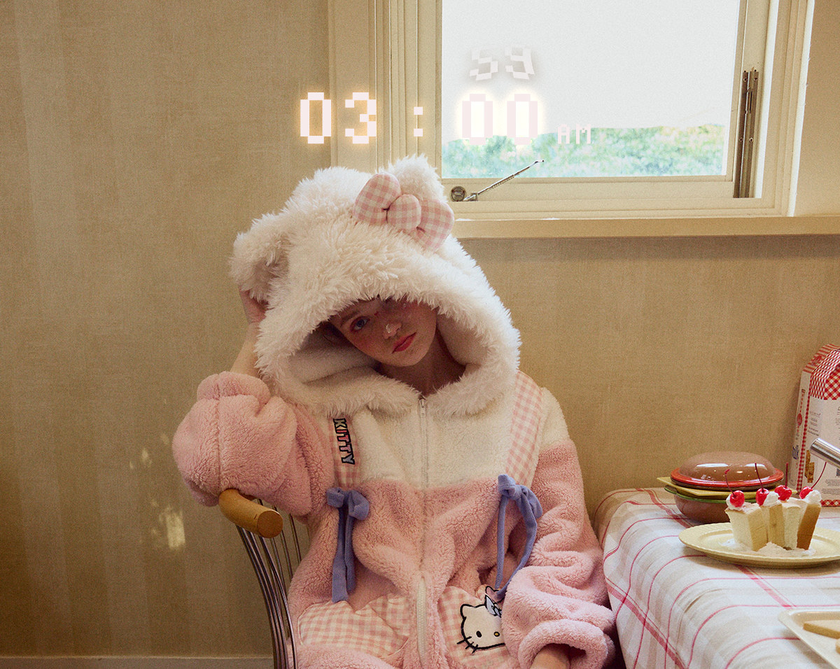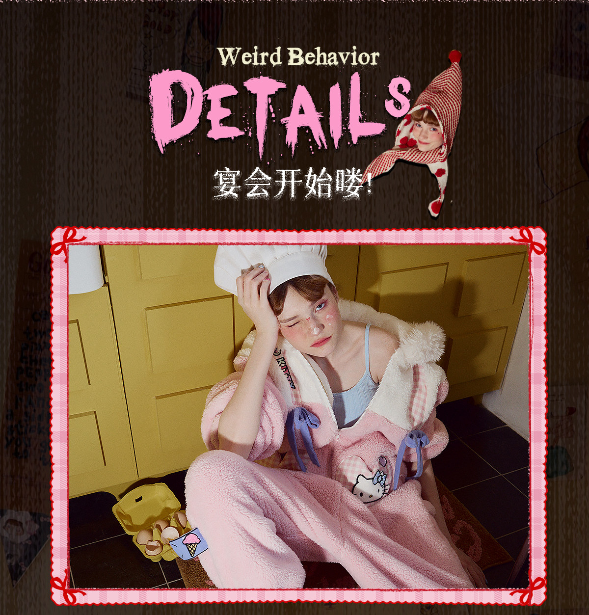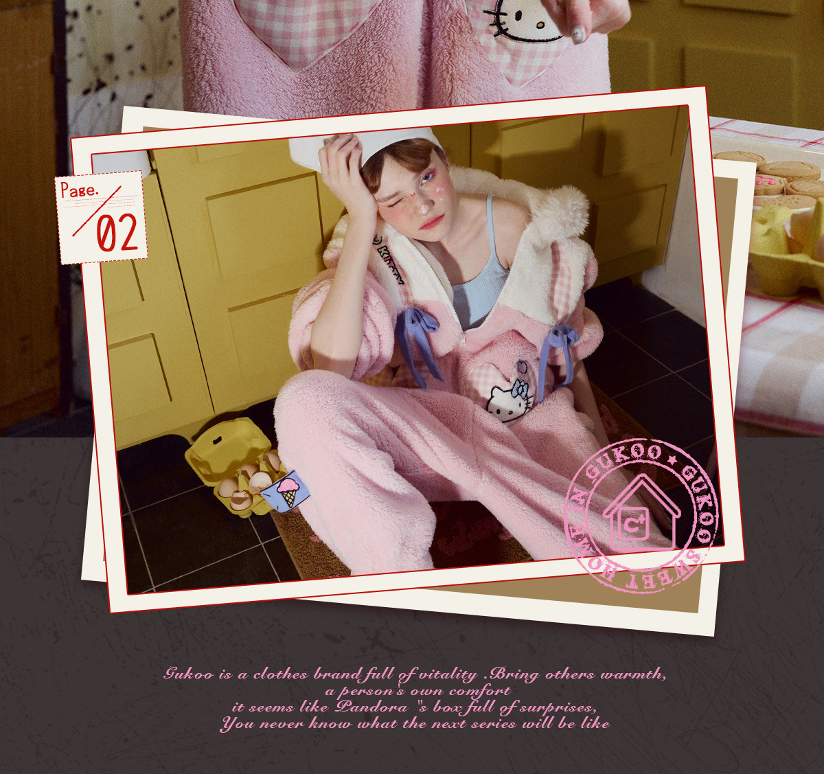 Gukoo/果壳睡衣女冬季HelloKitty联名新款毛绒保暖女士连体衣D