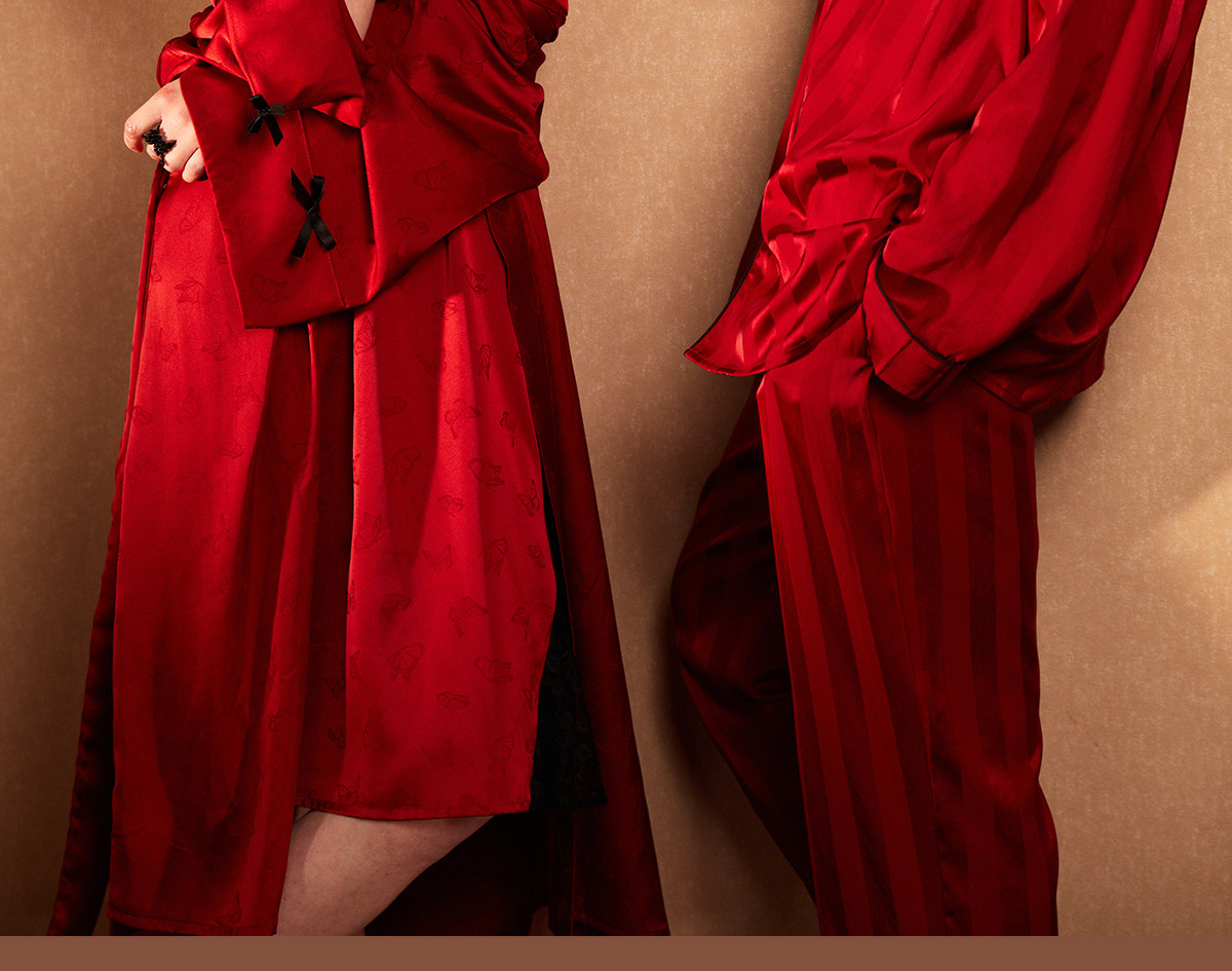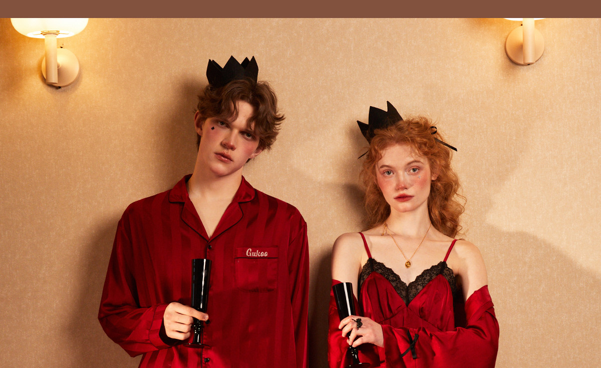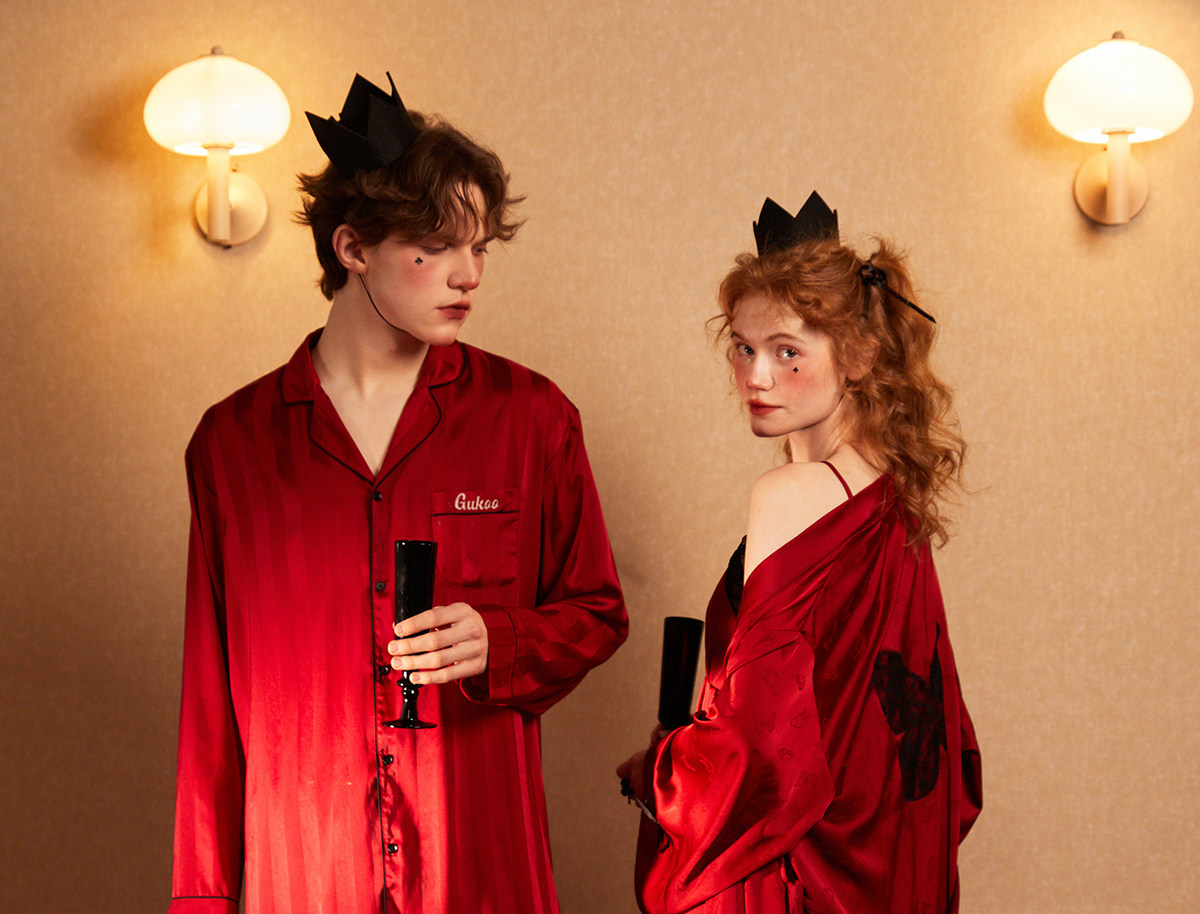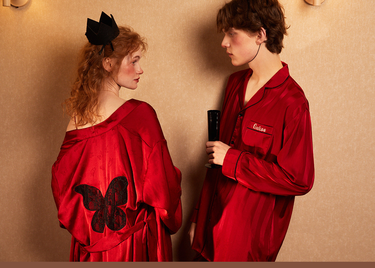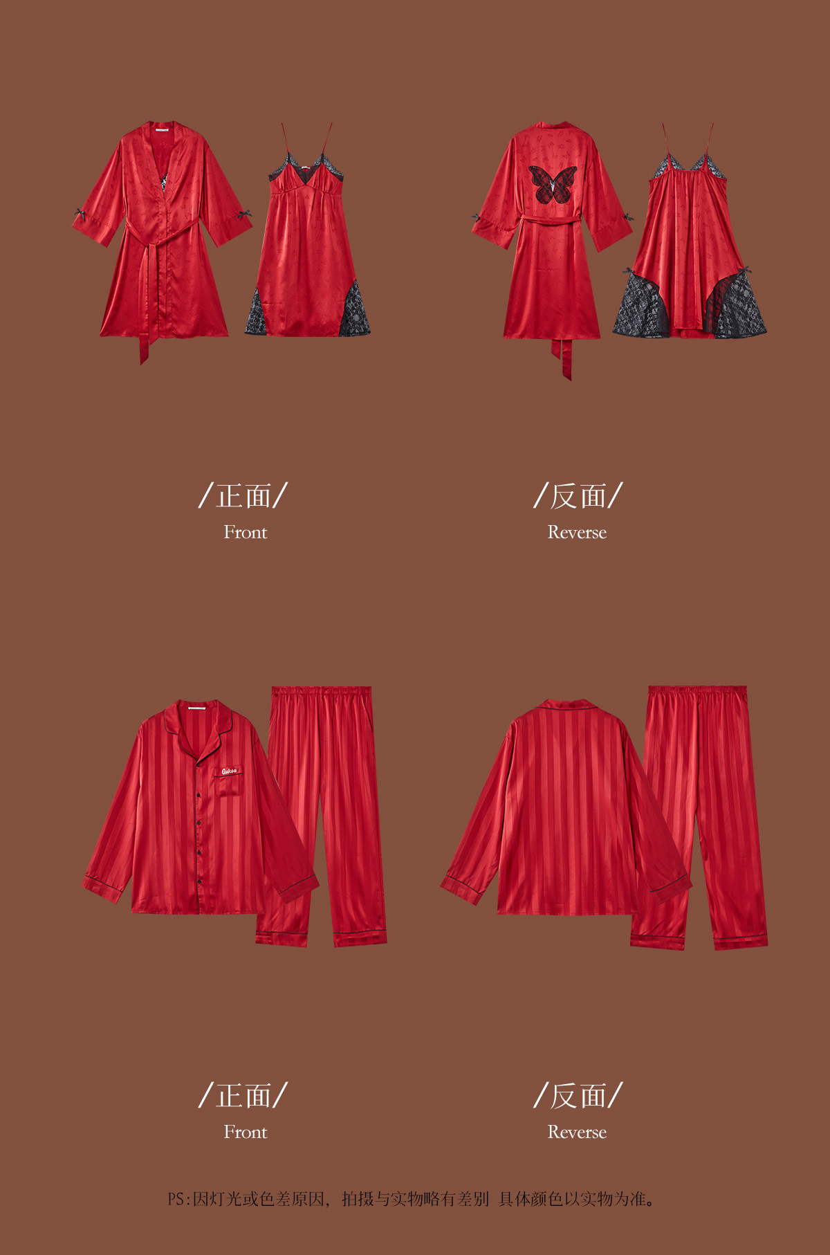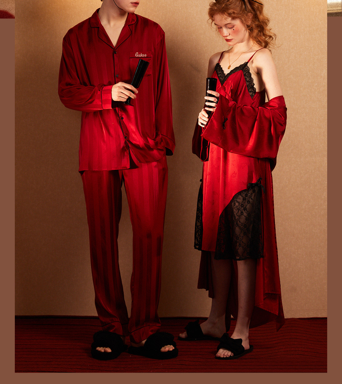 Gukoo/果壳睡衣情侣春秋款家居服结婚条纹婚庆女套装C
