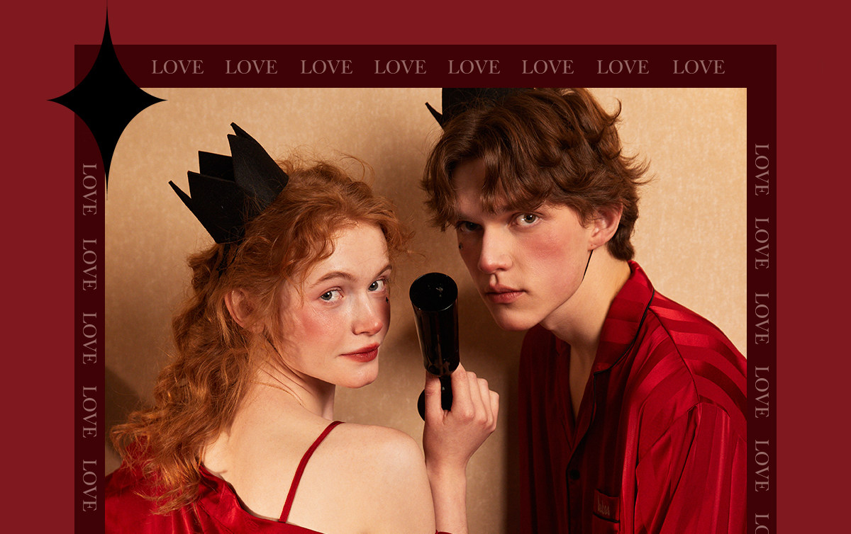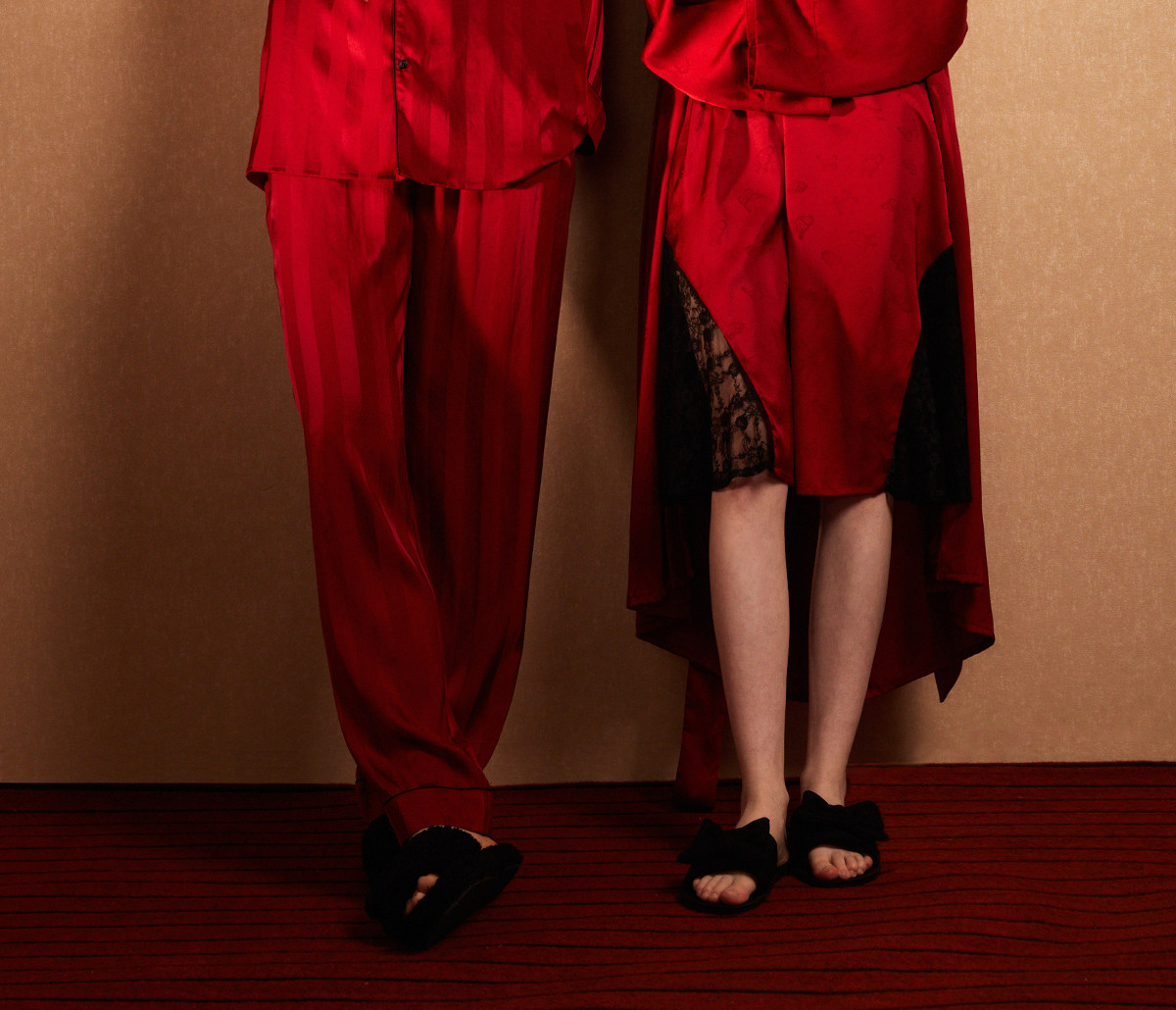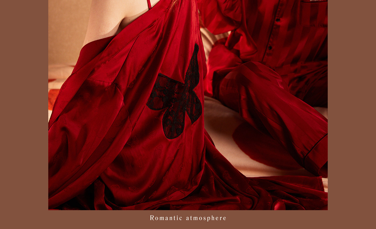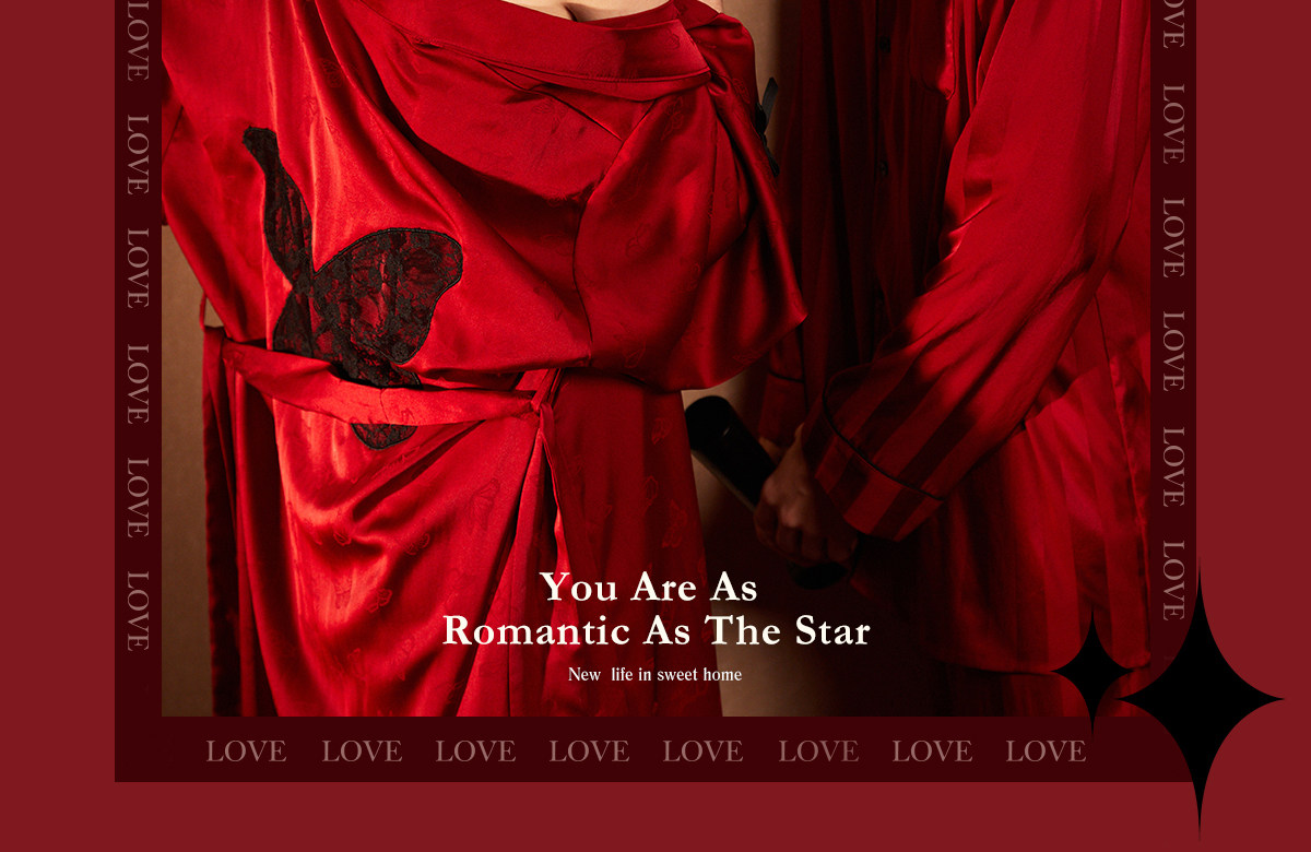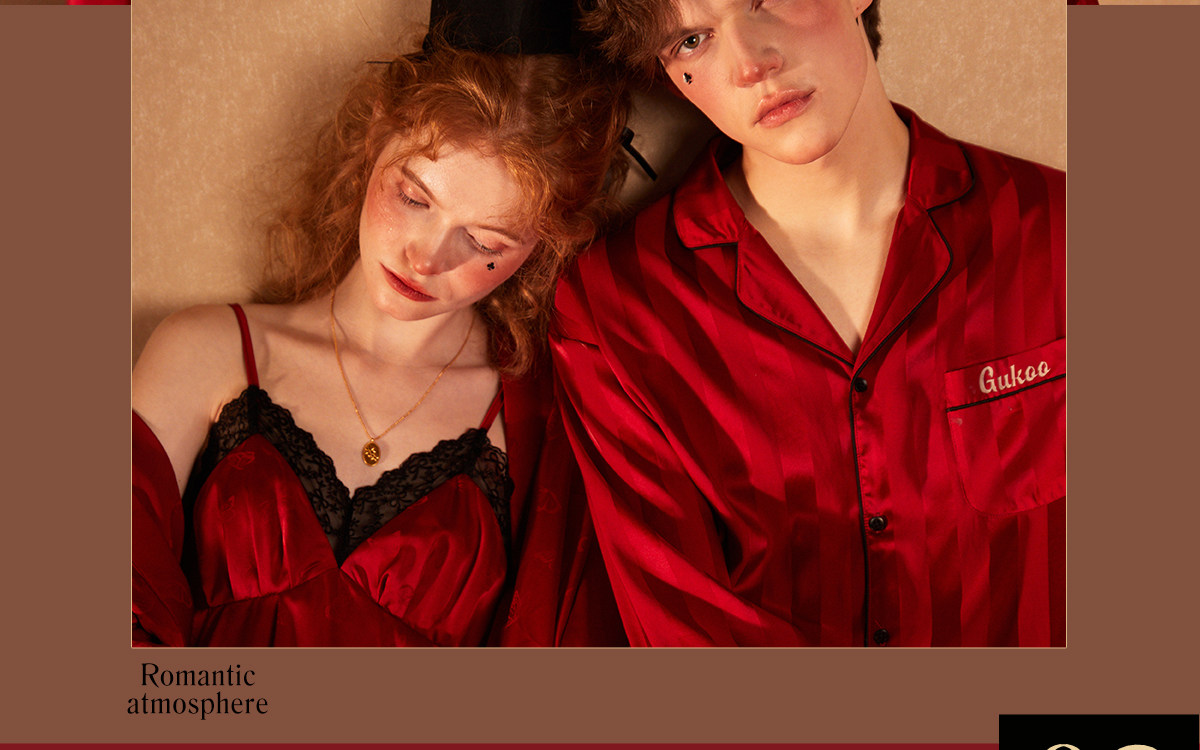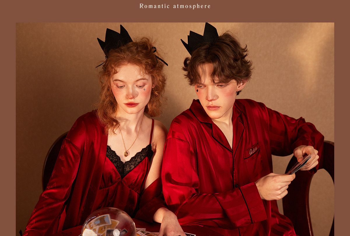 Gukoo/果壳睡衣情侣春秋款家居服结婚条纹婚庆女套装C