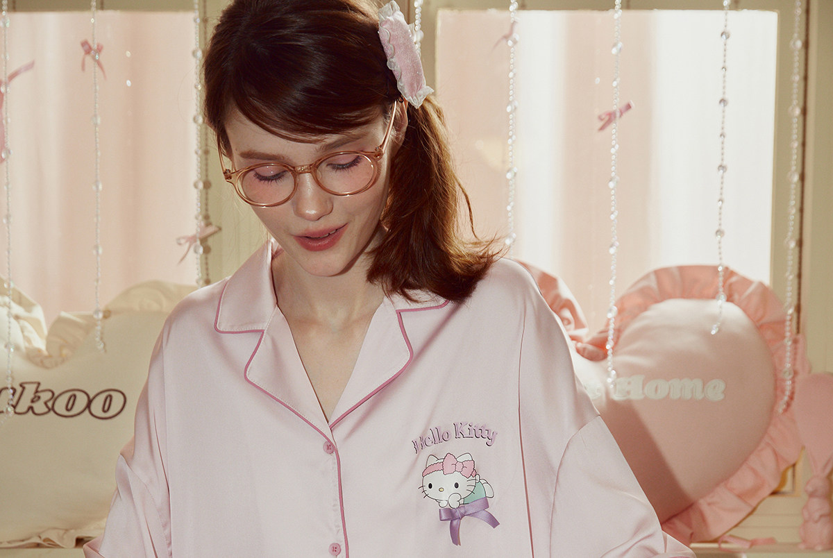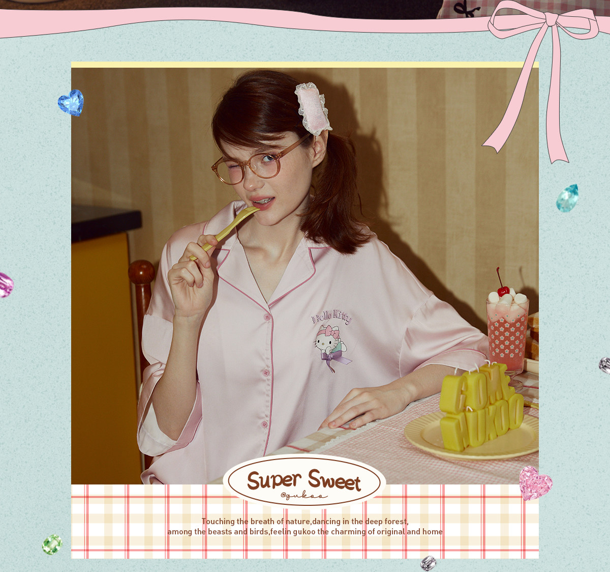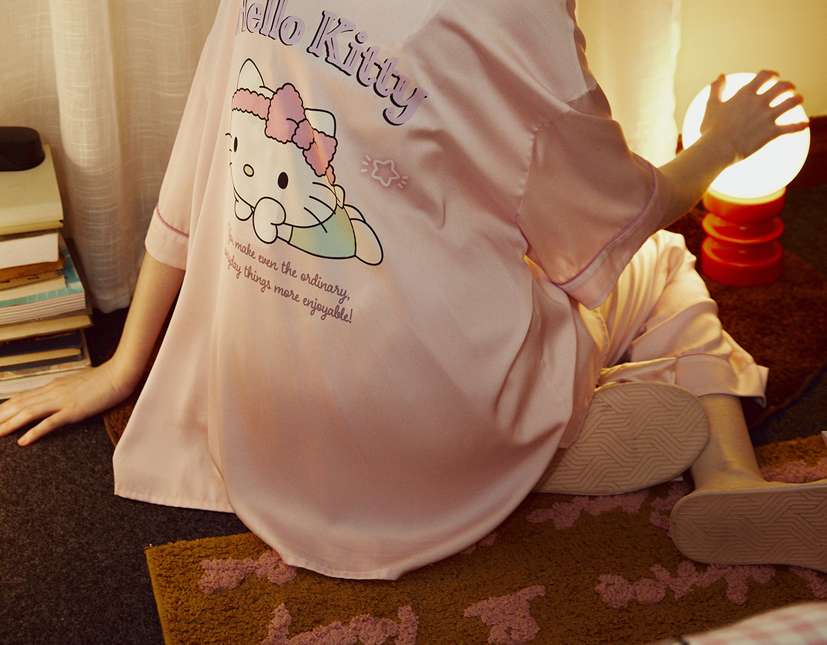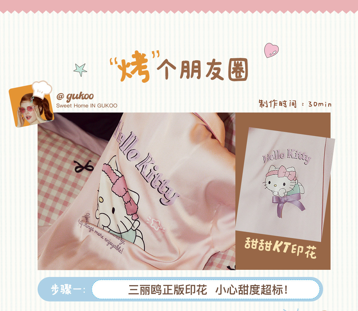 Gukoo/果壳睡衣春秋款HelloKitty联名新款甜美简约女家居服睡裙A