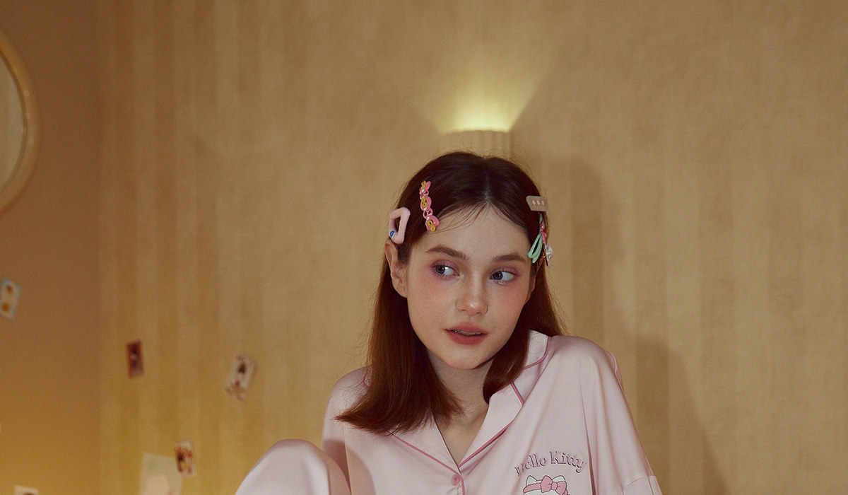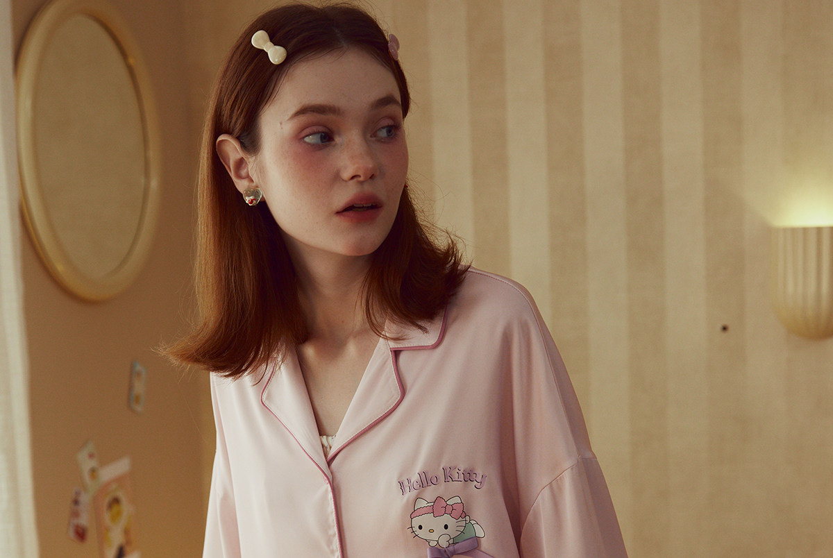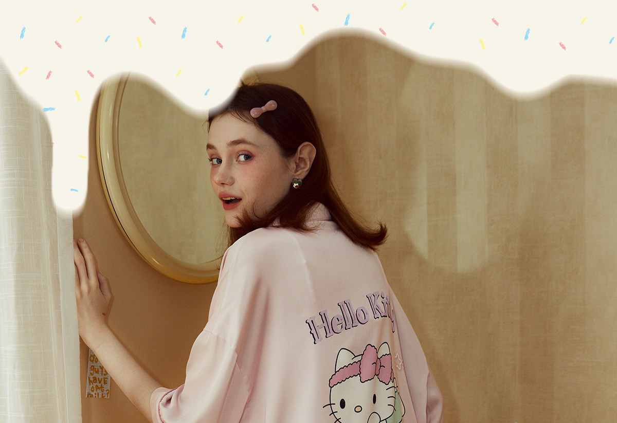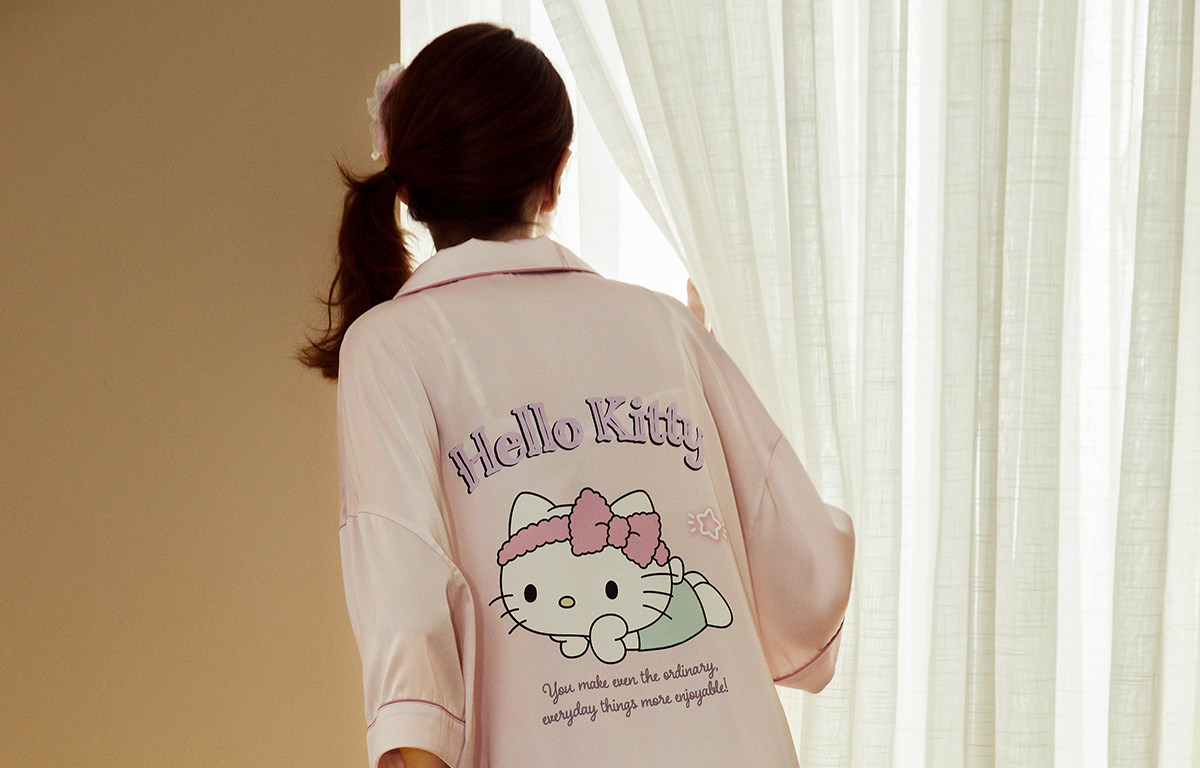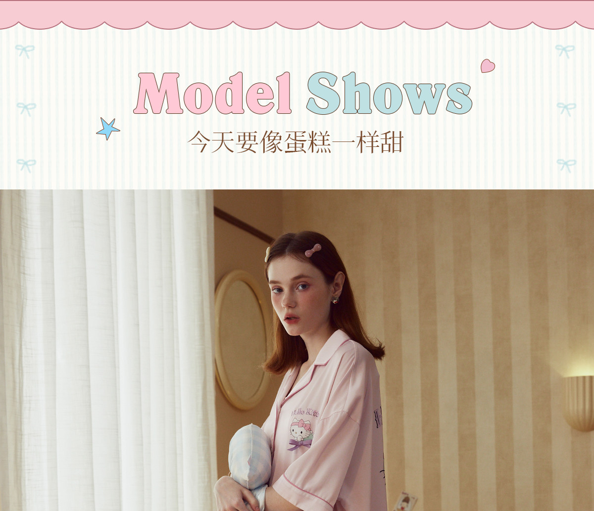 Gukoo/果壳睡衣春秋款HelloKitty联名新款甜美简约女家居服睡裙A