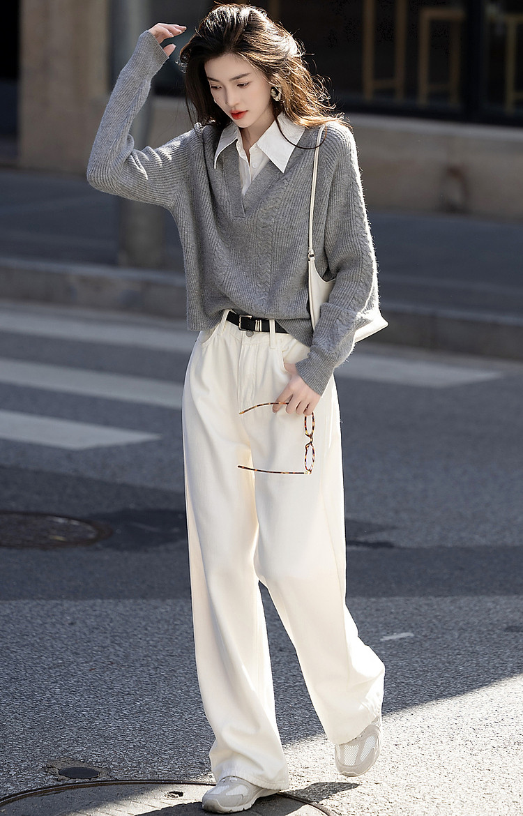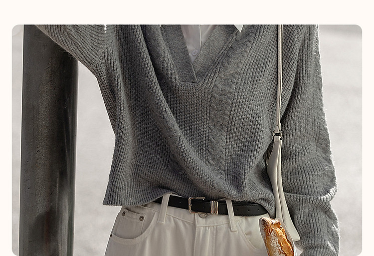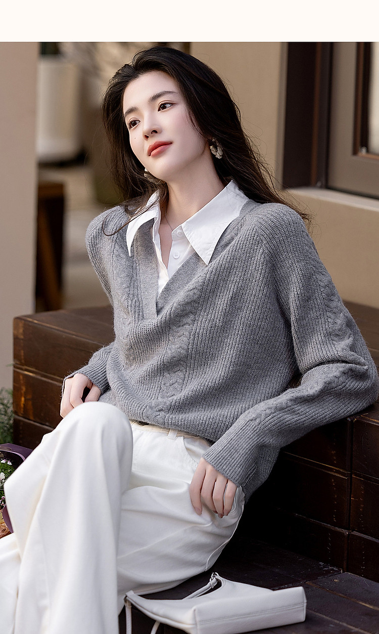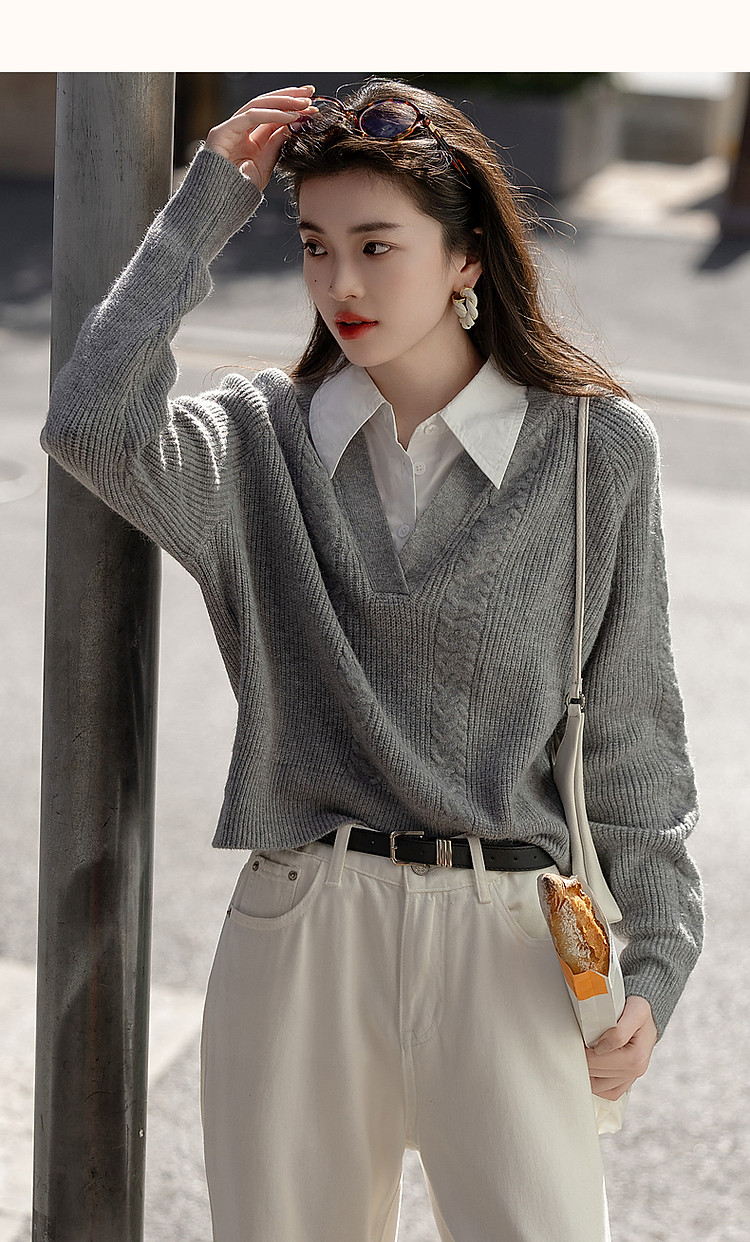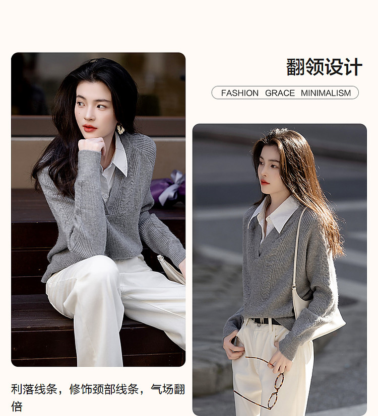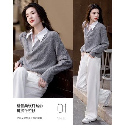 【云朵线衫】春秋简约风通勤拼接翻领舒柔纤绒纱遮肉针织衫女上衣