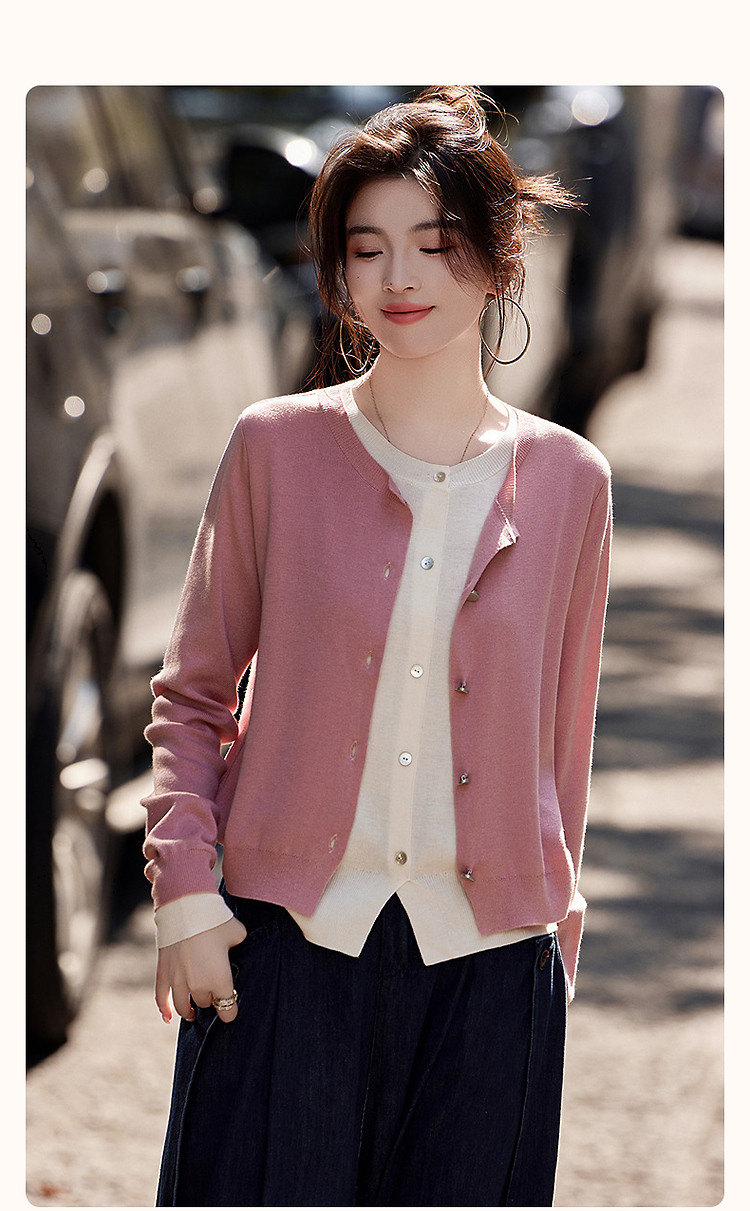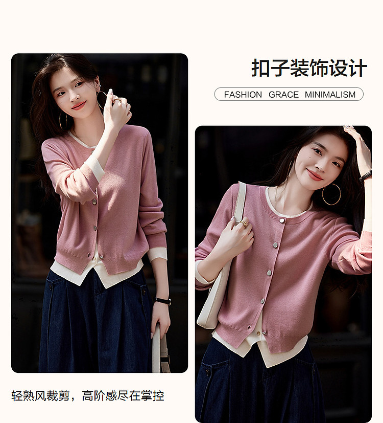 【双旦胶囊衣橱】秋冬假两件撞色线衫装饰扣含绵羊毛针织衫女上衣