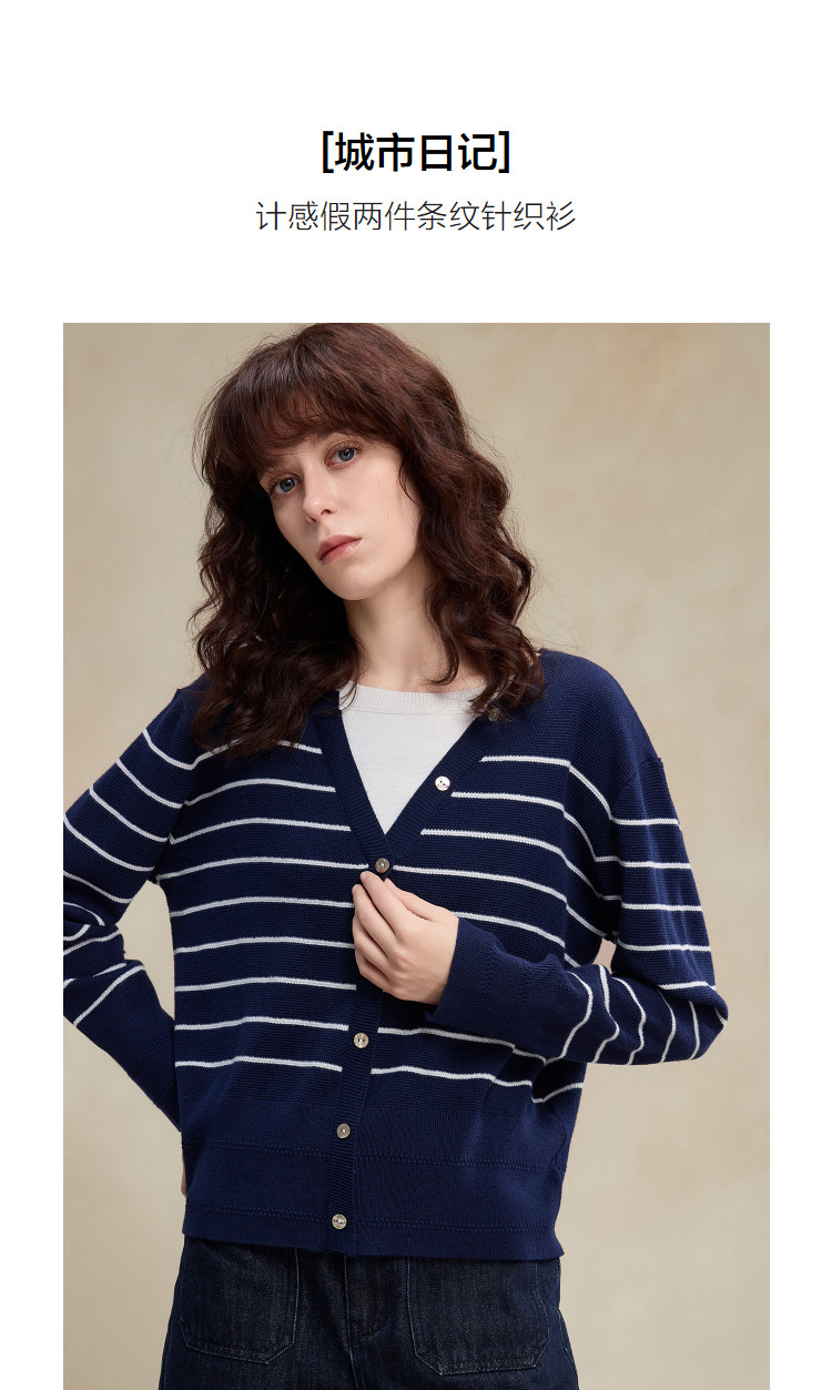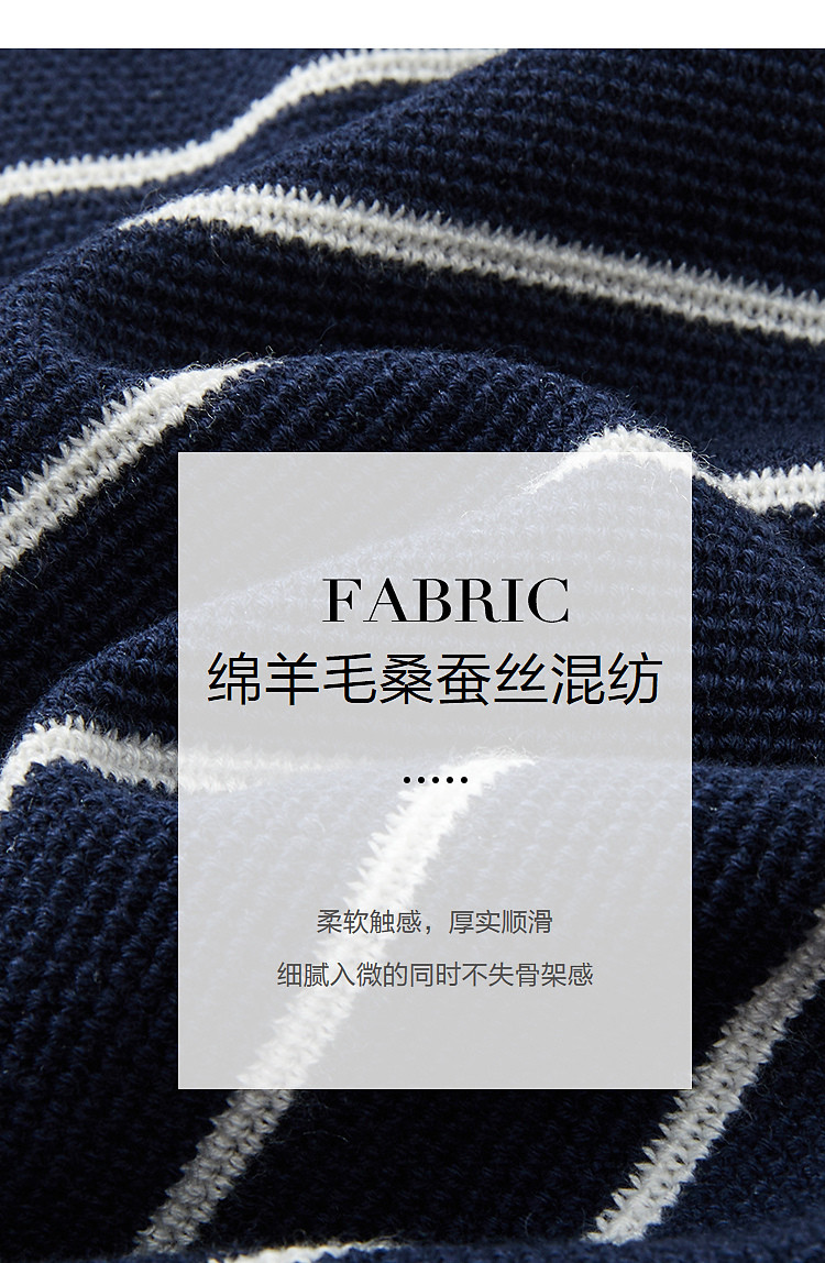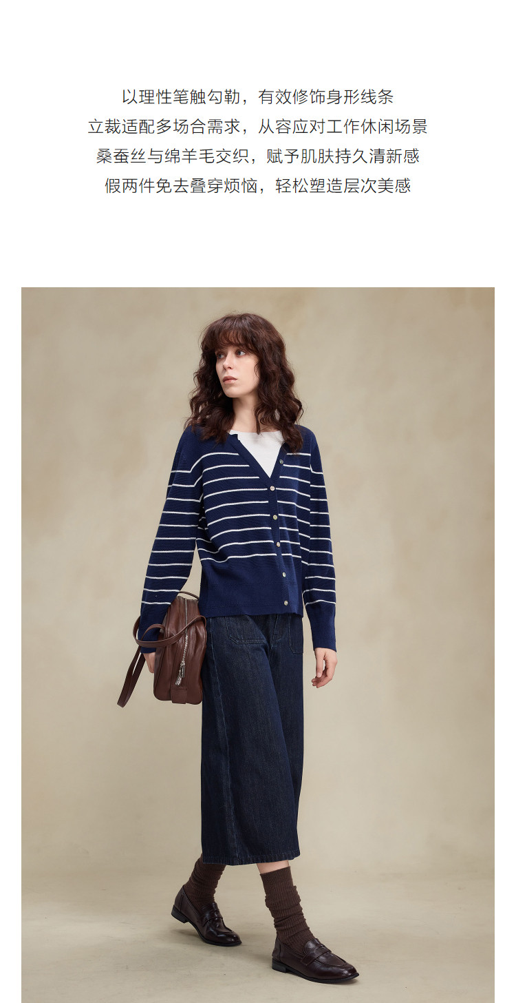 【桑蚕丝绵羊毛混纺】2026春设计感假两件条纹线衫撞色针织衫女上衣