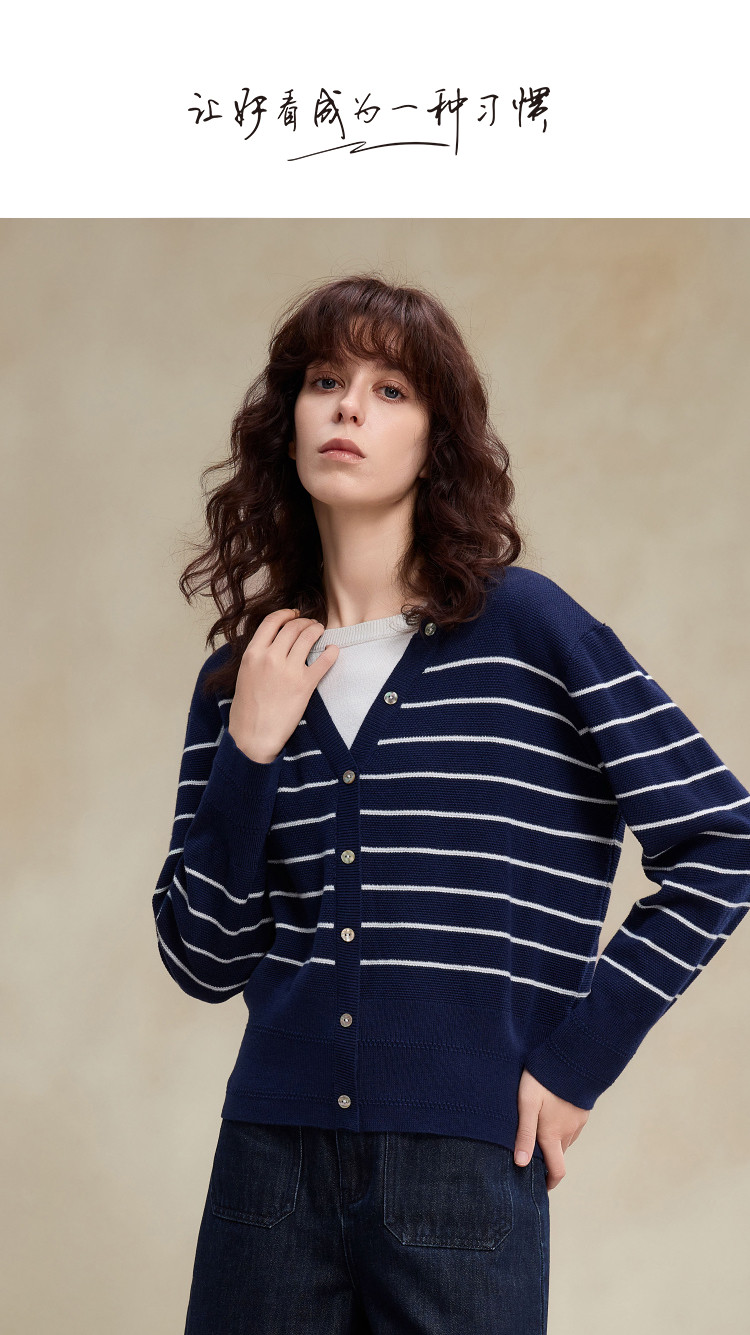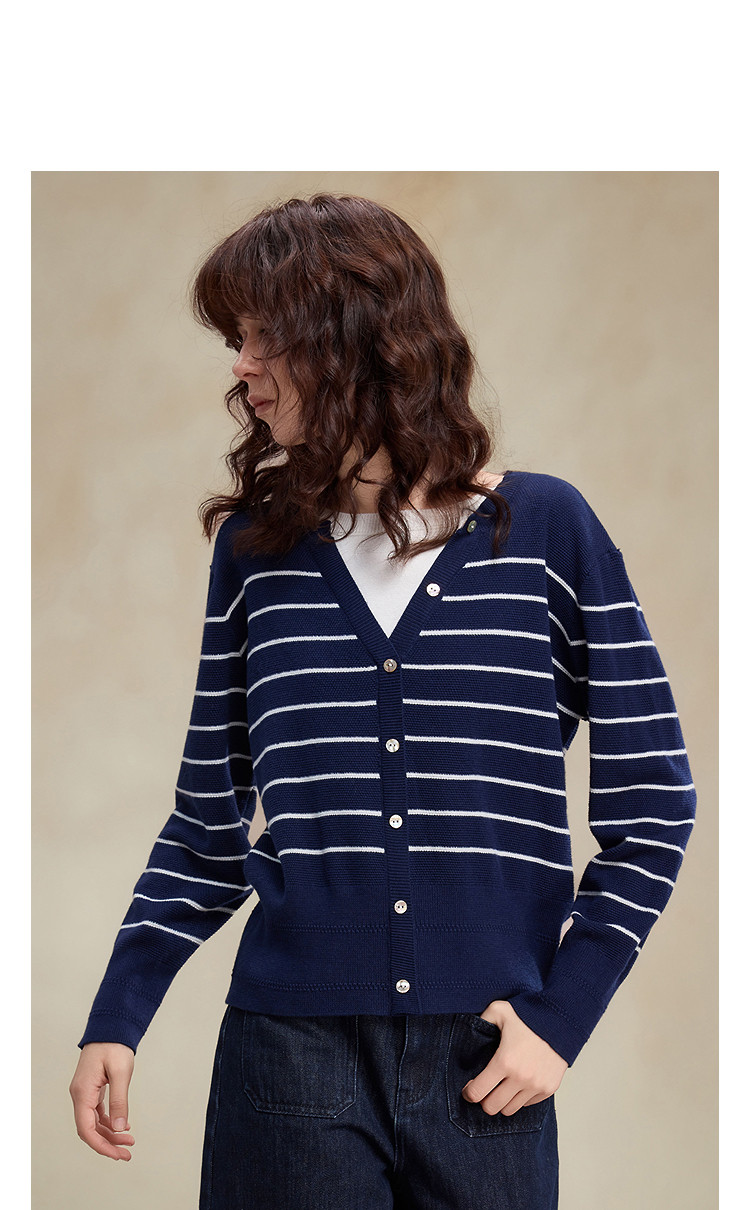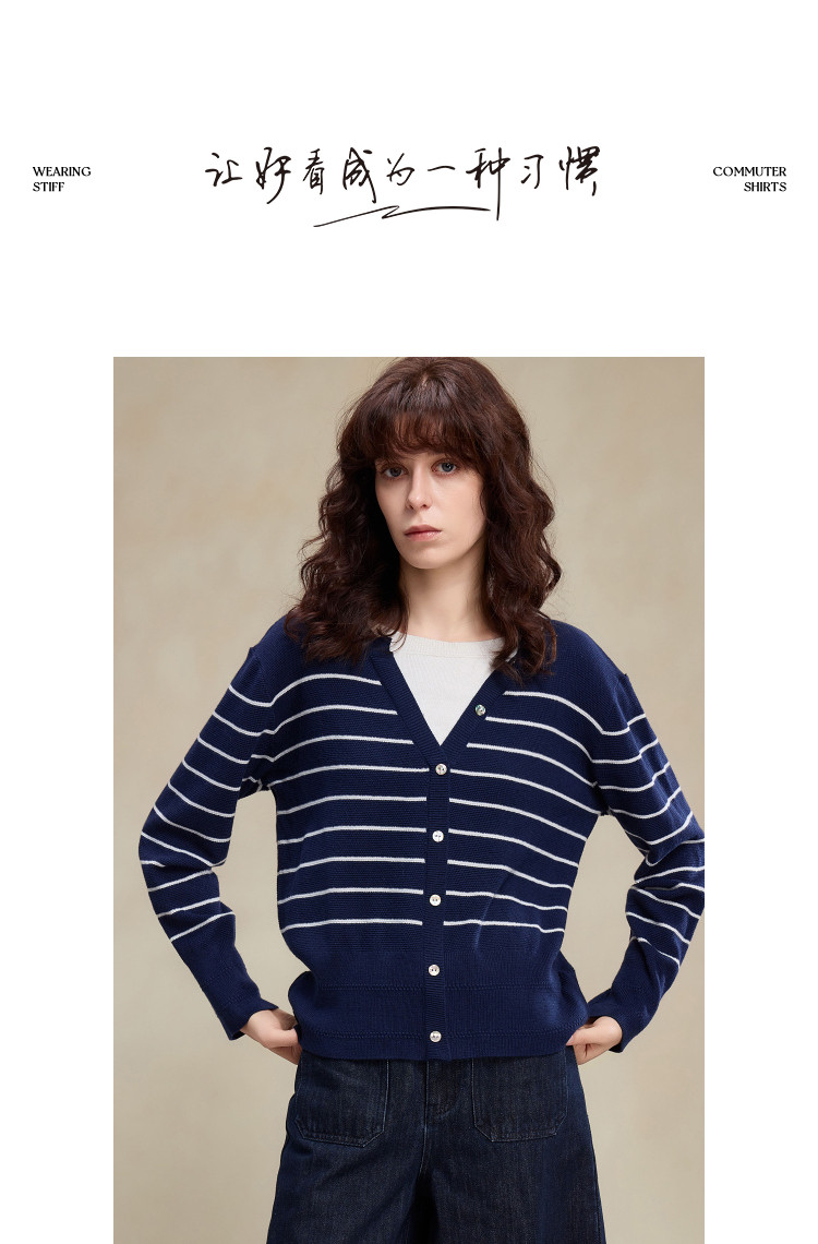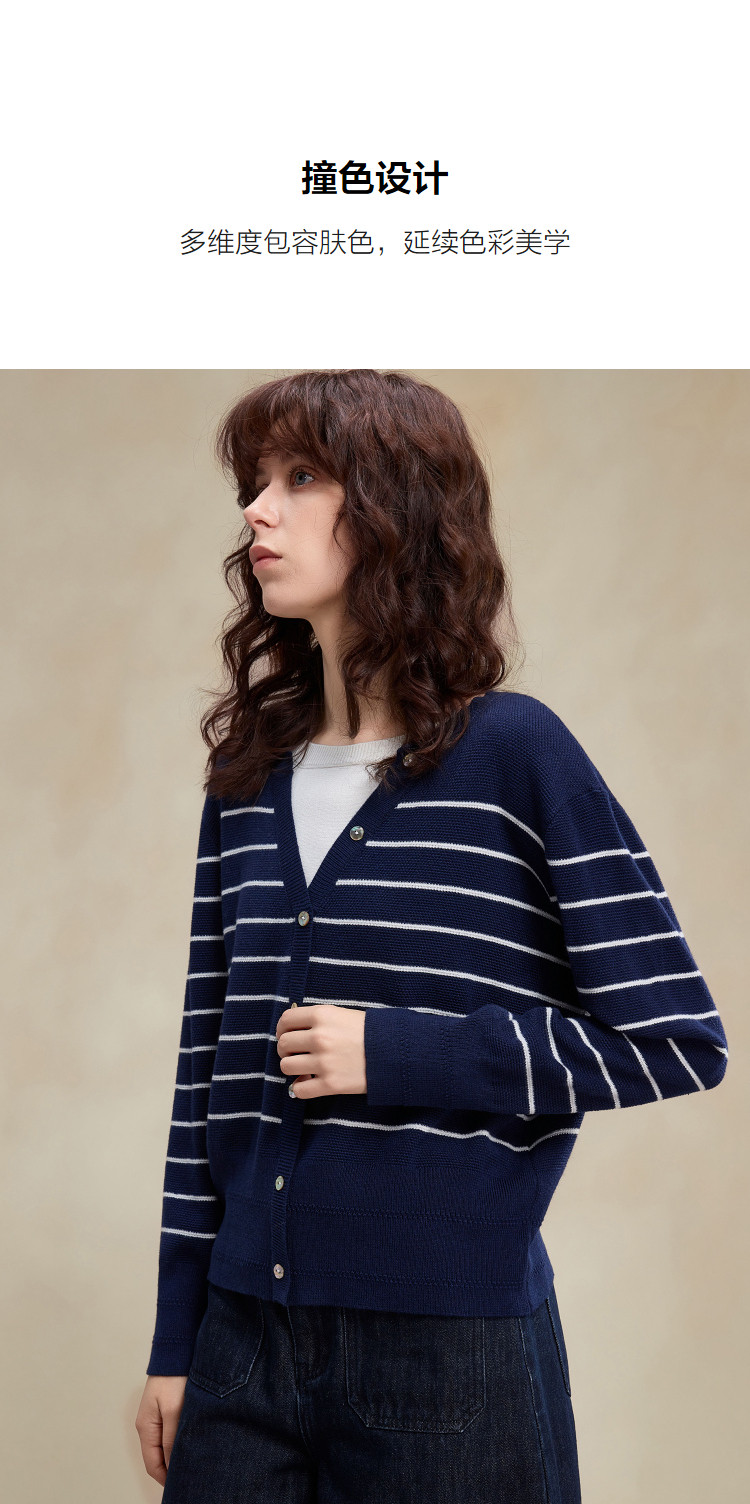 【桑蚕丝绵羊毛混纺】2026春设计感假两件条纹线衫撞色针织衫女上衣