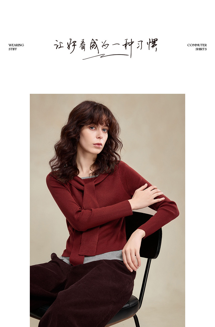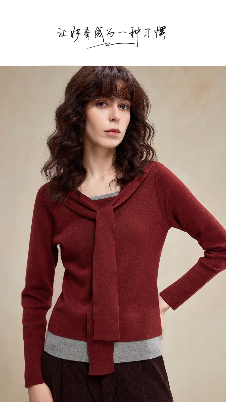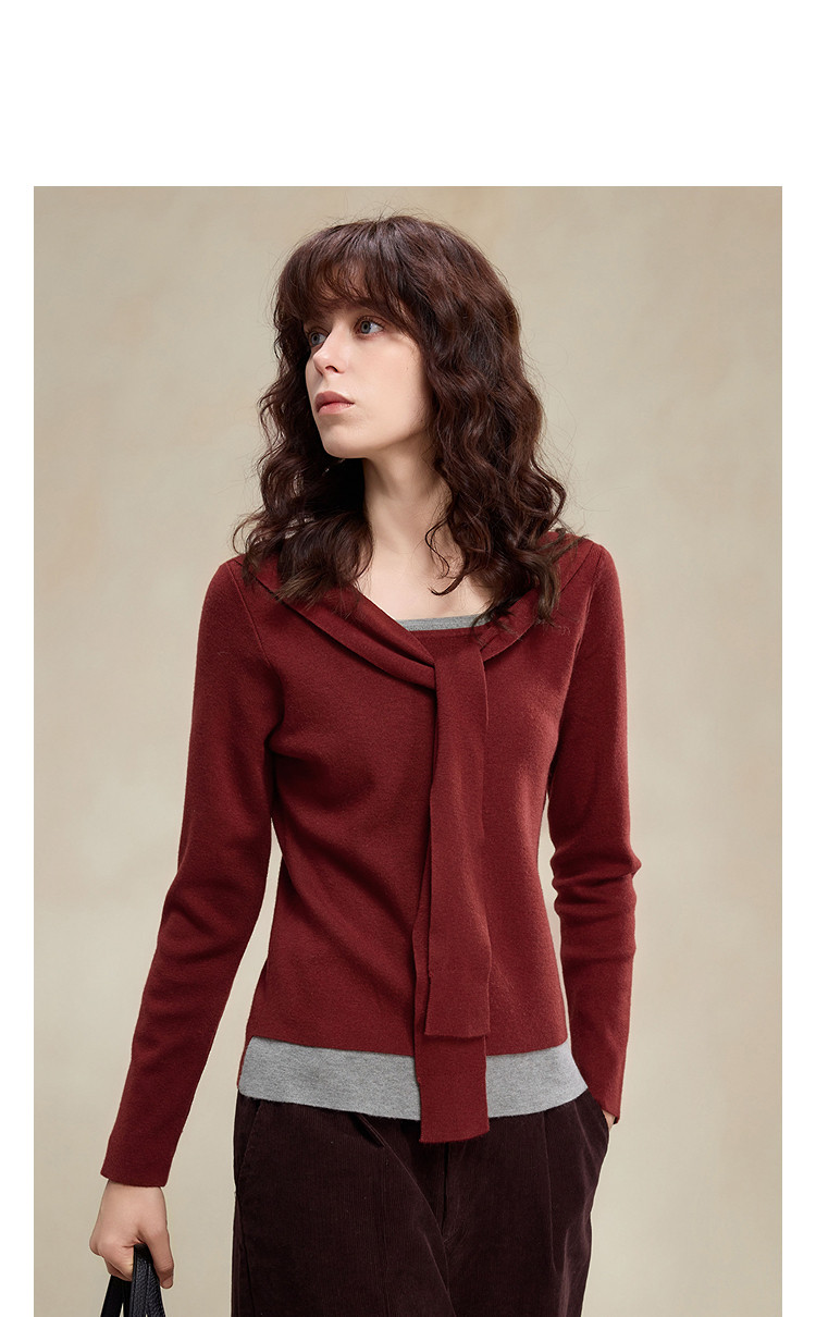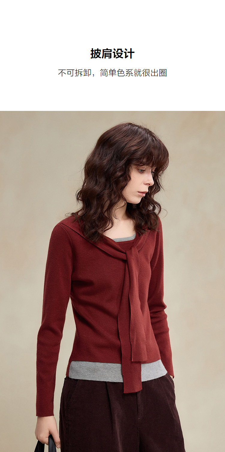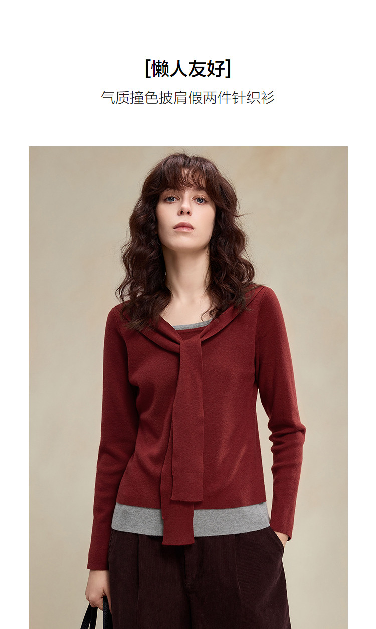 【懒人友好】2026春绵羊毛桑蚕丝混纺线衫假两件撞色披肩女式针织衫