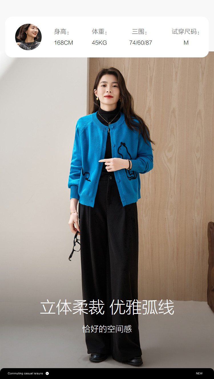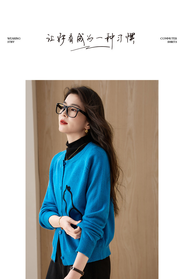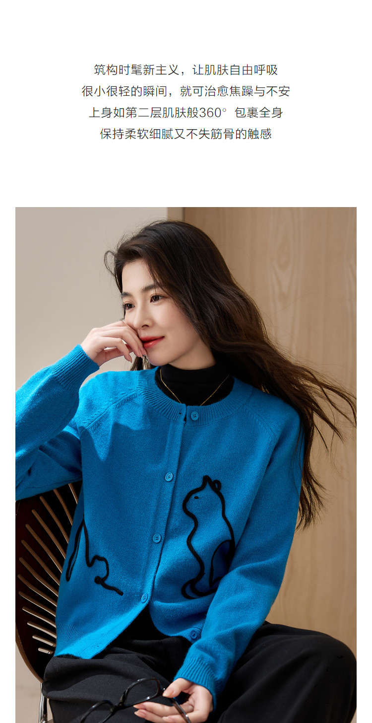 【立体简笔猫咪】冬季舒肤纤绒纱开衫圆领宽松藏肉针织线衫女上衣
