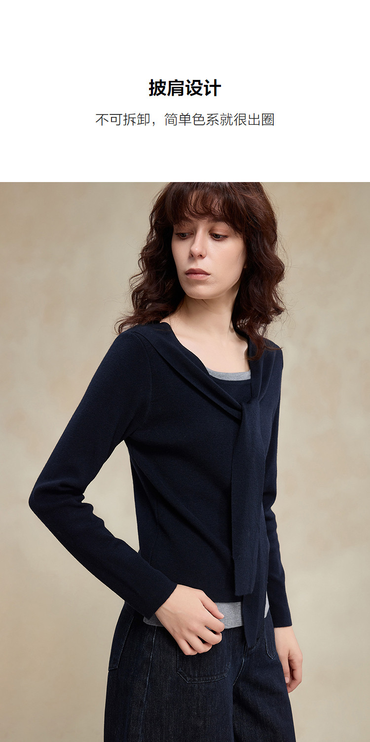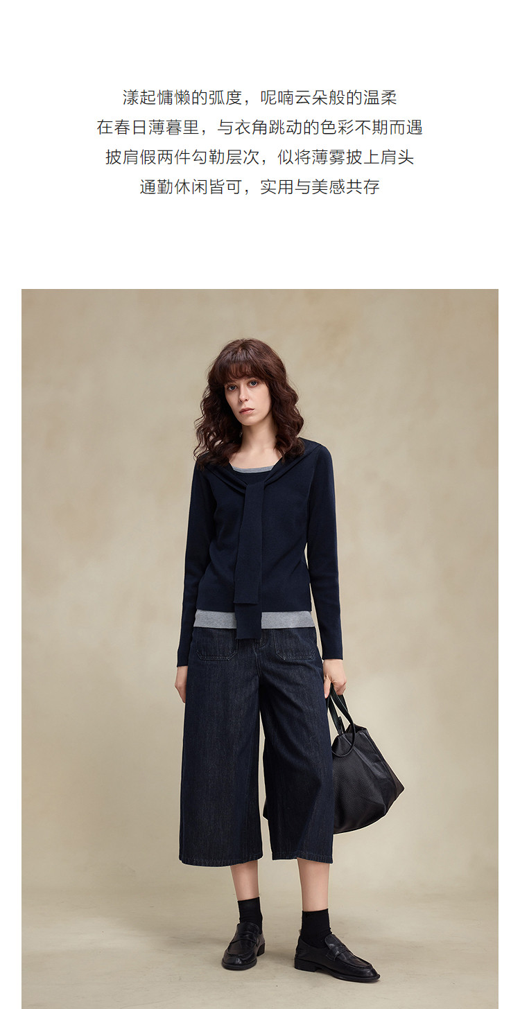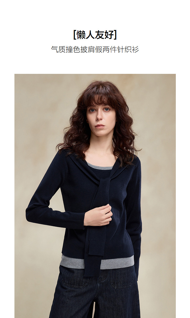 【懒人友好】2026春绵羊毛桑蚕丝混纺线衫假两件撞色披肩女式针织衫