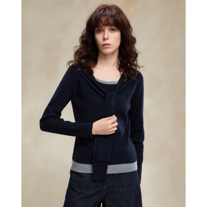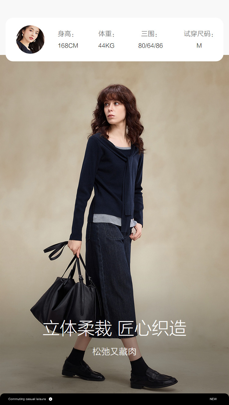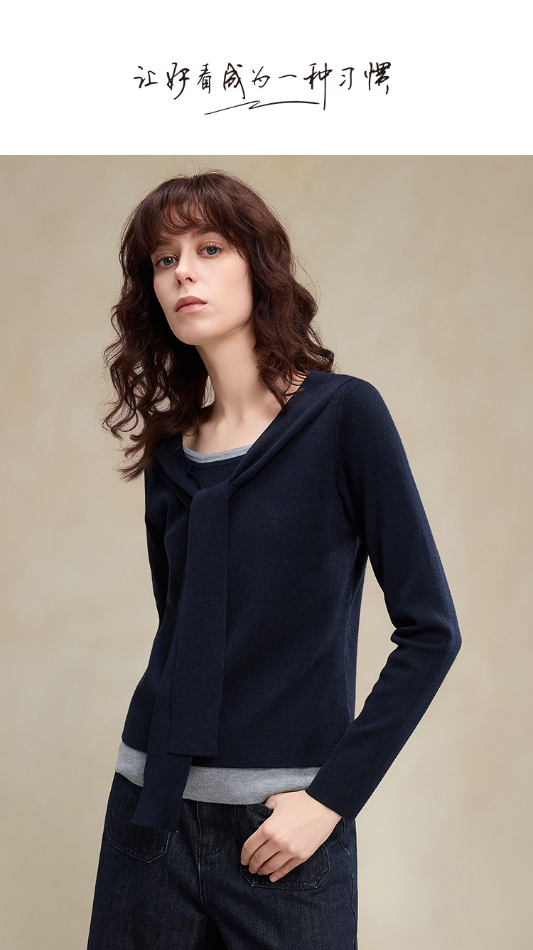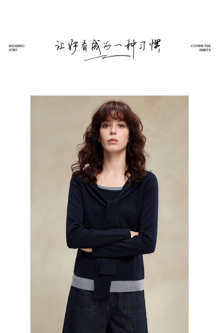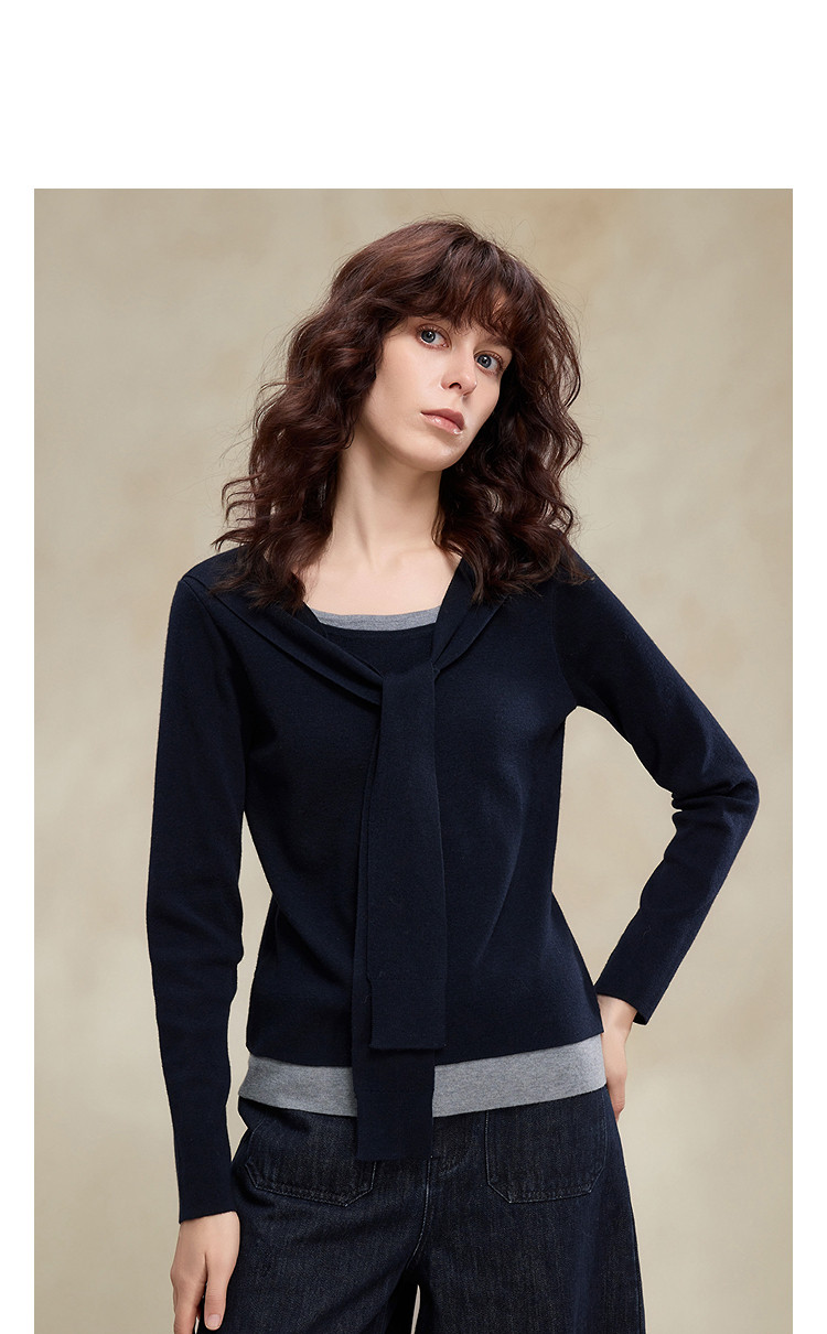 【懒人友好】2026春绵羊毛桑蚕丝混纺线衫假两件撞色披肩女式针织衫