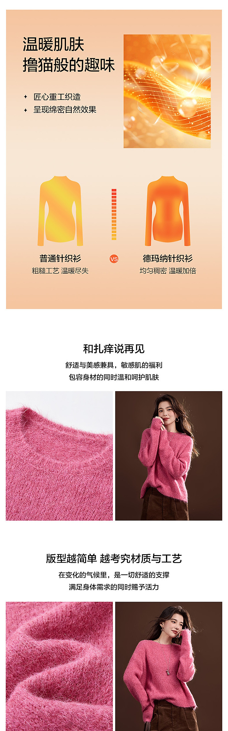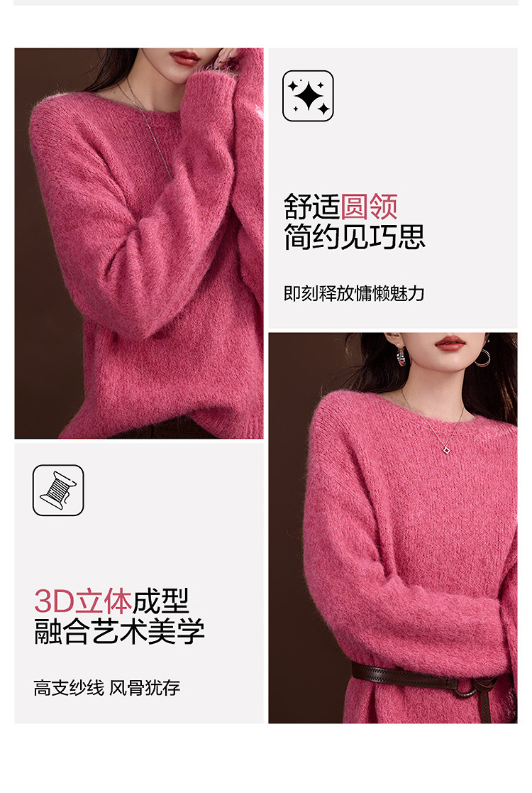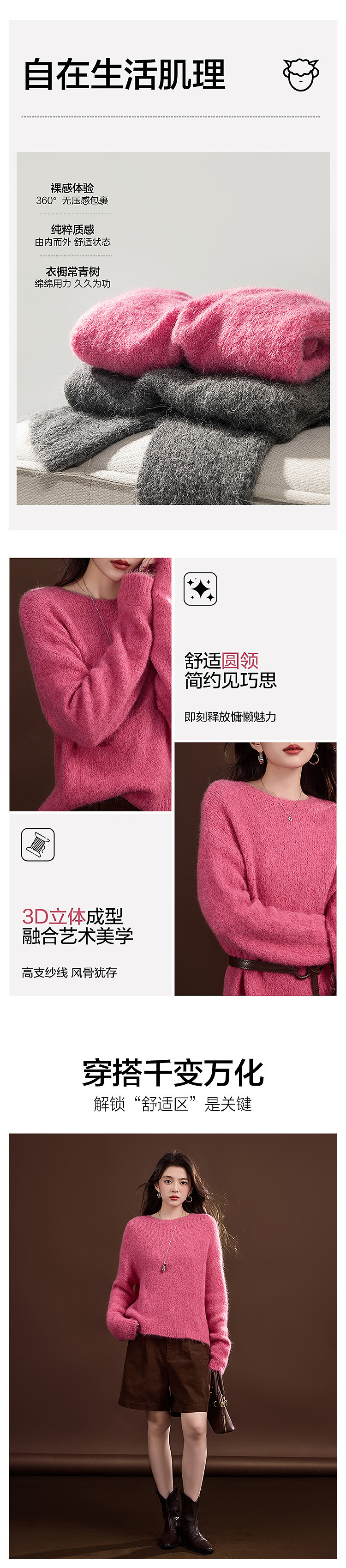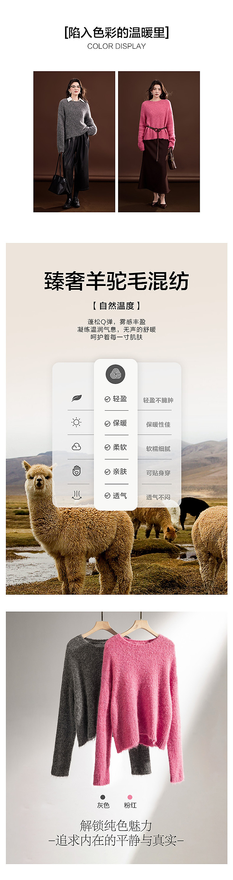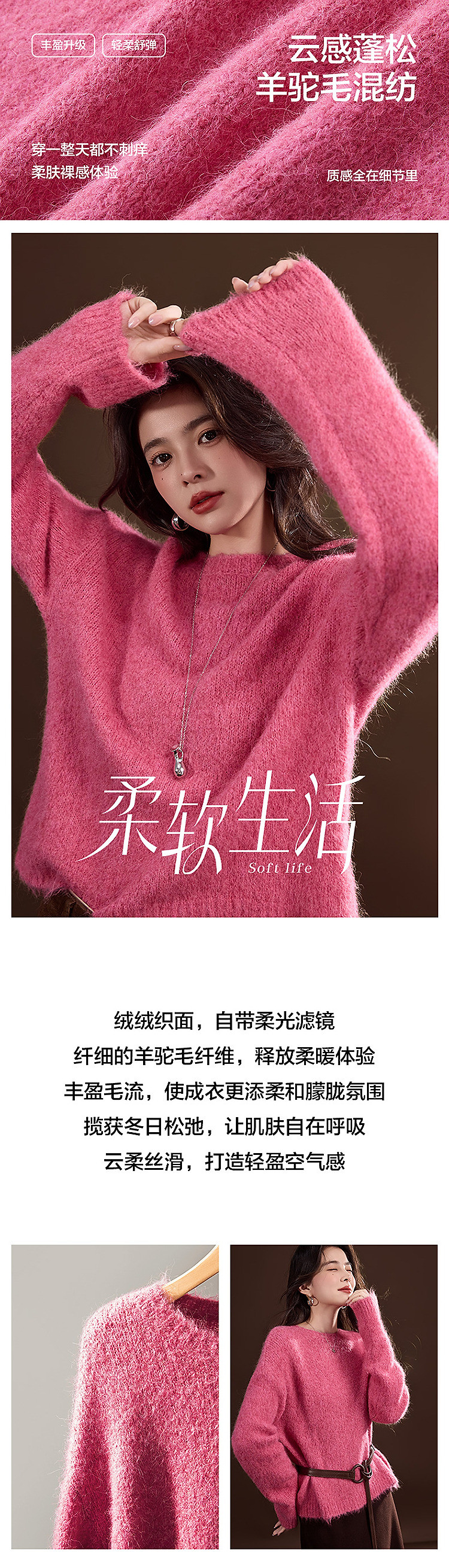 【臻奢羊驼毛混纺】冬季慵懒风长毛圆领线衫柔软气质针织衫女上衣