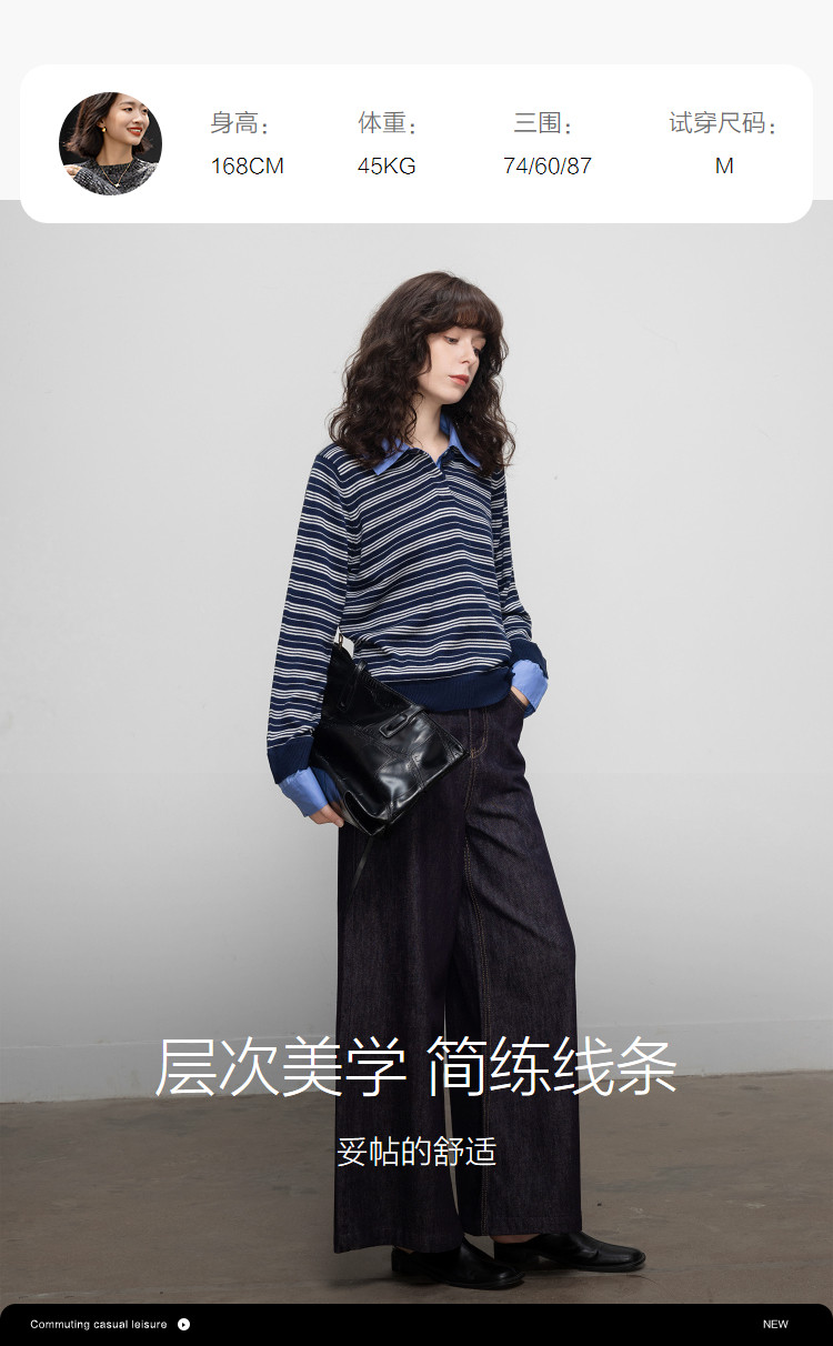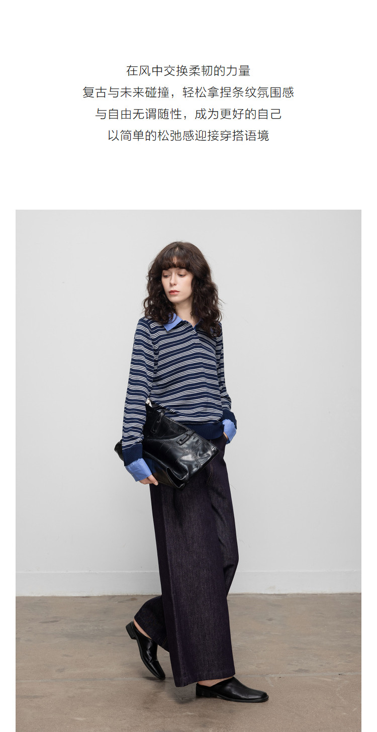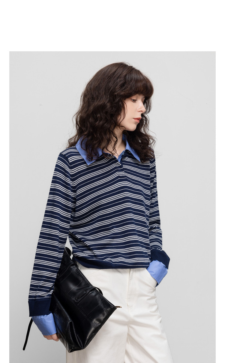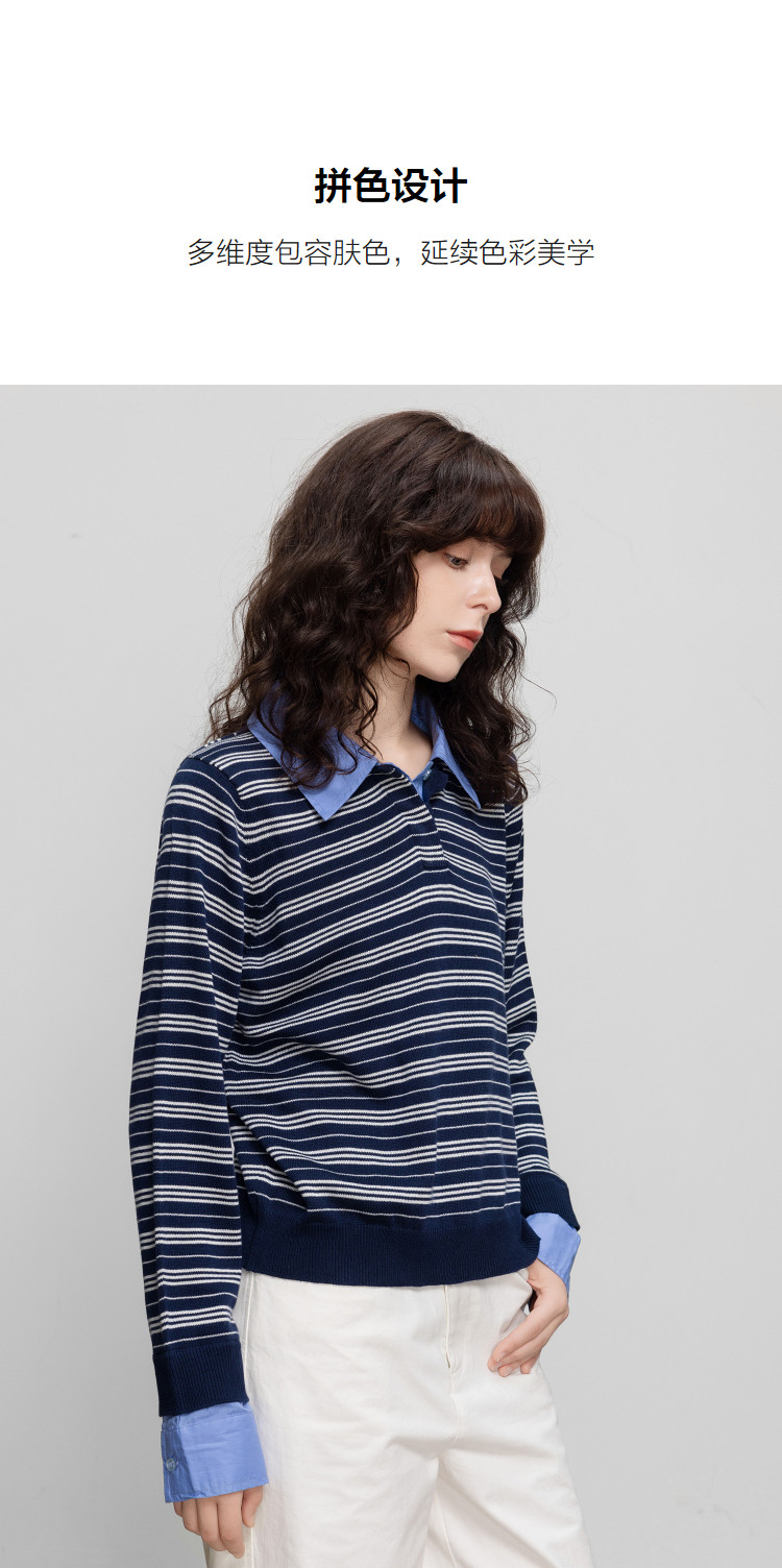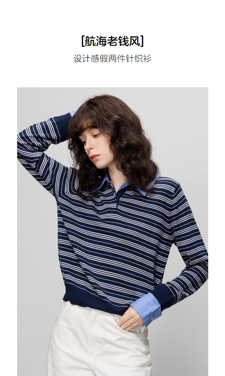 【含绵羊毛】2026春航海老钱风假两件线衫翻领条纹拼色针织衫女上衣