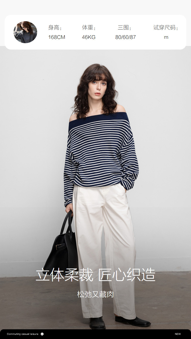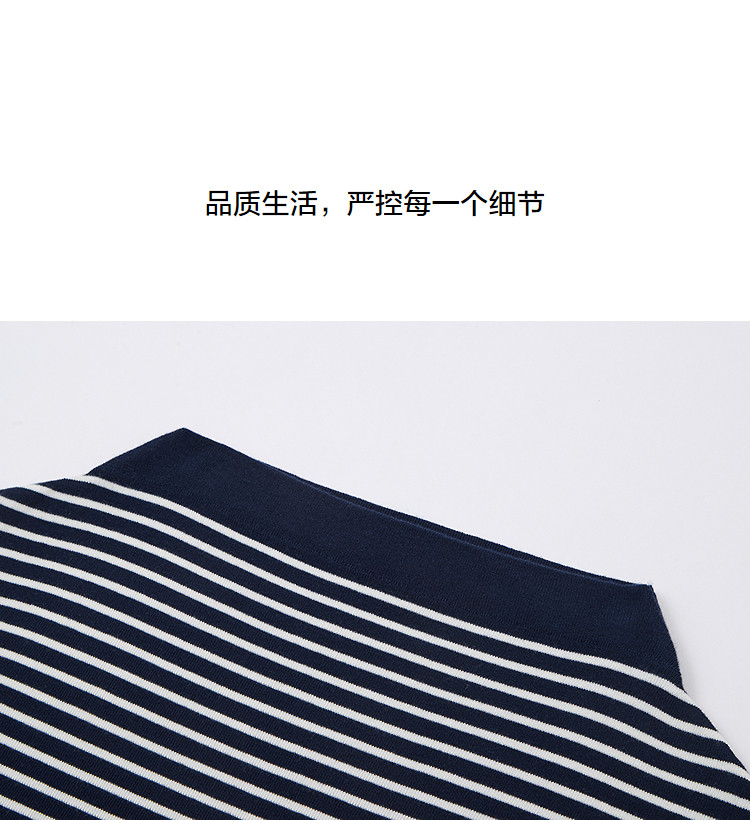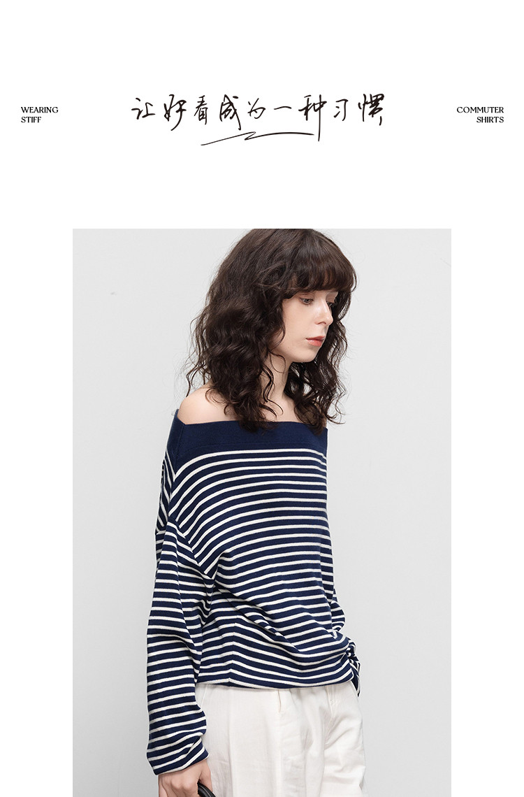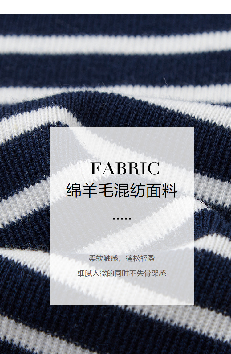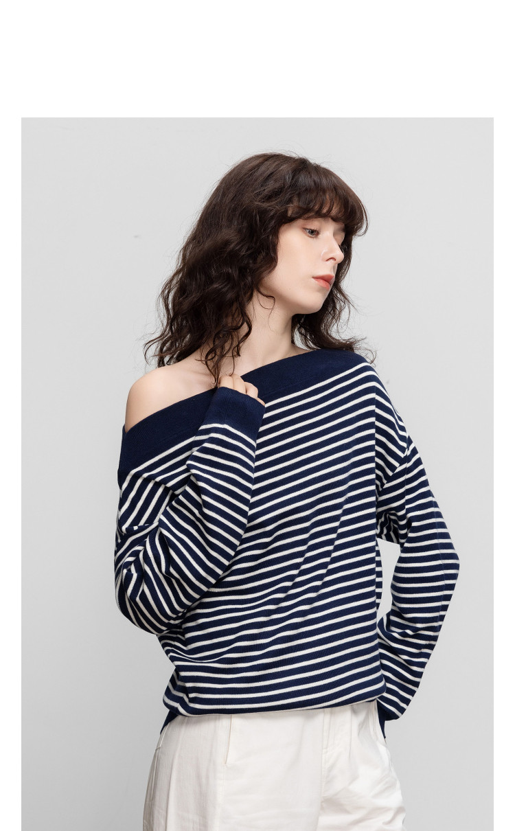 【含绵羊毛】2026春航海老钱风一字领拼色线衫条纹软弹针织衫女上衣