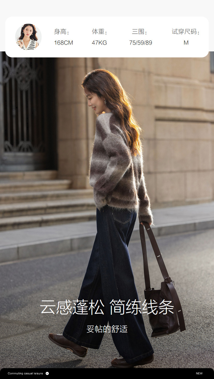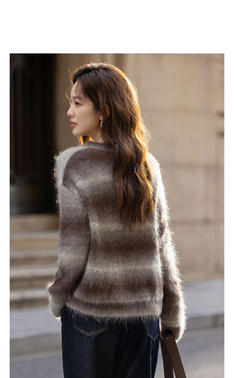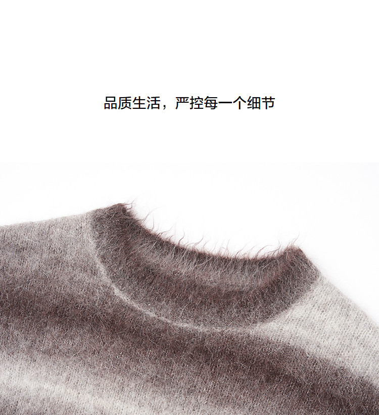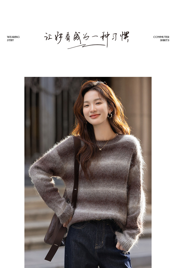 【臻奢羊驼毛混纺】冬季渐变式条纹圆领线衫蓬松柔软针织衫女上衣