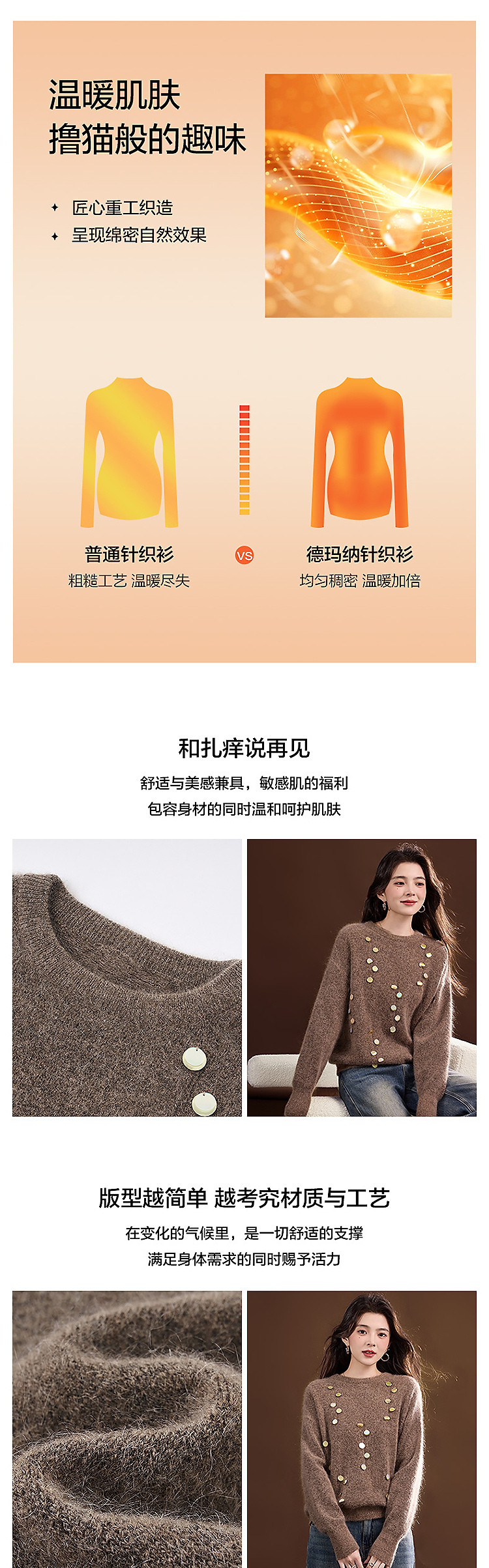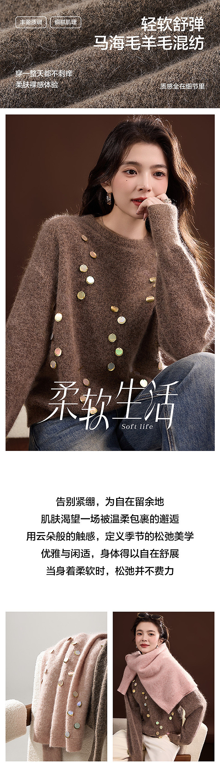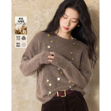 【马海毛绵羊毛混纺】冬季优雅亮片线衫宽松柔弹藏肉针织衫女上衣