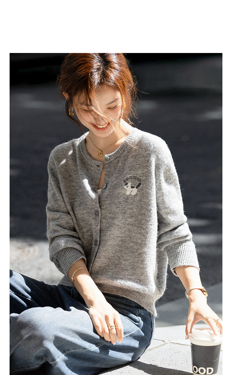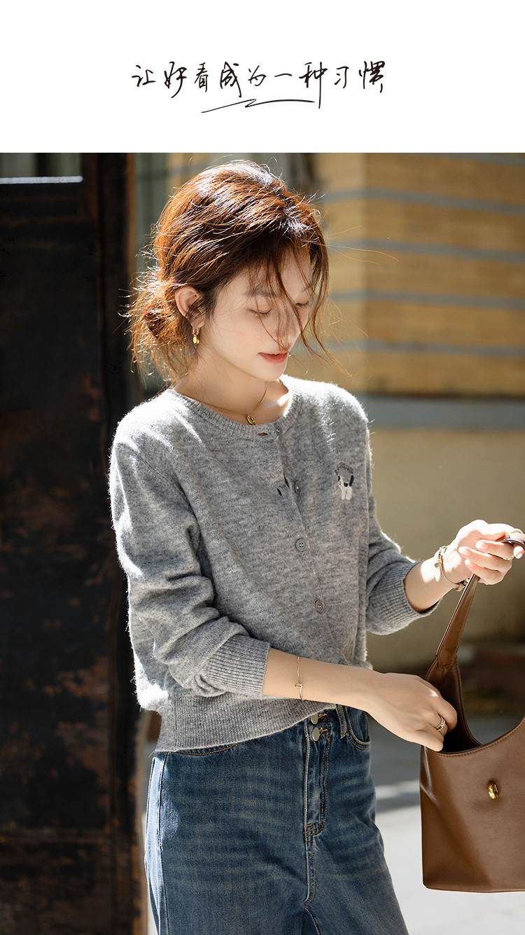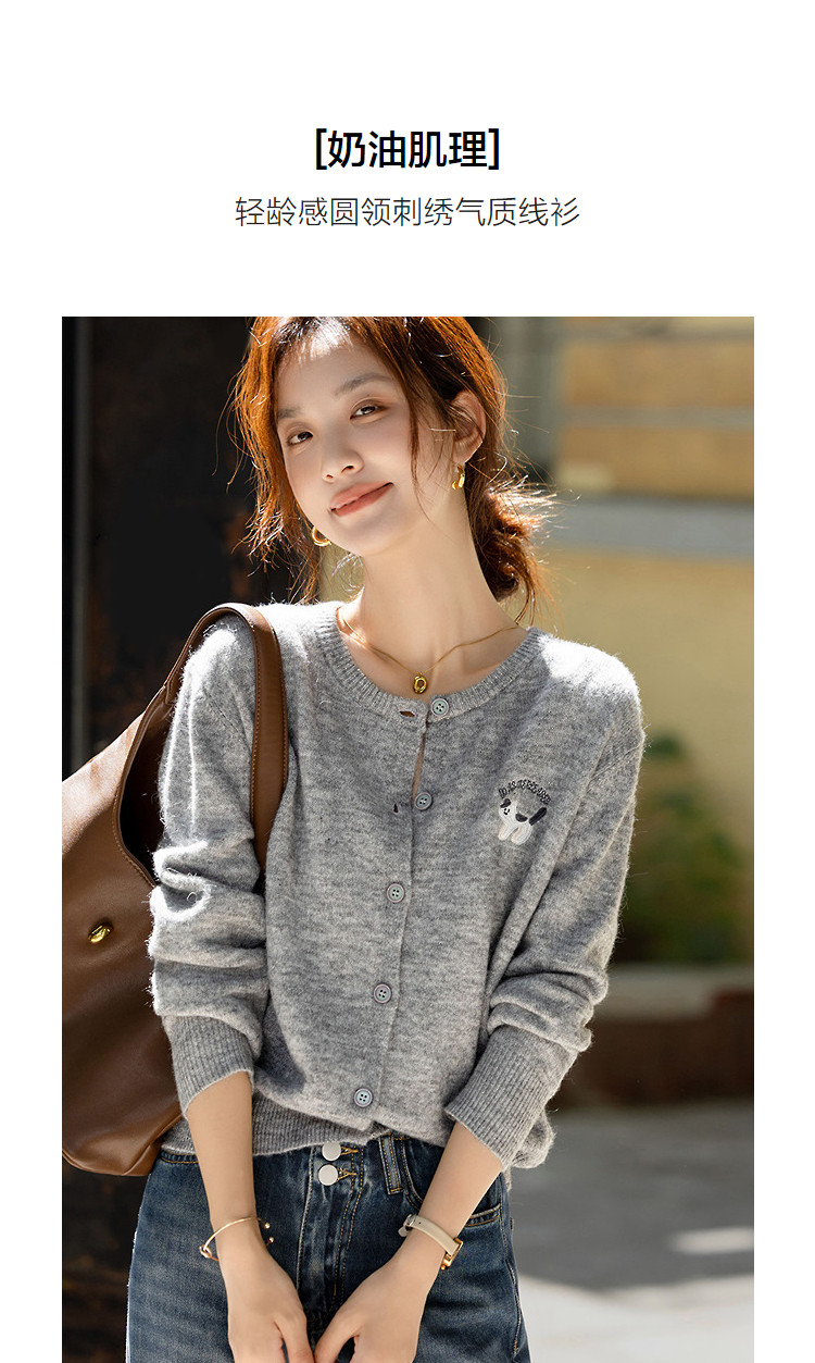 【奶油针织】冬季轻龄感圆领刺绣线衫藏肉软糯小个子针织衫女上衣