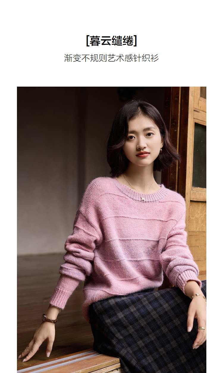 【暮云缱绻】冬季含绵羊毛线衫渐变不规则宽松艺术感针织衫女上衣