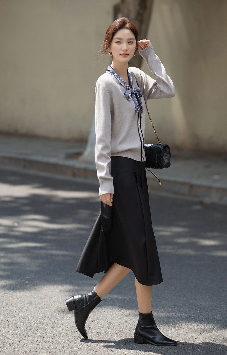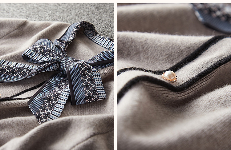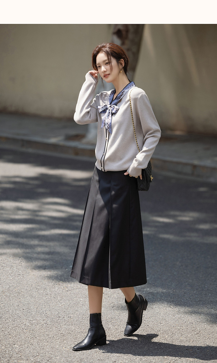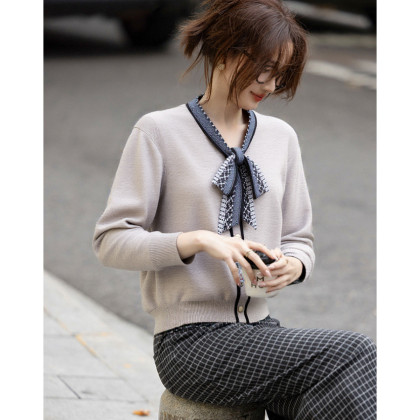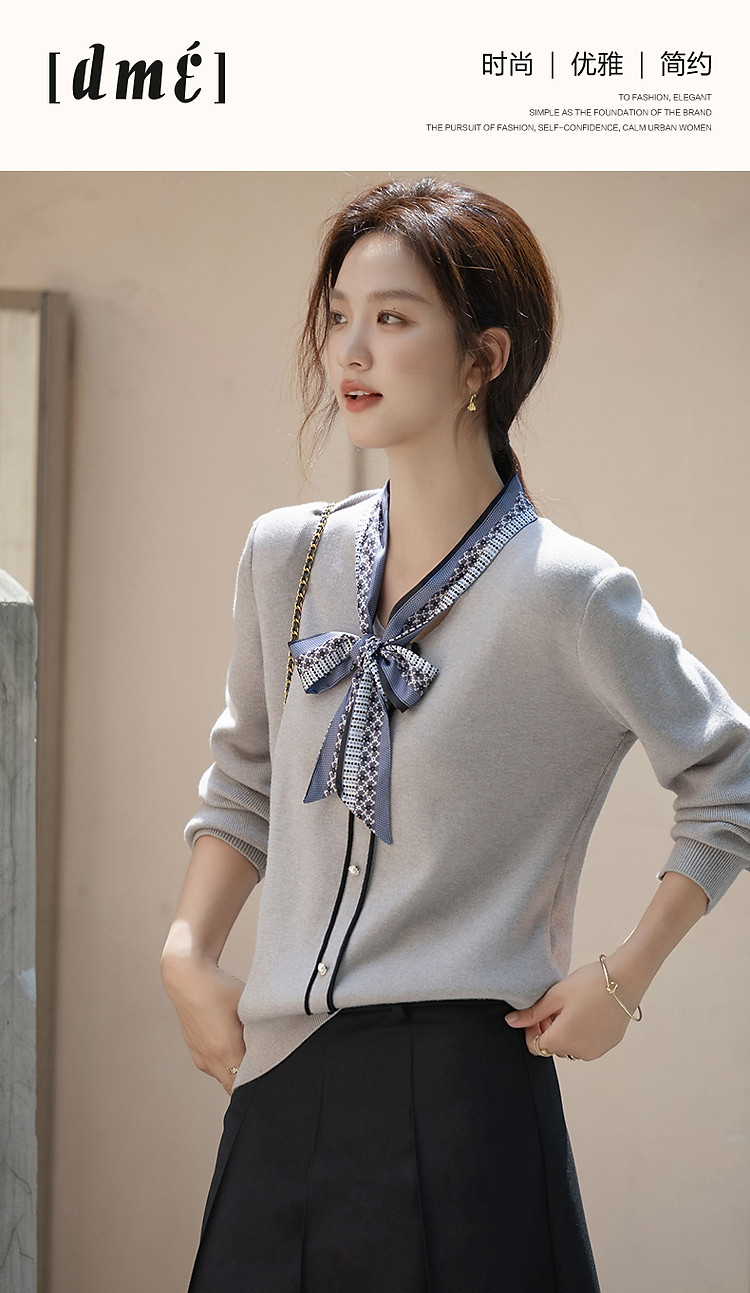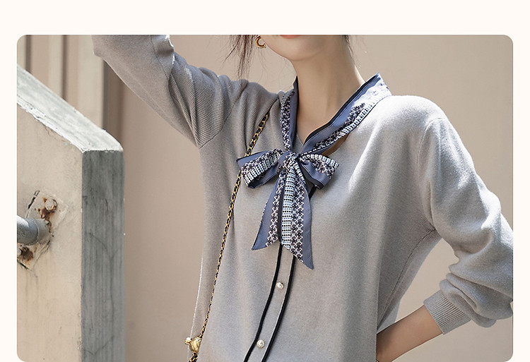 【日杂通勤自留】春秋冬丝带珍珠扣装饰开衫多季通穿针织衫女上衣