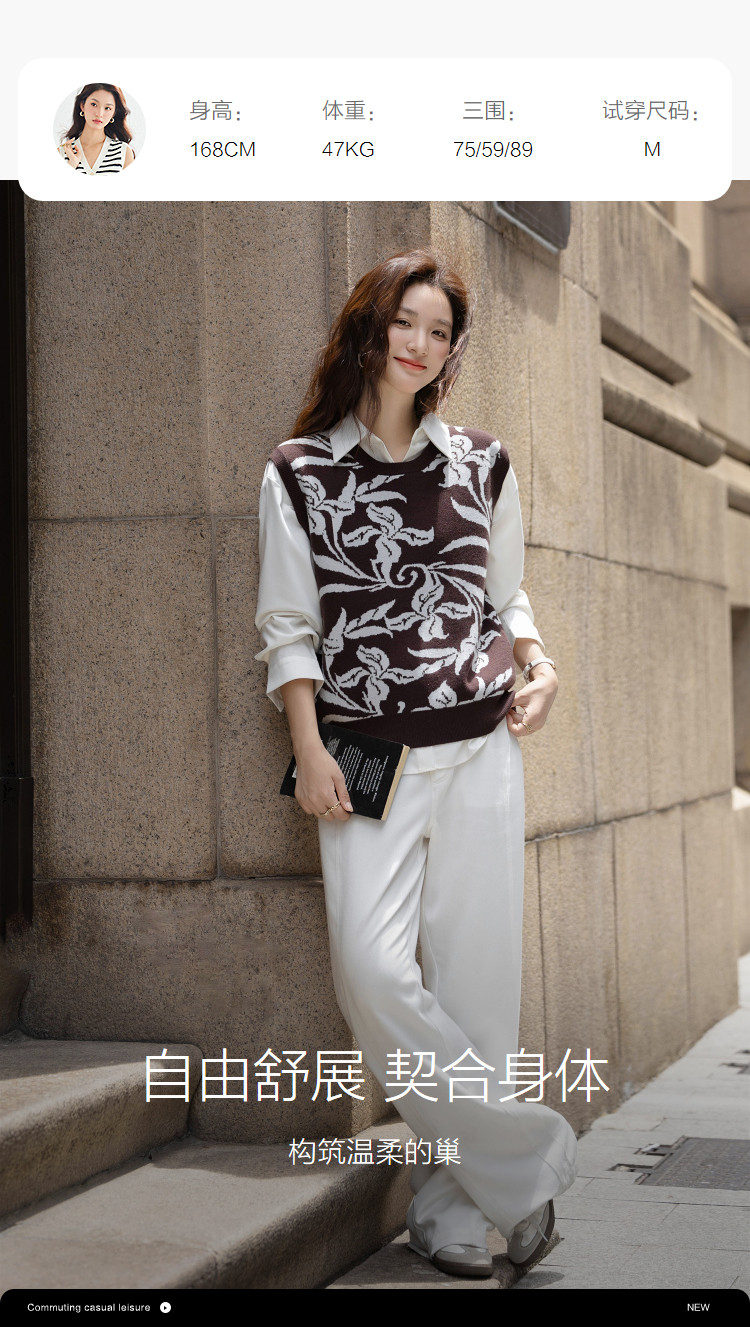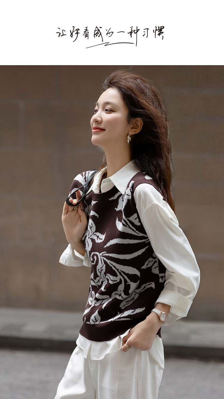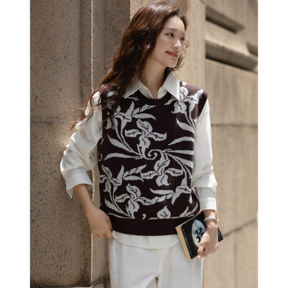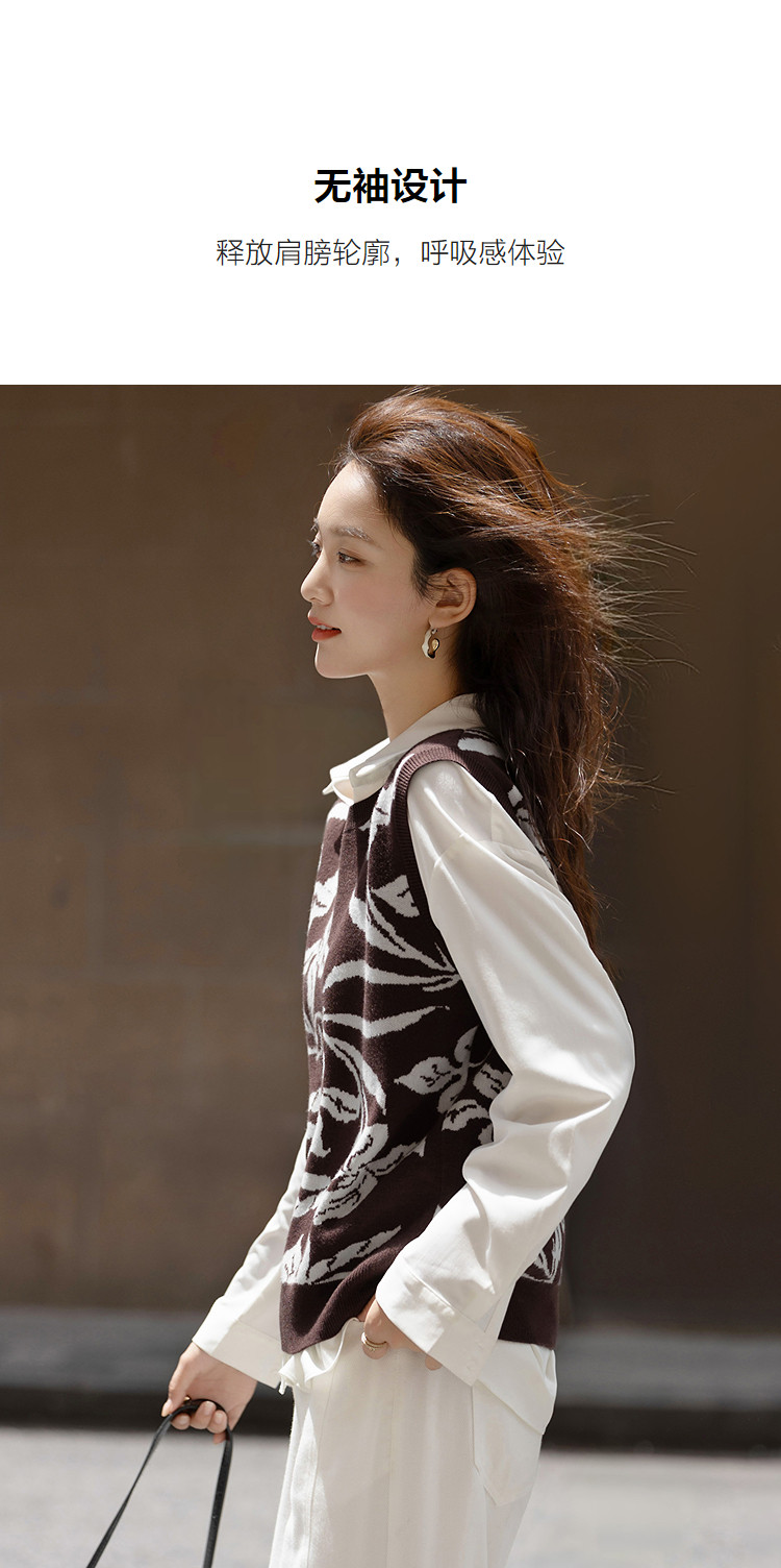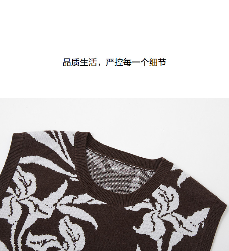 【提花诗人】秋季复古风花朵提花线衫圆领无袖马甲针织衫女上衣