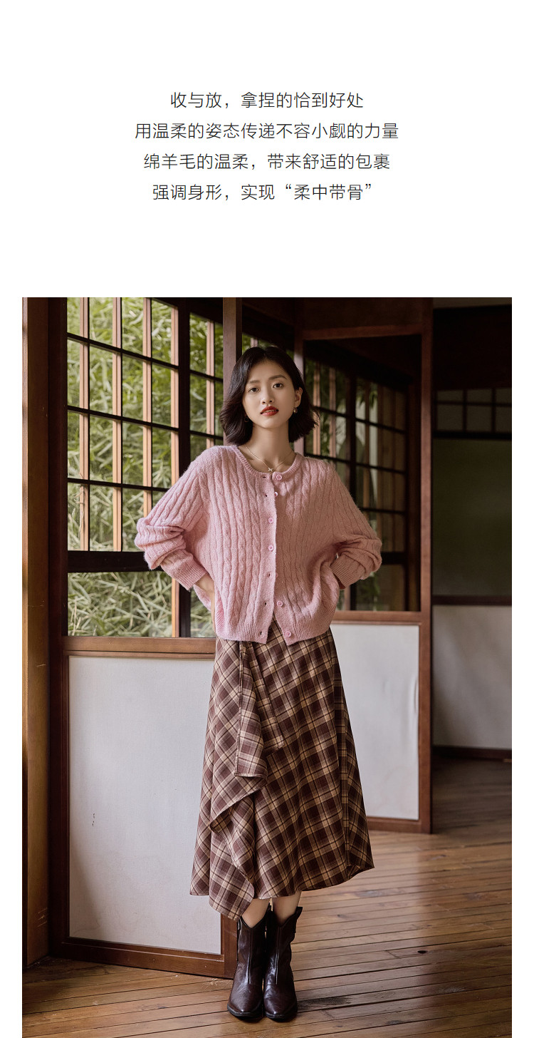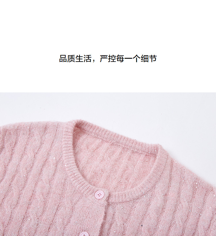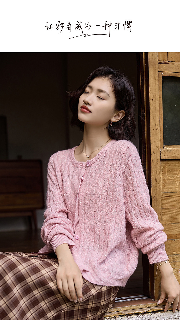 【含蓬松绵羊毛】秋季圆领绞花亮片线衫宽松藏肉小个子针织衫上衣