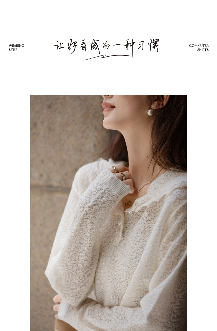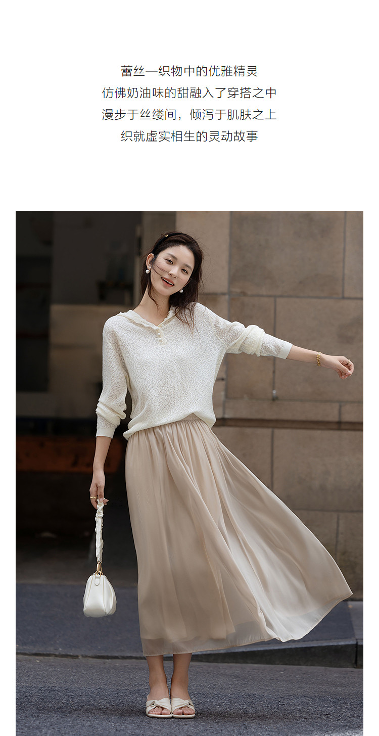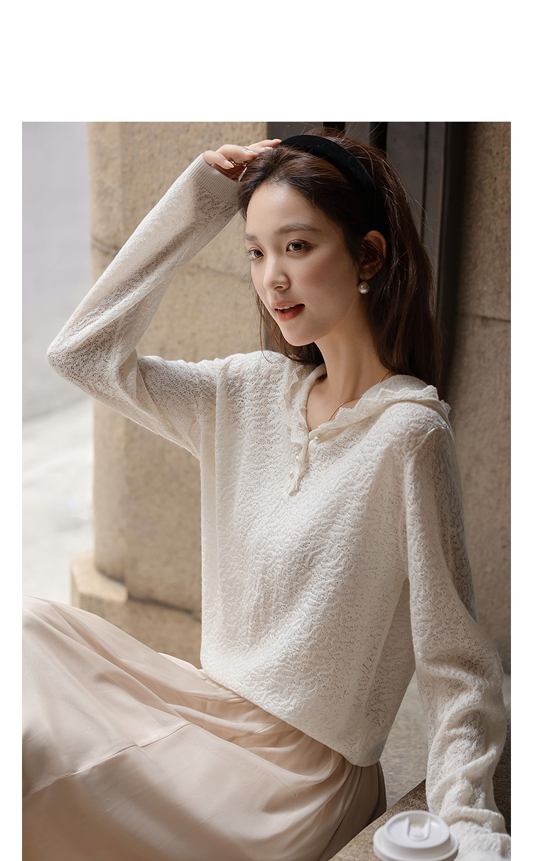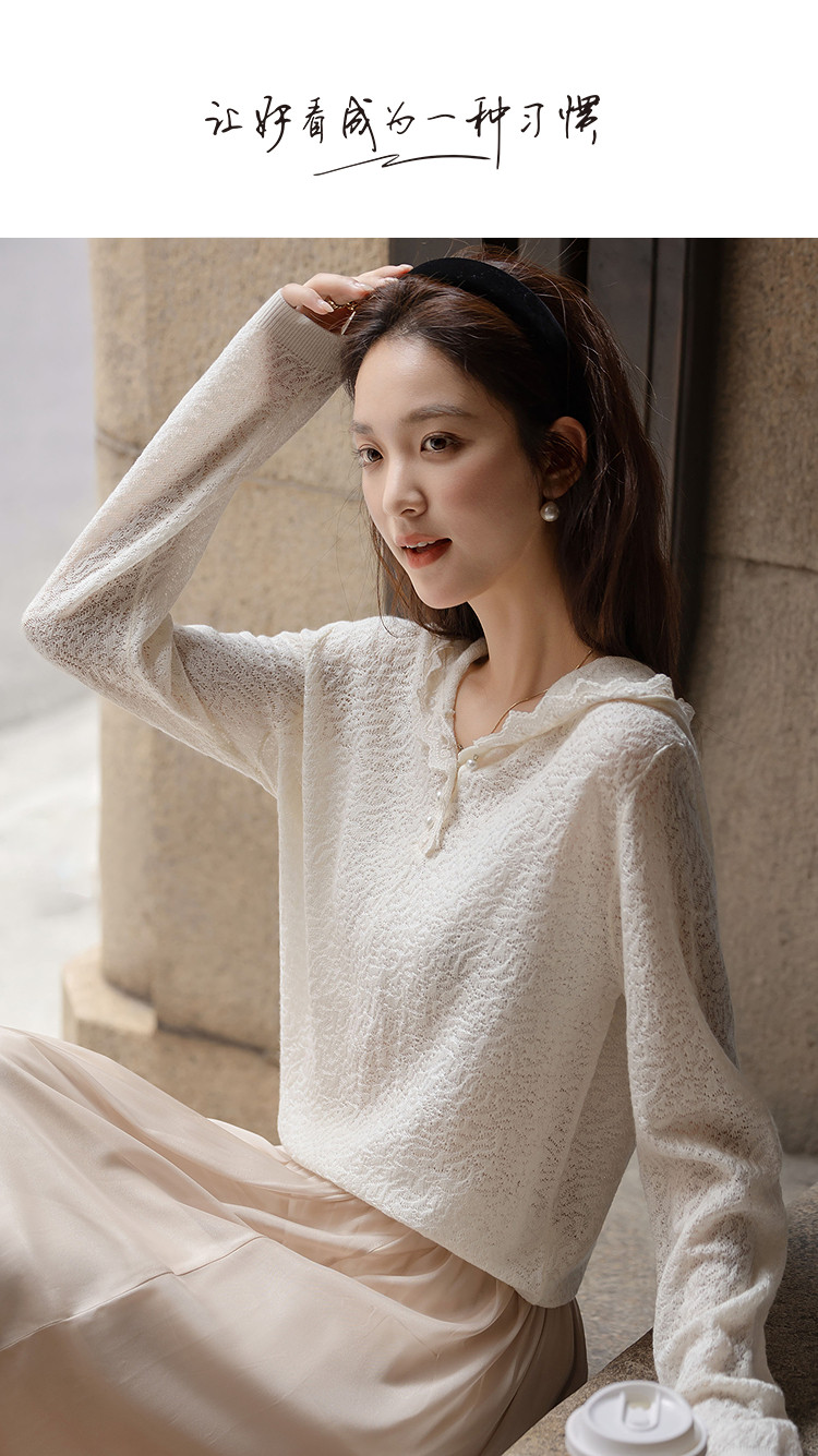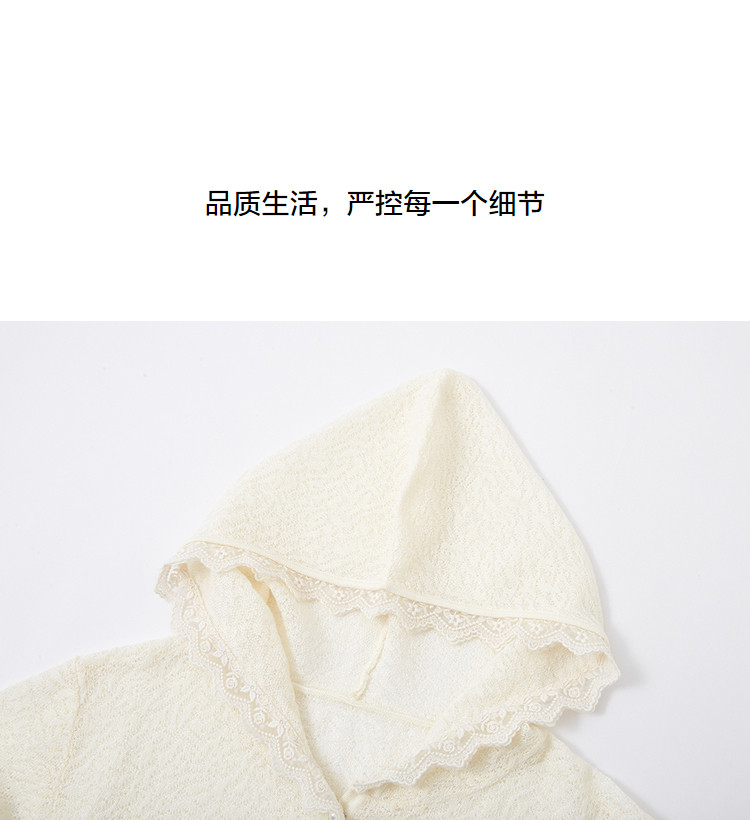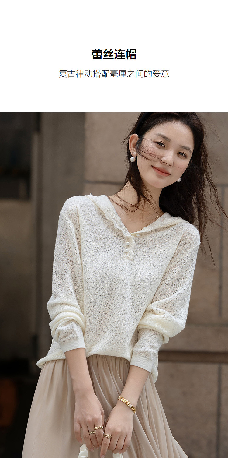 【含温润绵羊毛】秋季浮雕肌理蕾丝连帽线衫罗纹收口针织衫女上衣