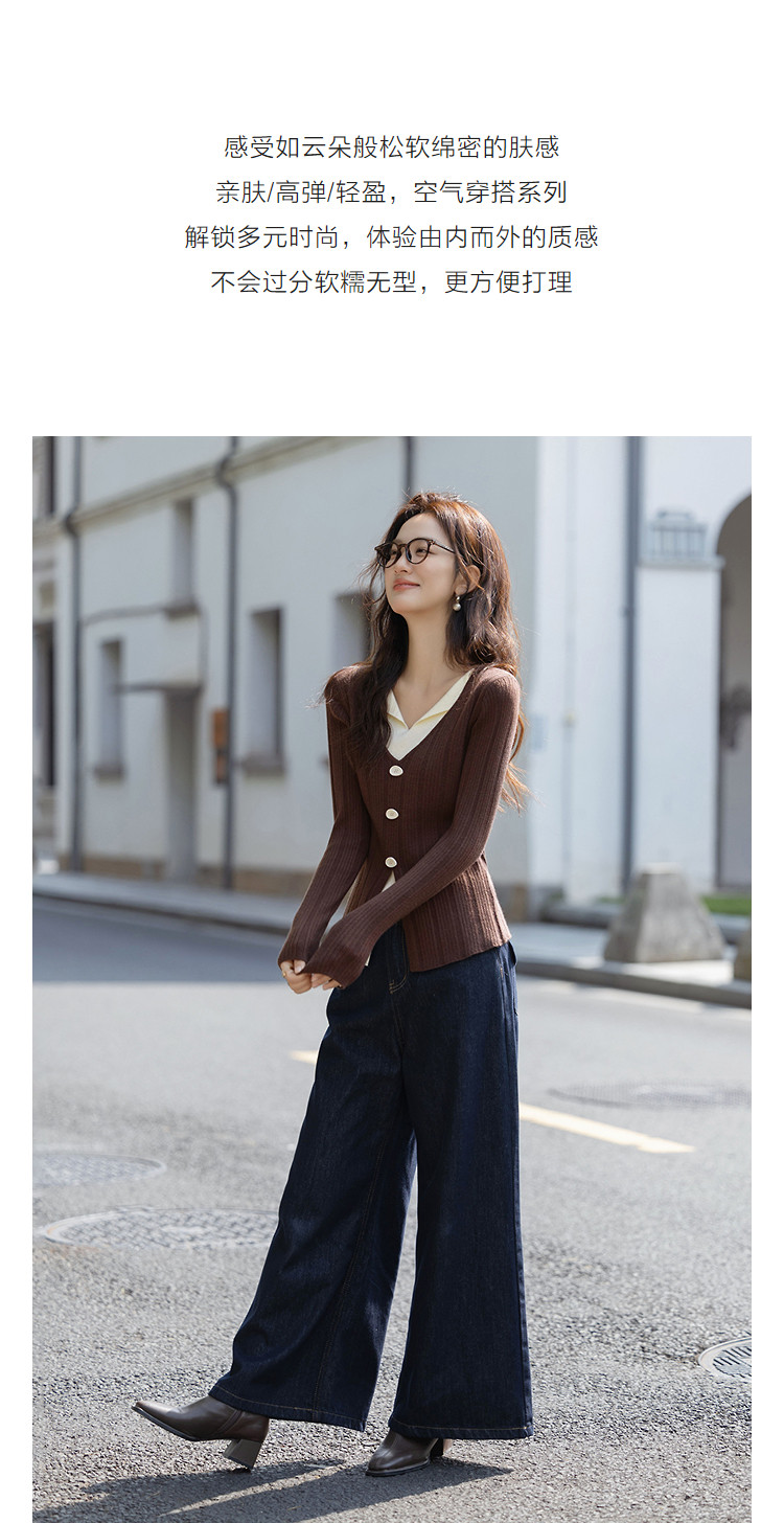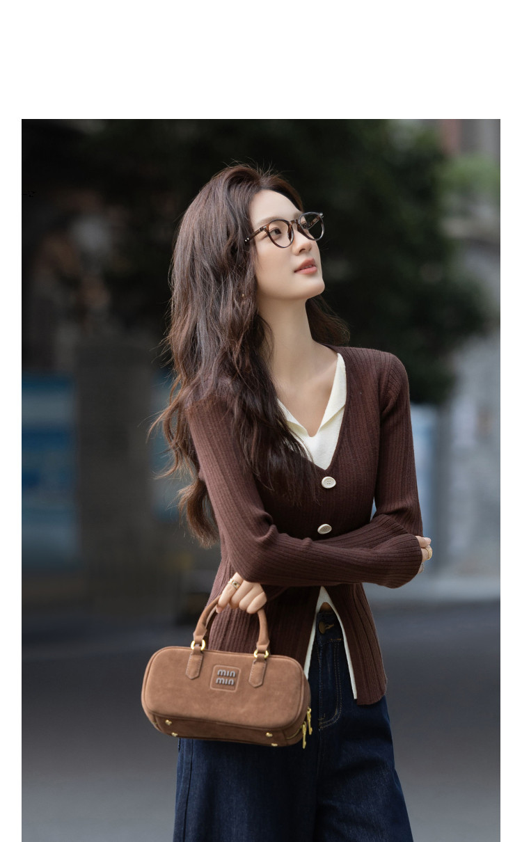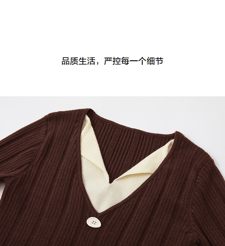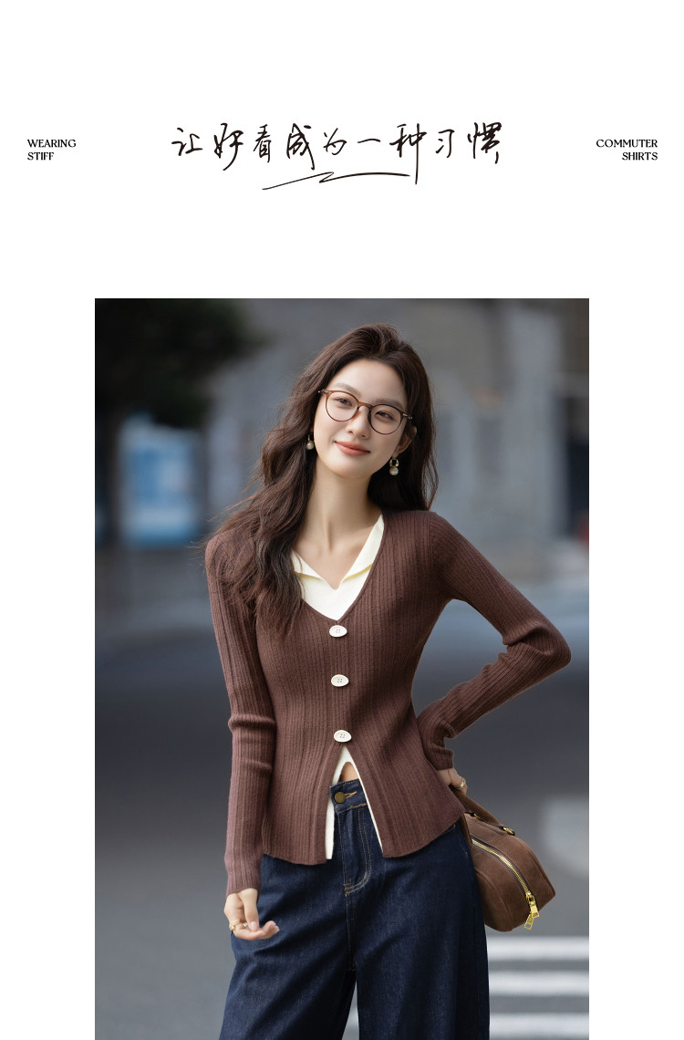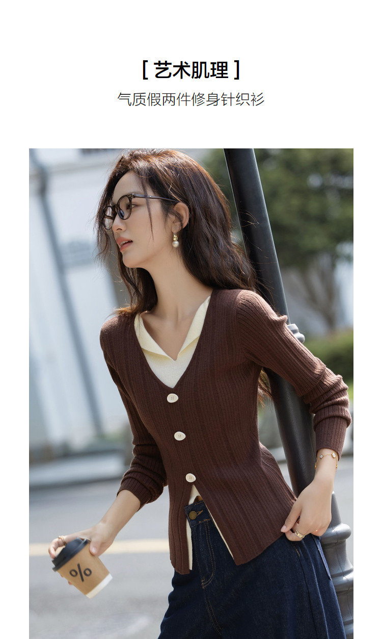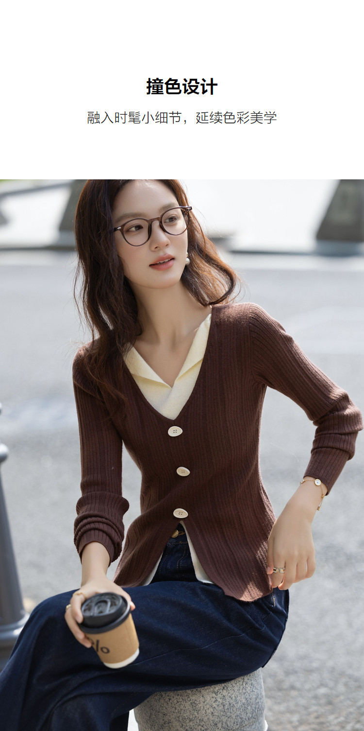 【温润纤绒纱】秋季气质假两件撞色V领线衫修身好搭针织衫女上衣
