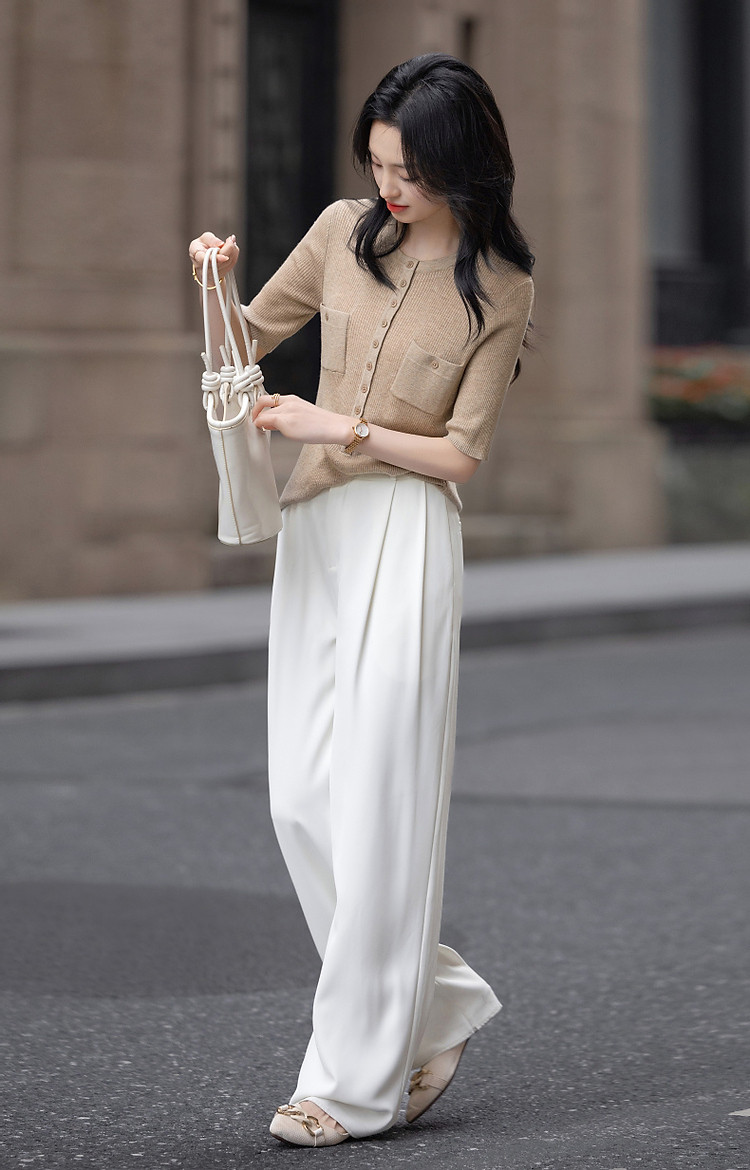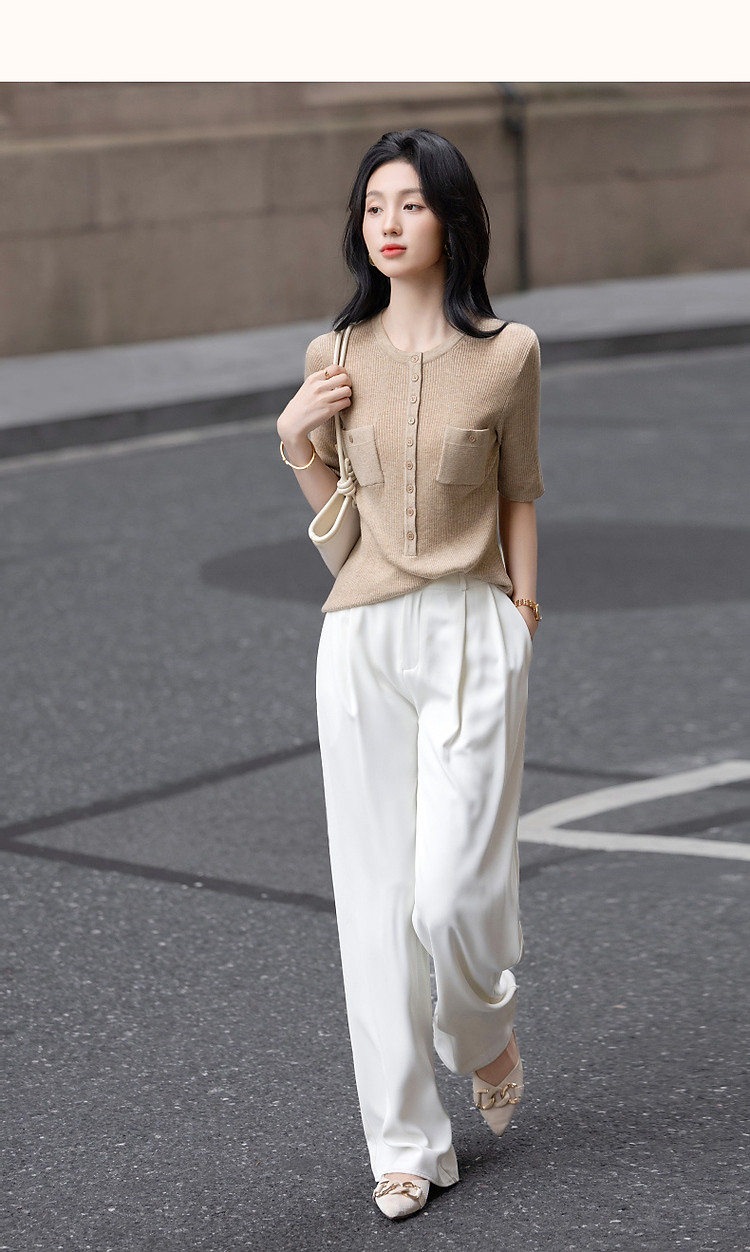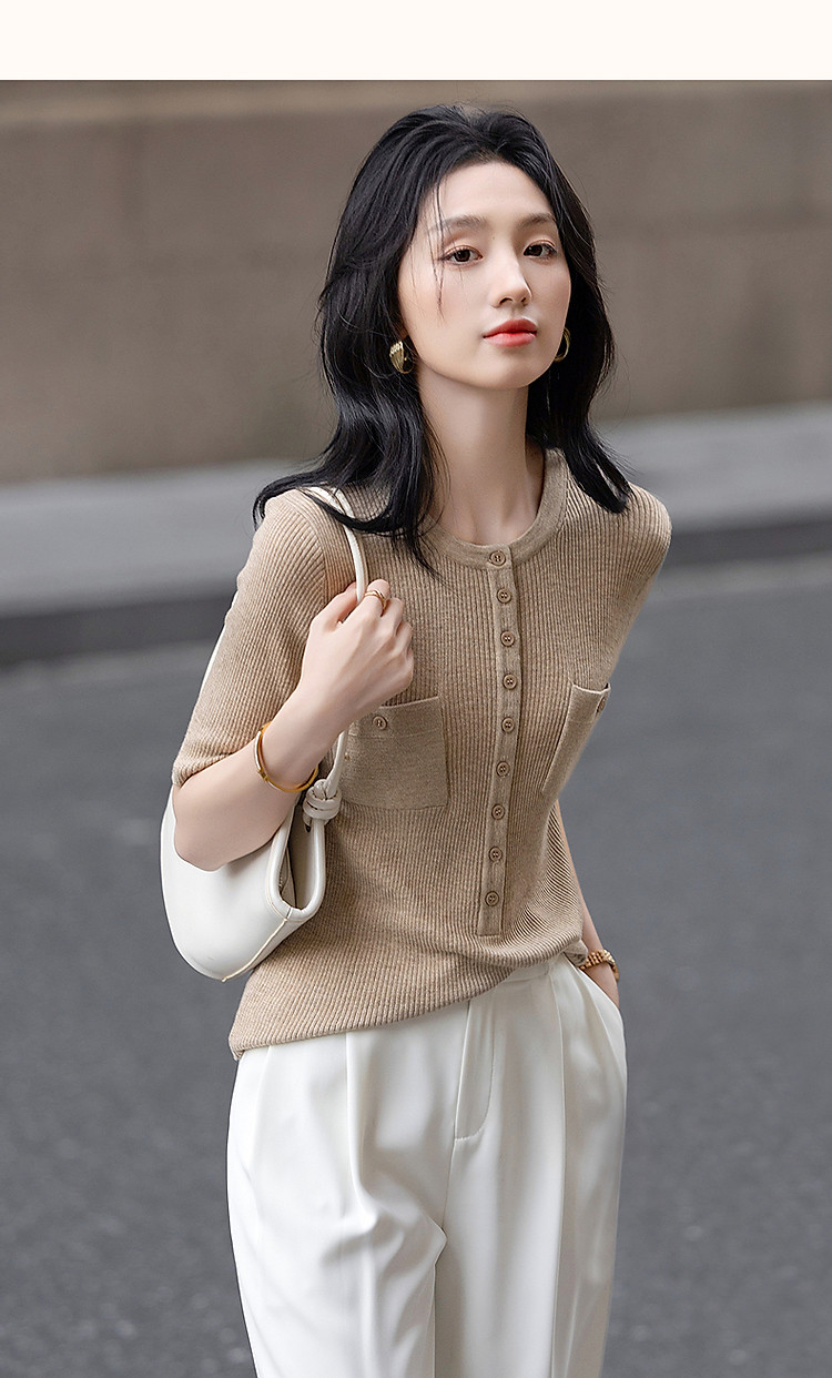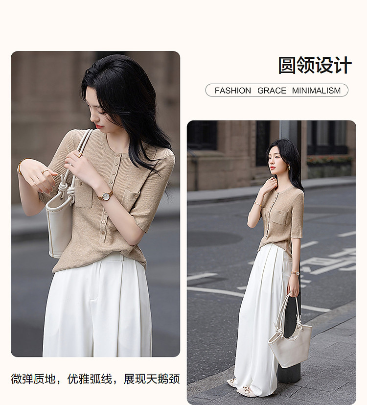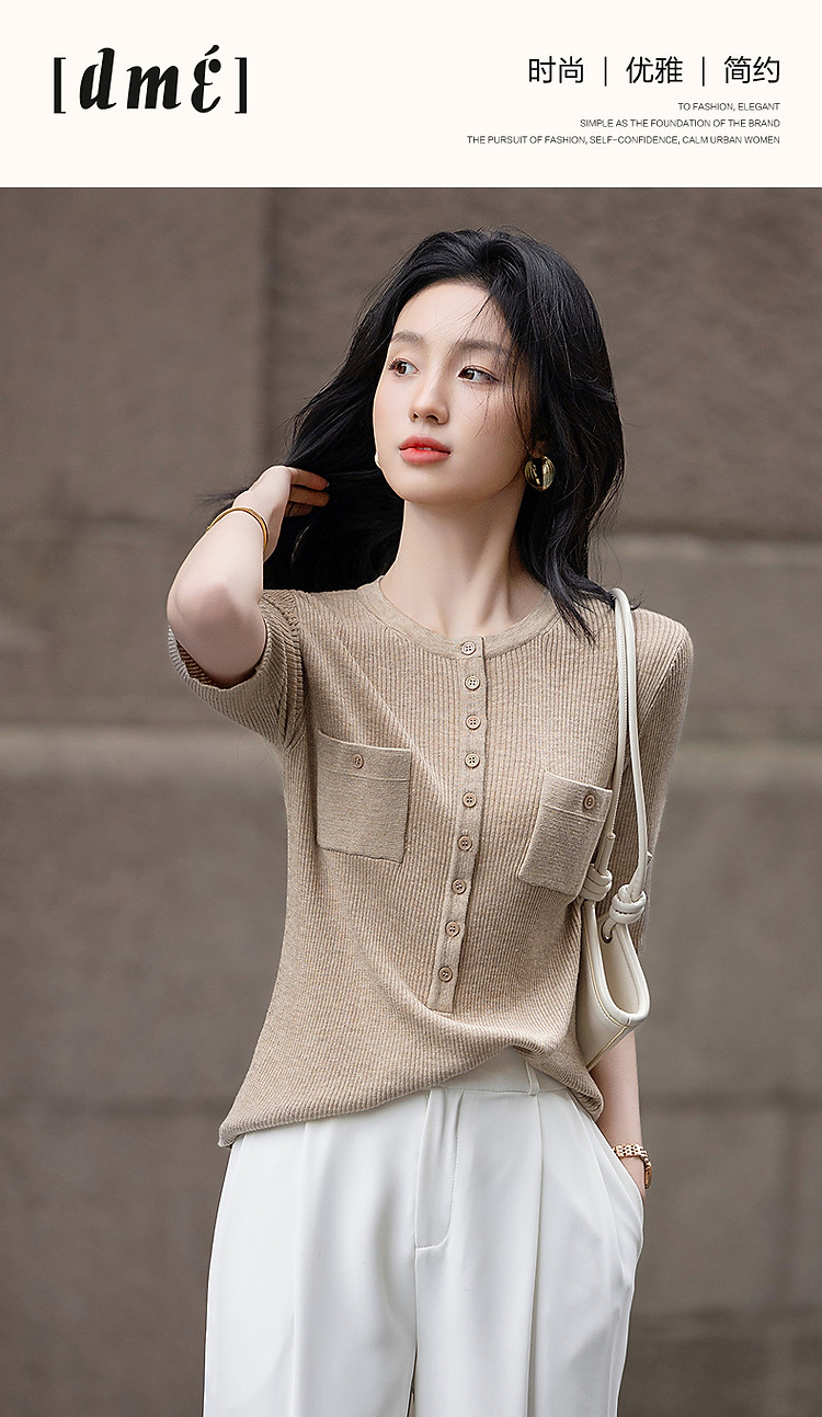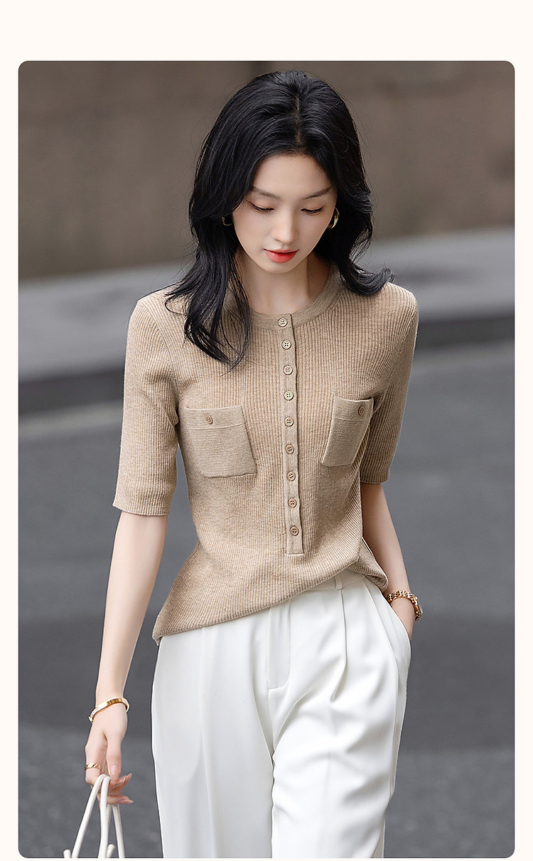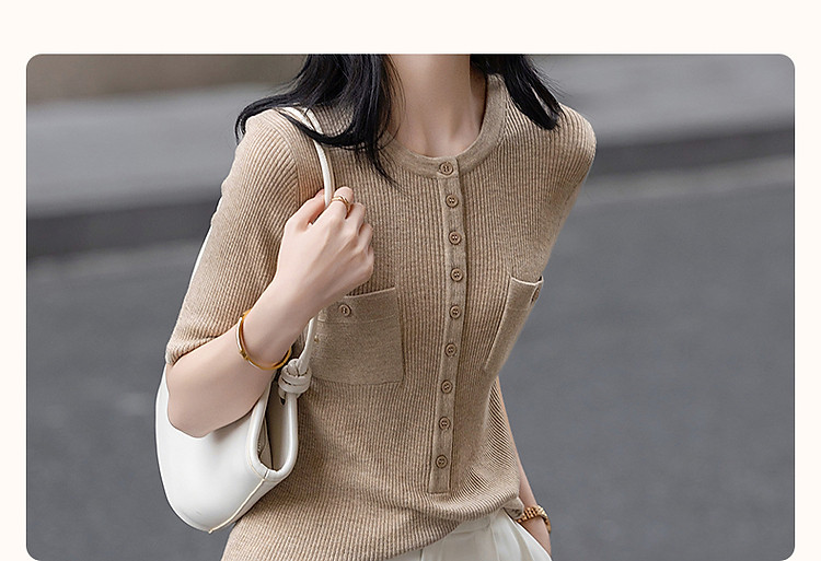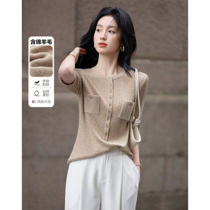【含绵羊毛】夏季多巴胺双口袋线衫舒适贴肤短袖藏肉针织衫女上衣