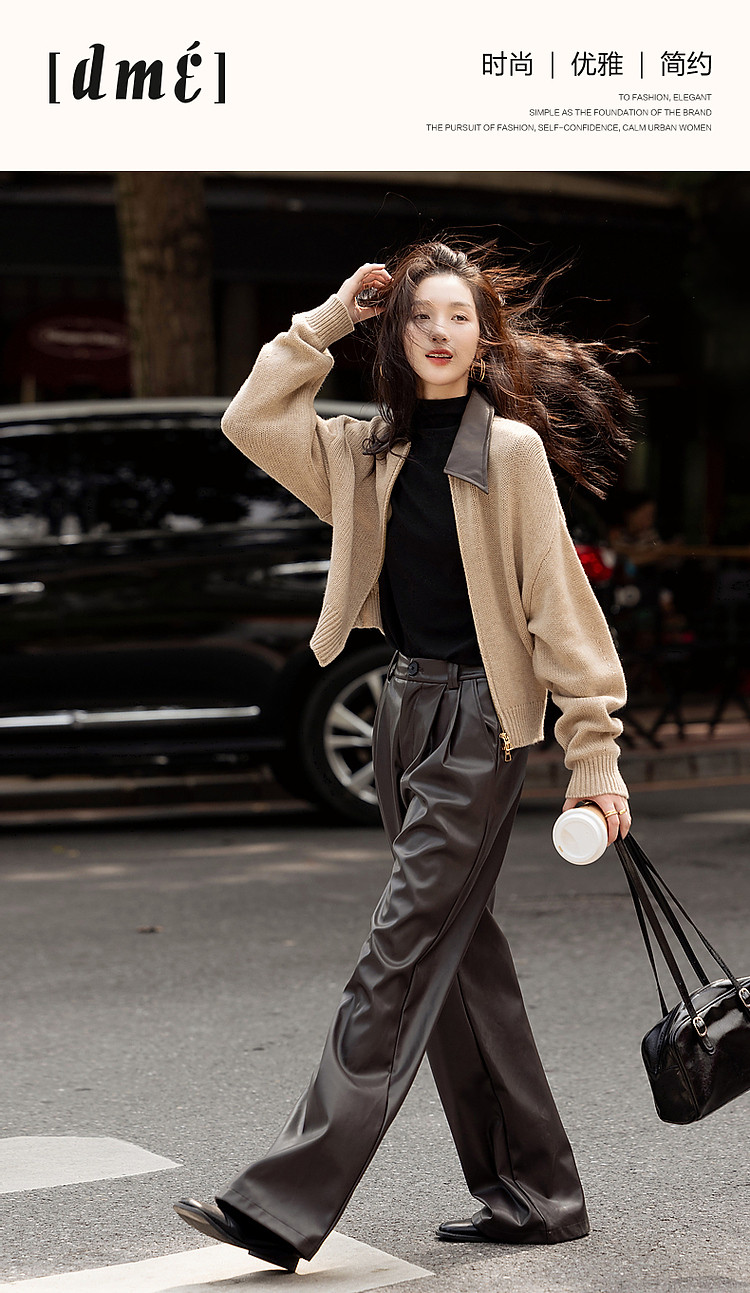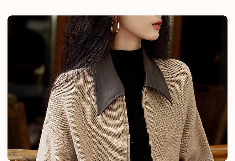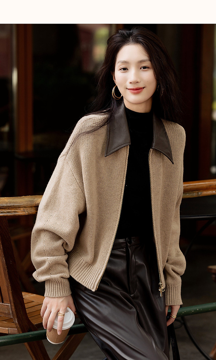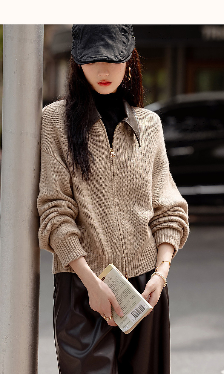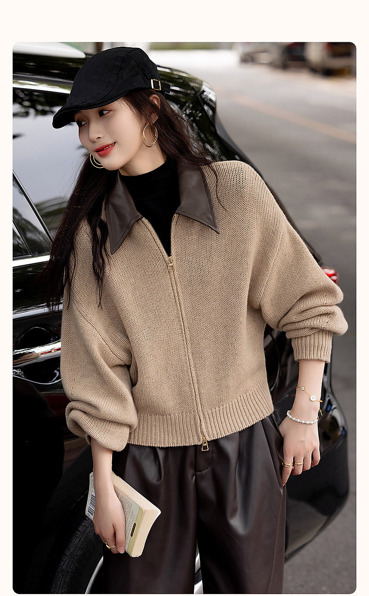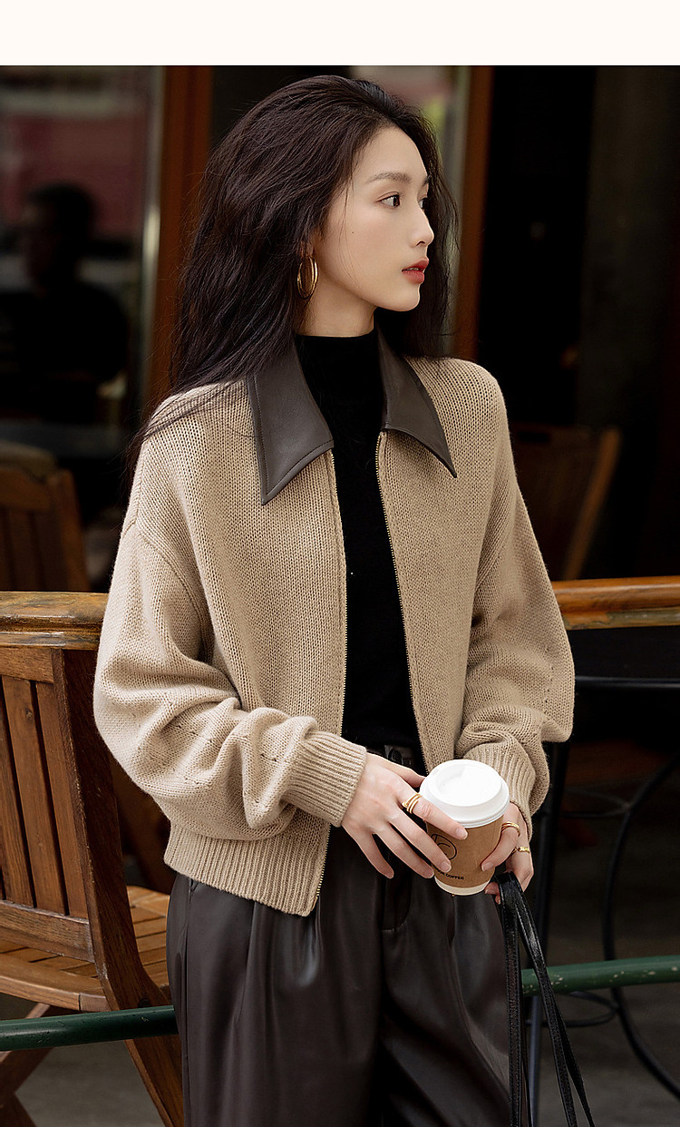 【100绵羊毛】春秋复古风拼接翻领开衫小个子气质针织衫女上衣
