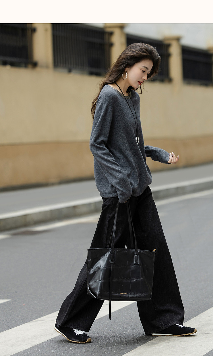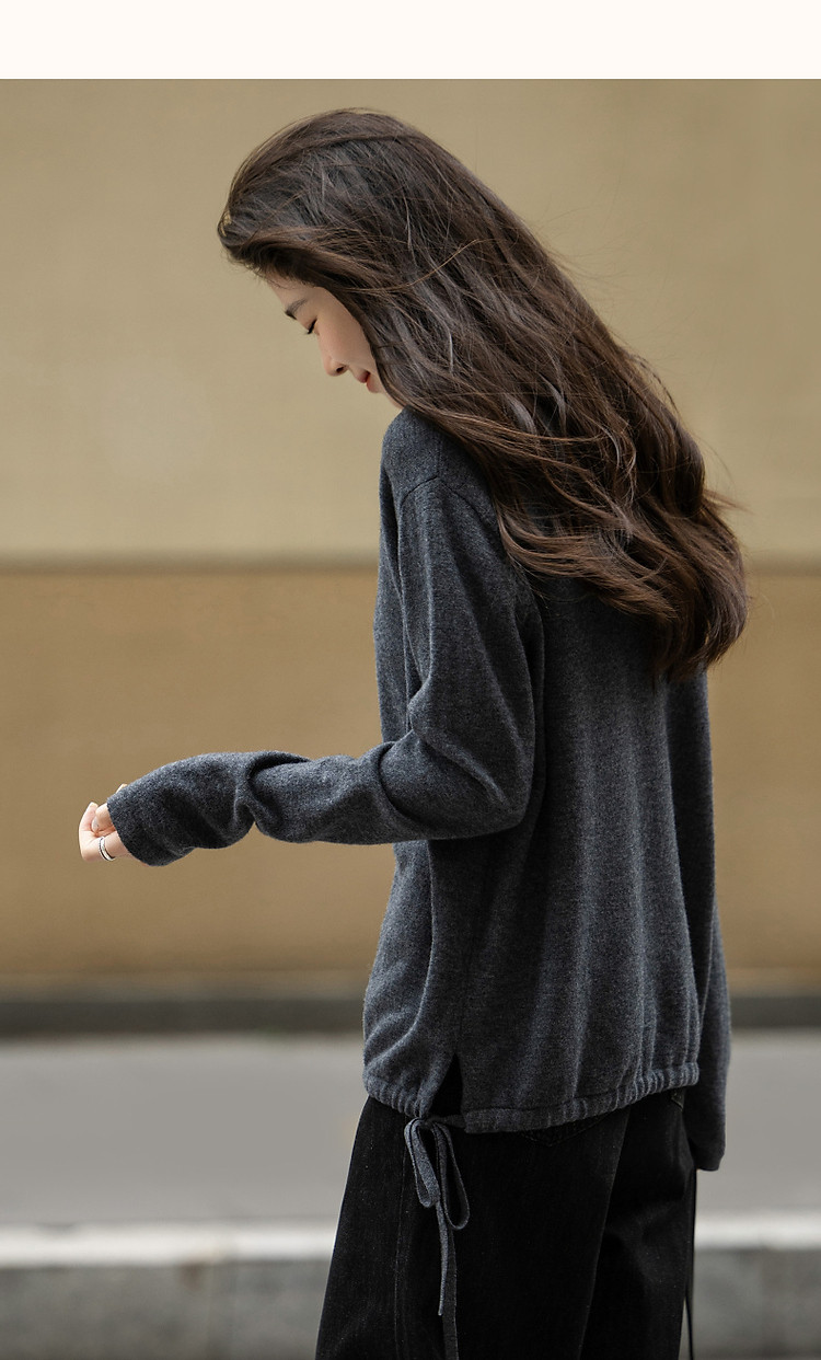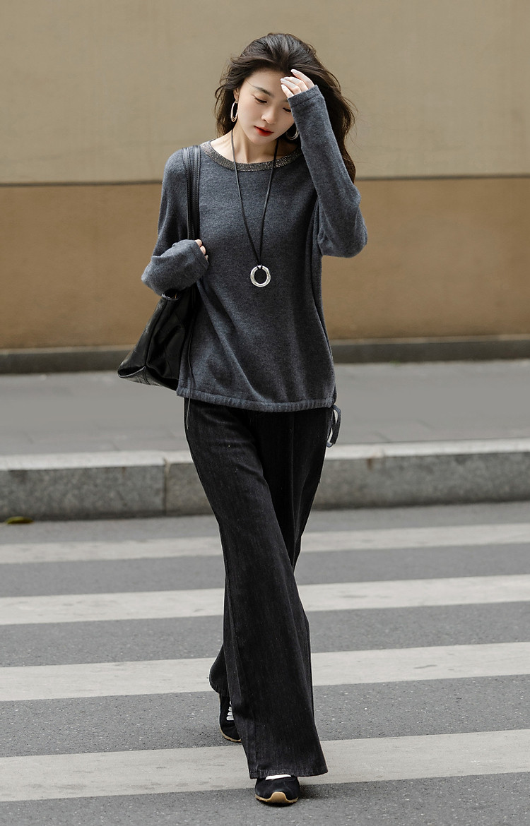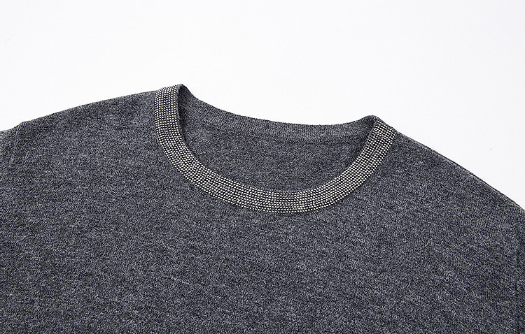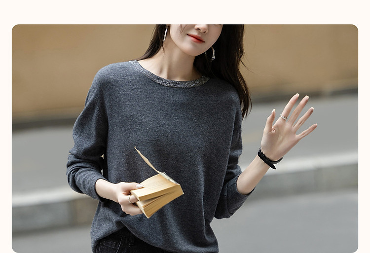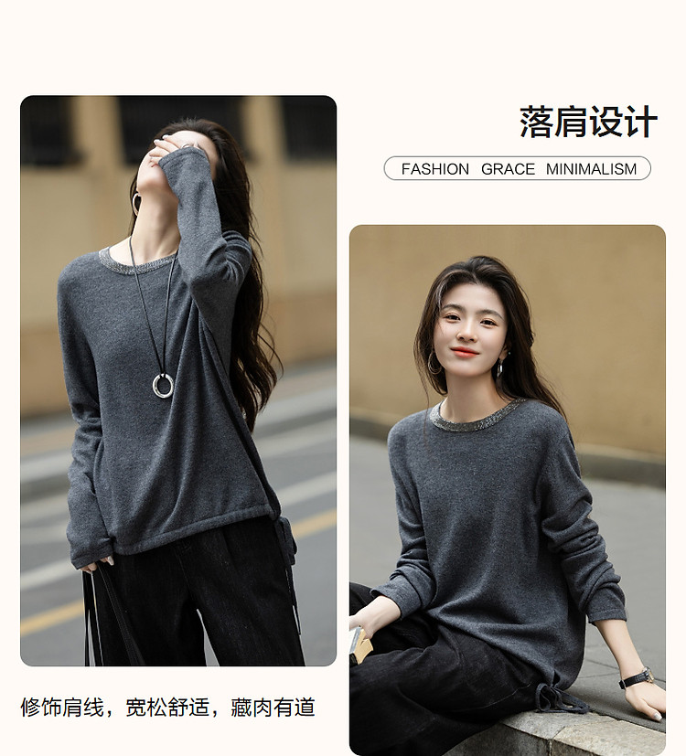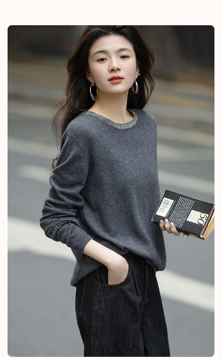 【静奢全绵羊毛】春秋轻熟烫钻圆领线衫慵懒舒适藏肉针织衫女上衣