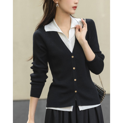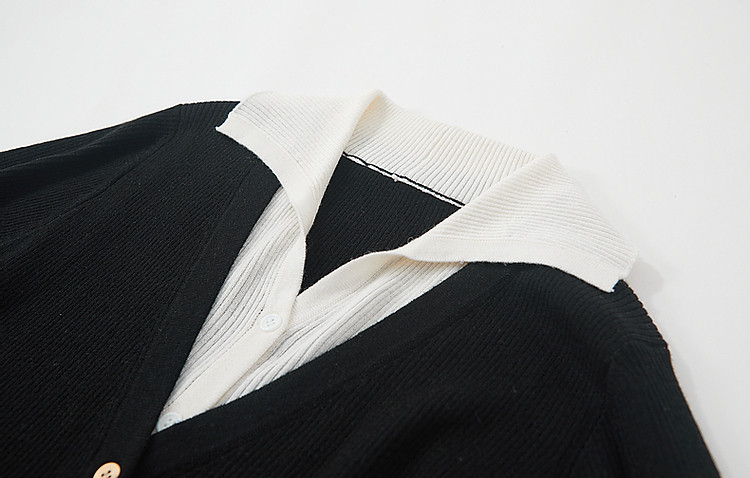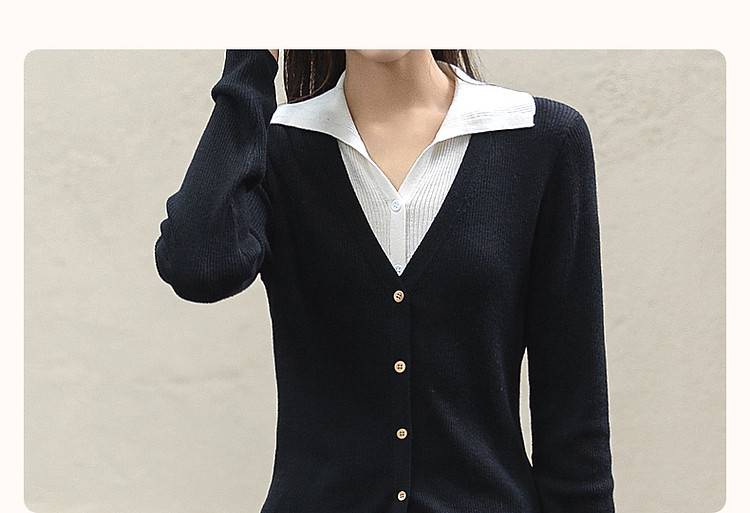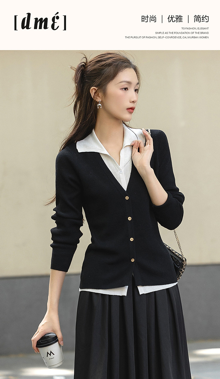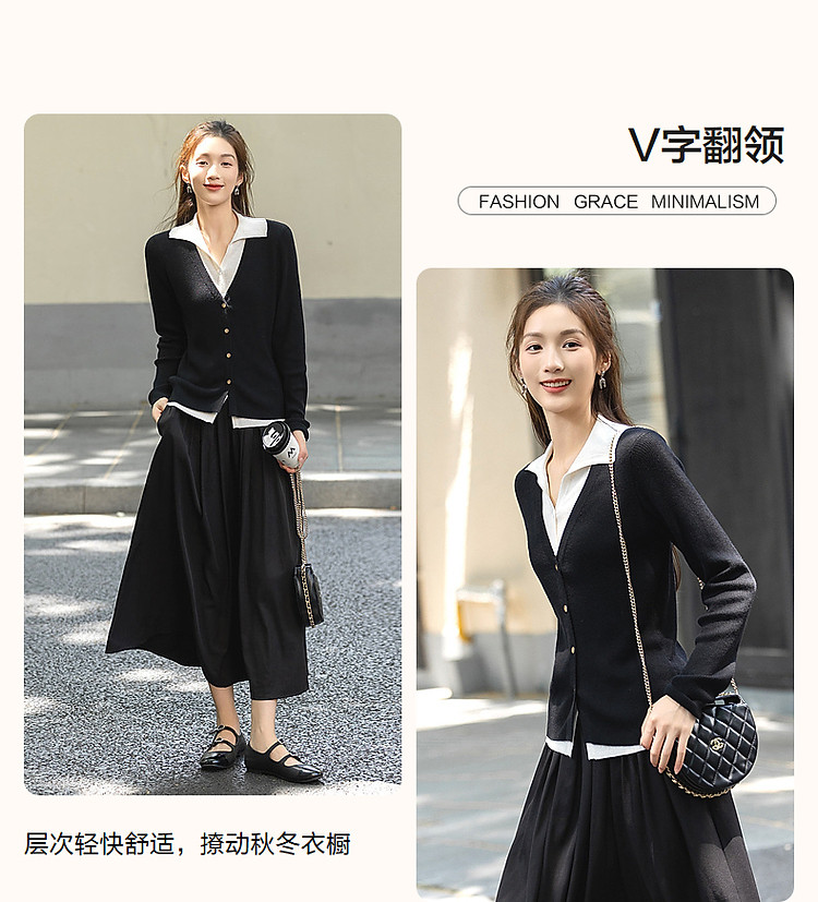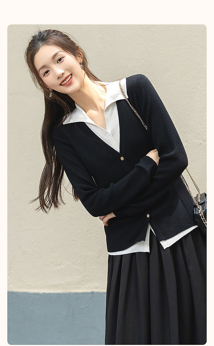 【假两件的快乐】春V字翻领开衫撞色线衫松弛藏肉针织衫女上衣