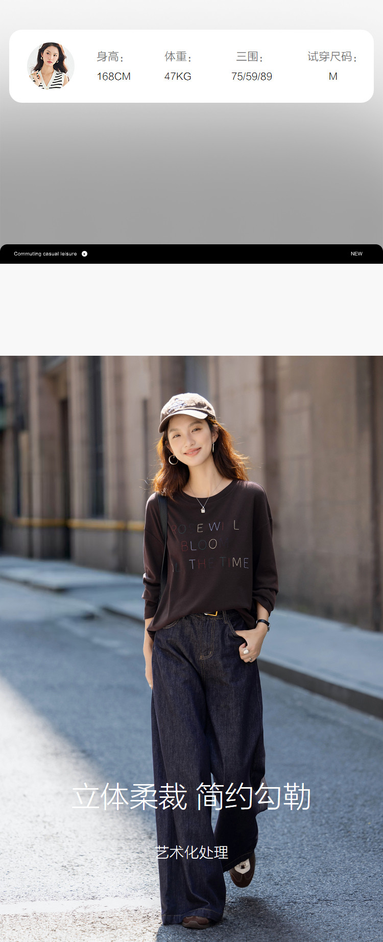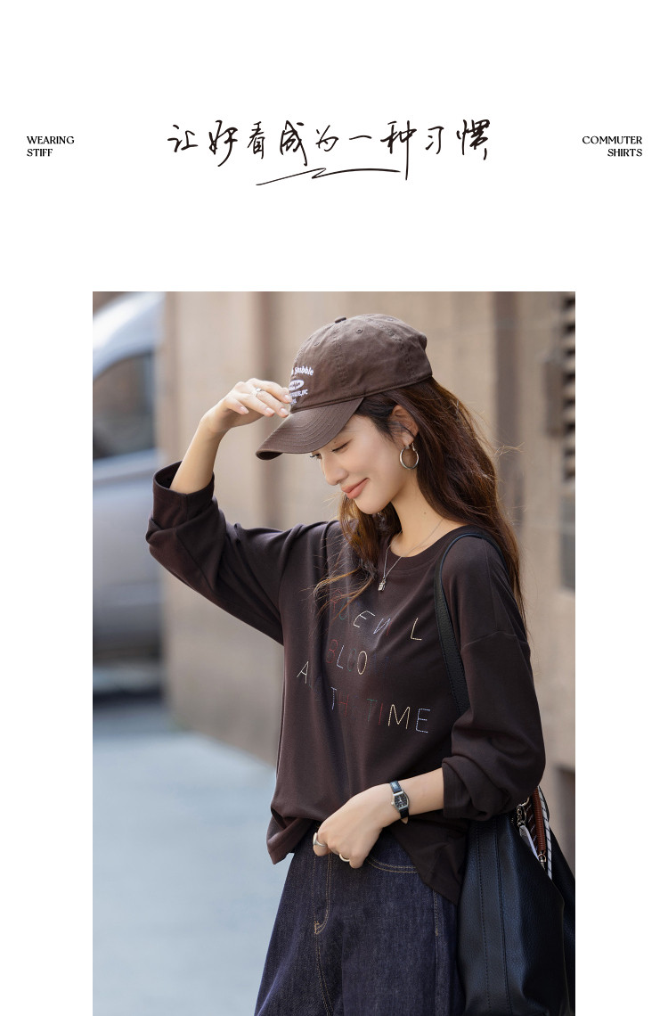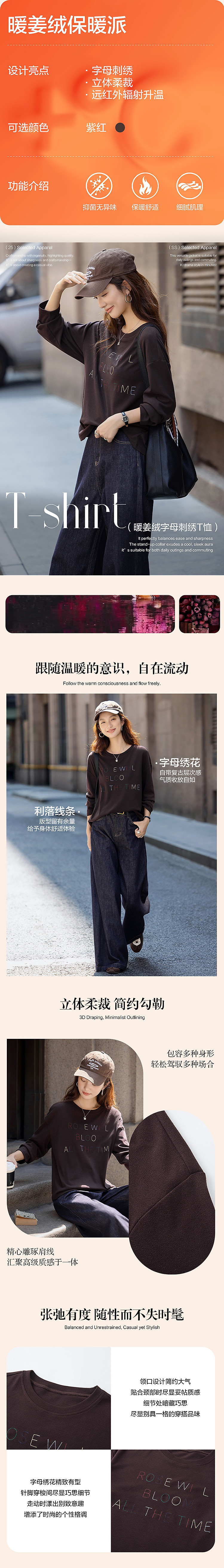 【220G暖姜绒保暖派】冬季简约圆领字母刺绣宽松藏肉女式t恤