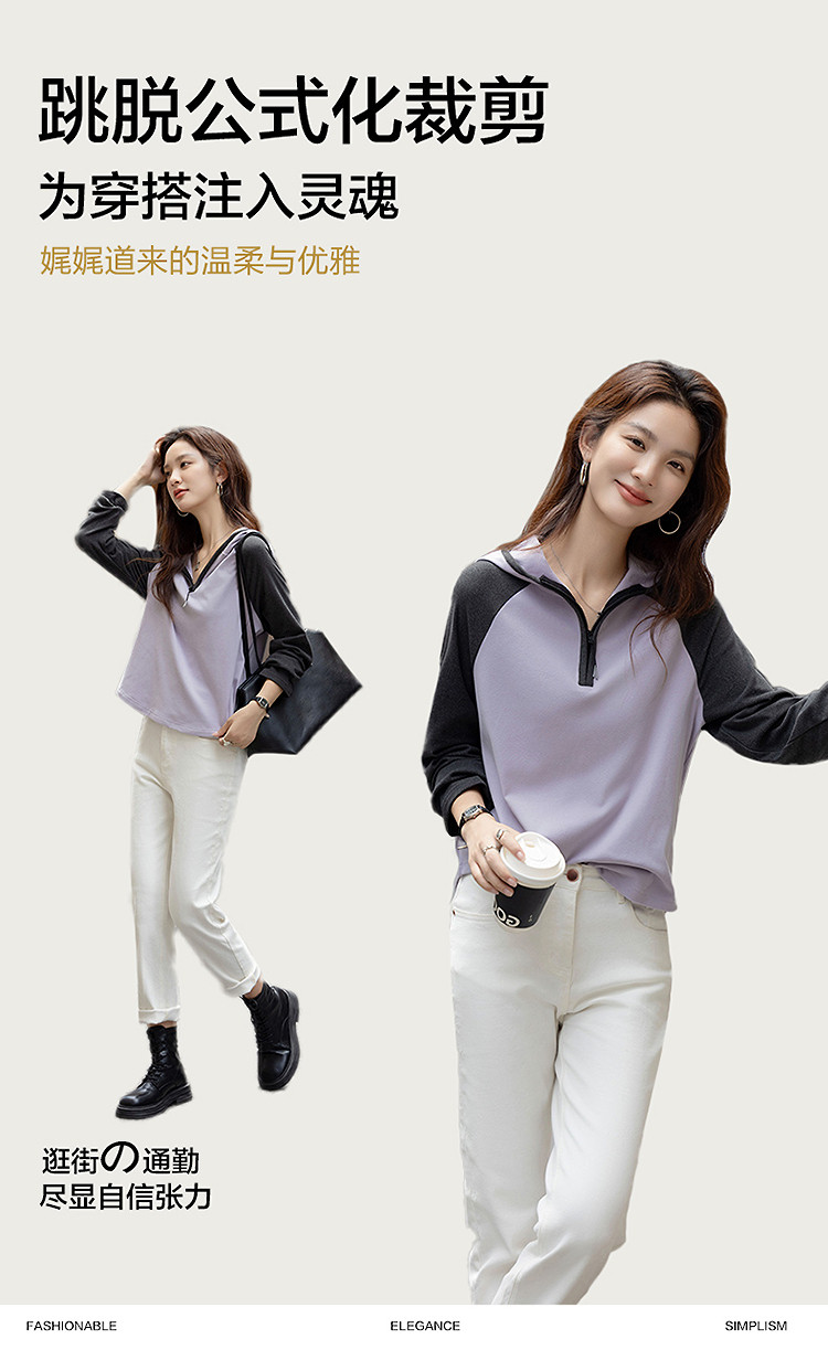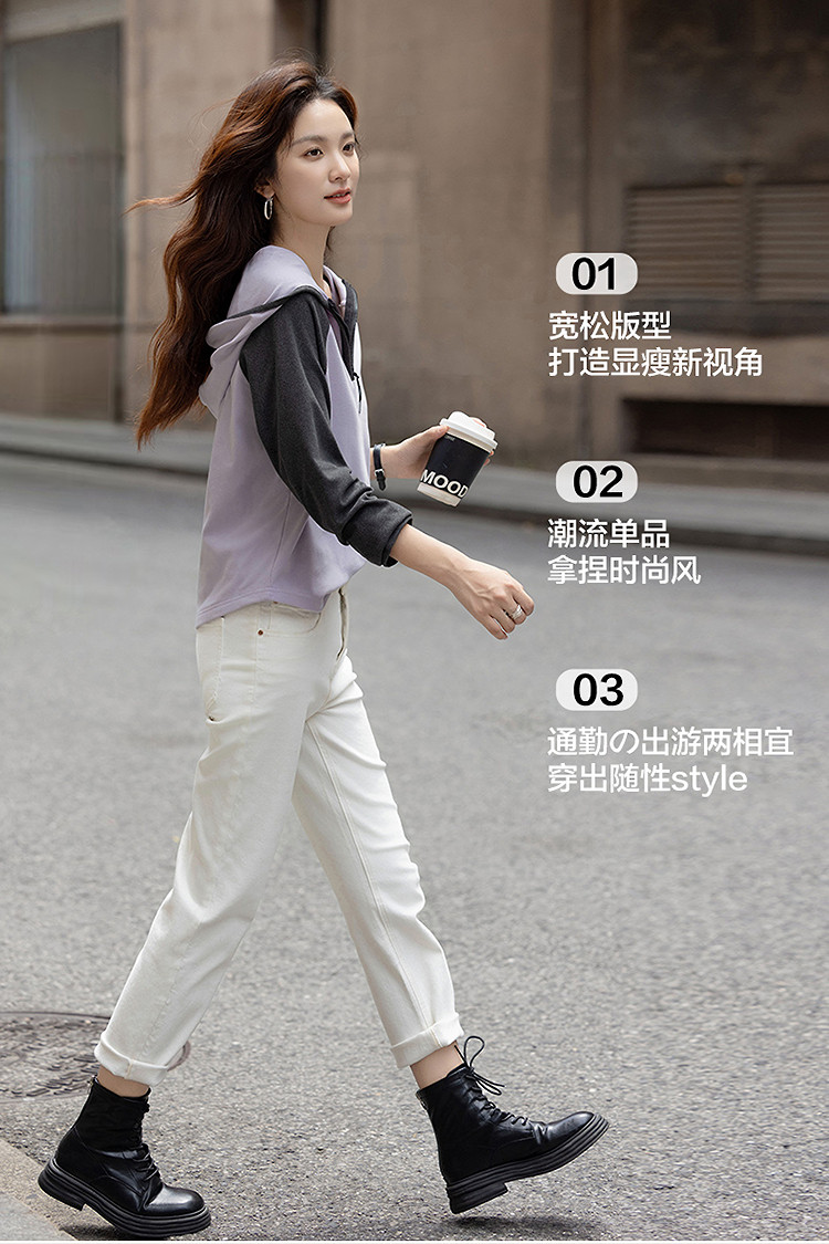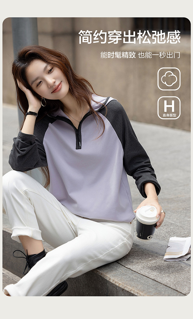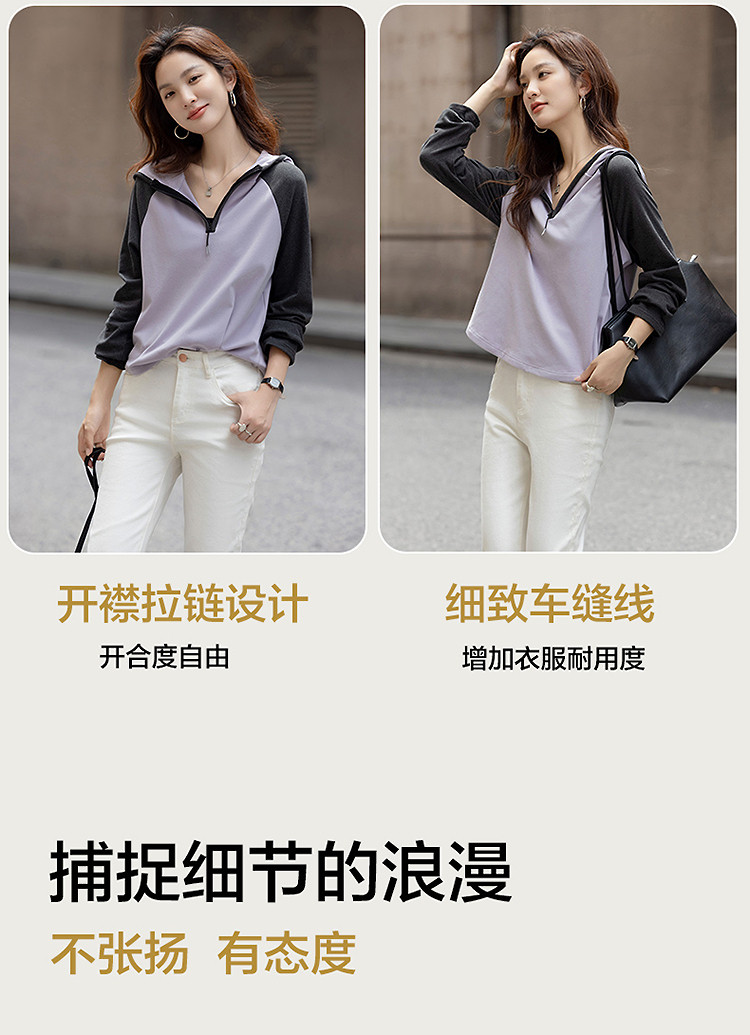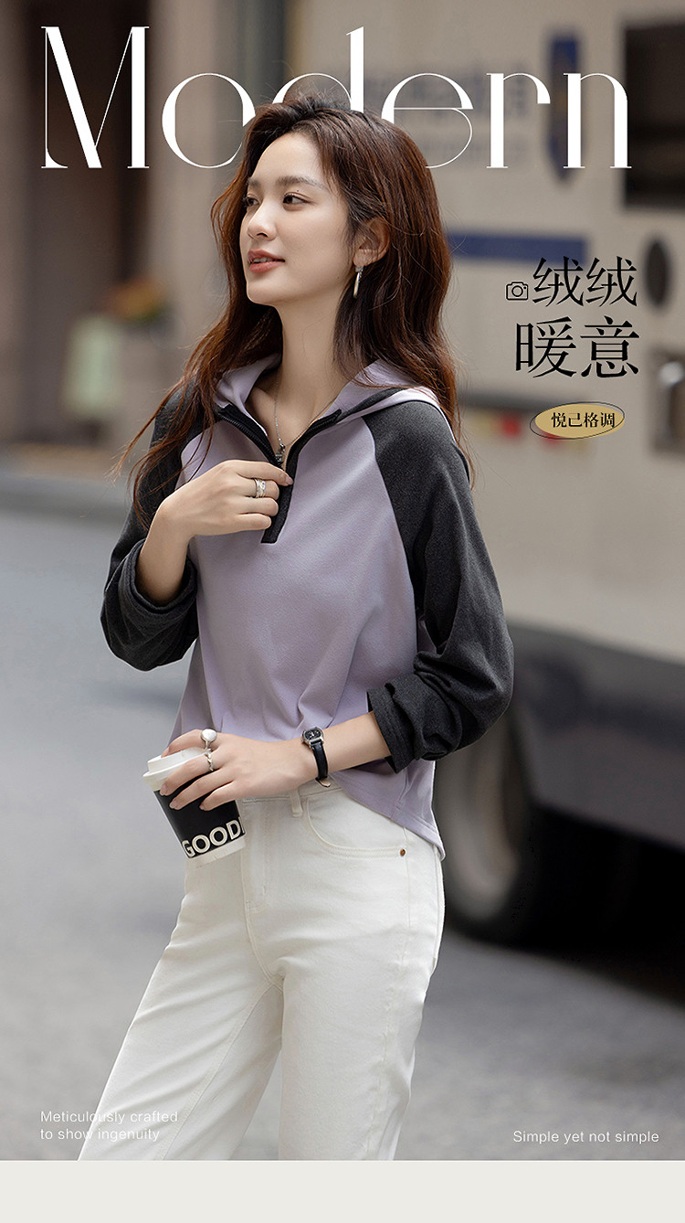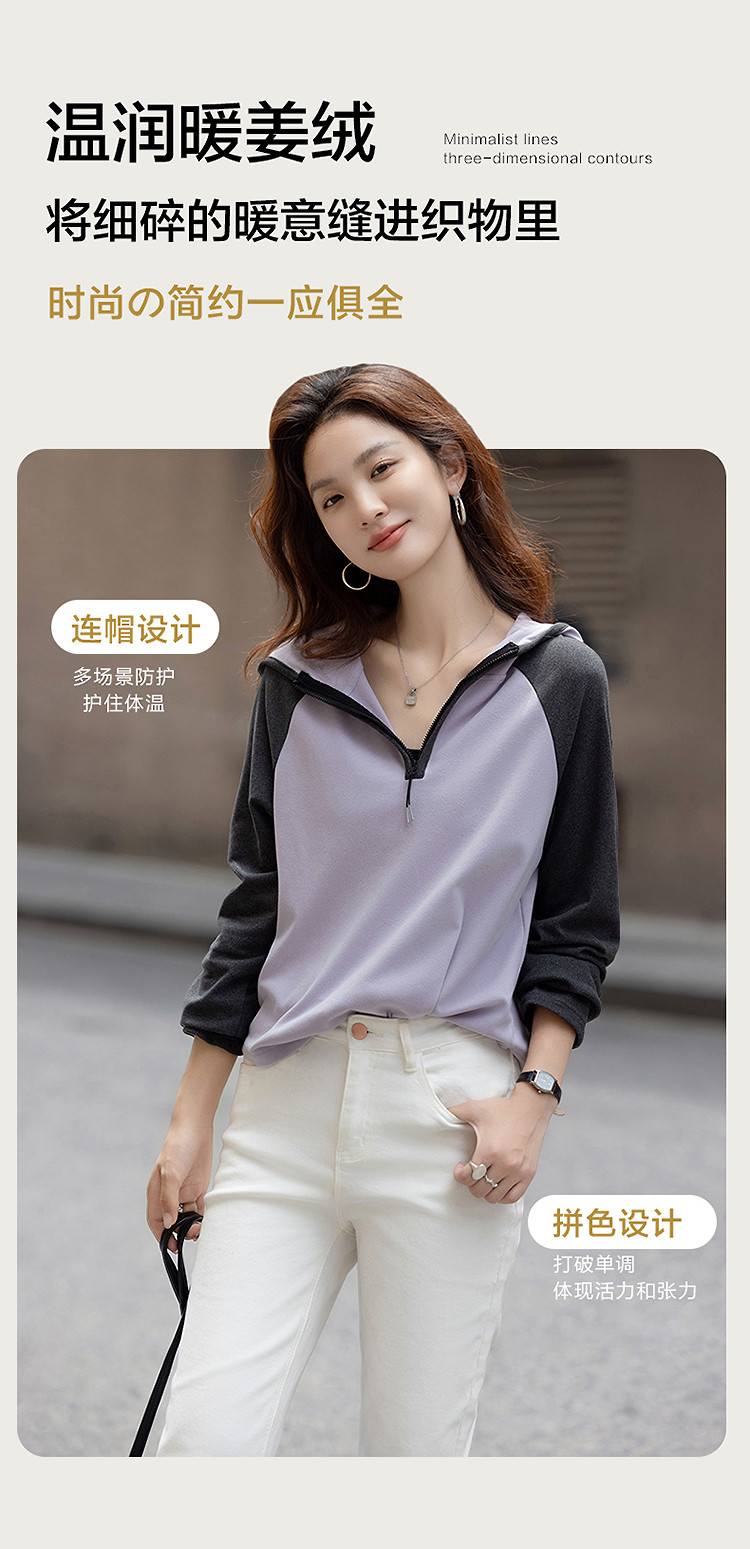 【玻尿酸抗菌远红外发热绒】冬季220G暖姜绒连帽拼接女式t恤