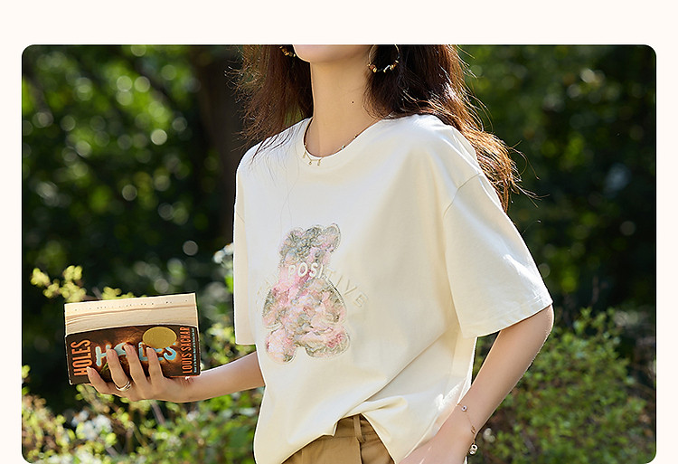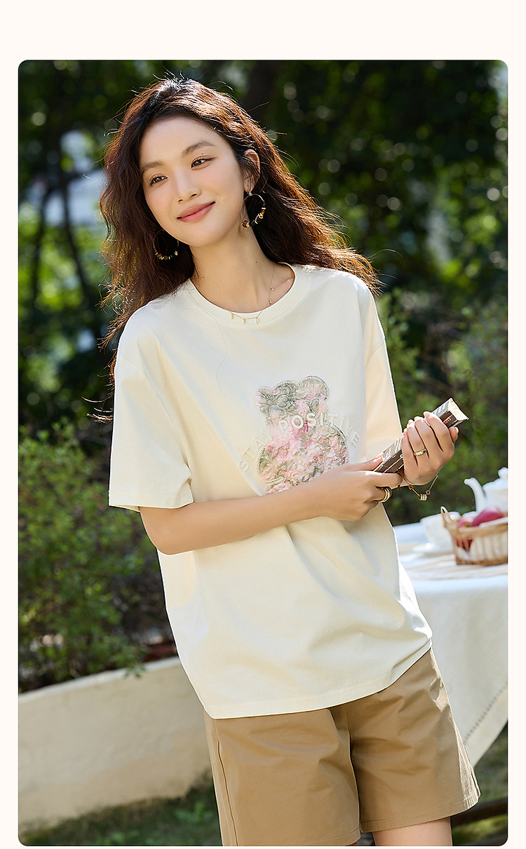 【230G阳光棉】夏季轻龄感卡通贴布绣打底衫弹力短袖女式t恤