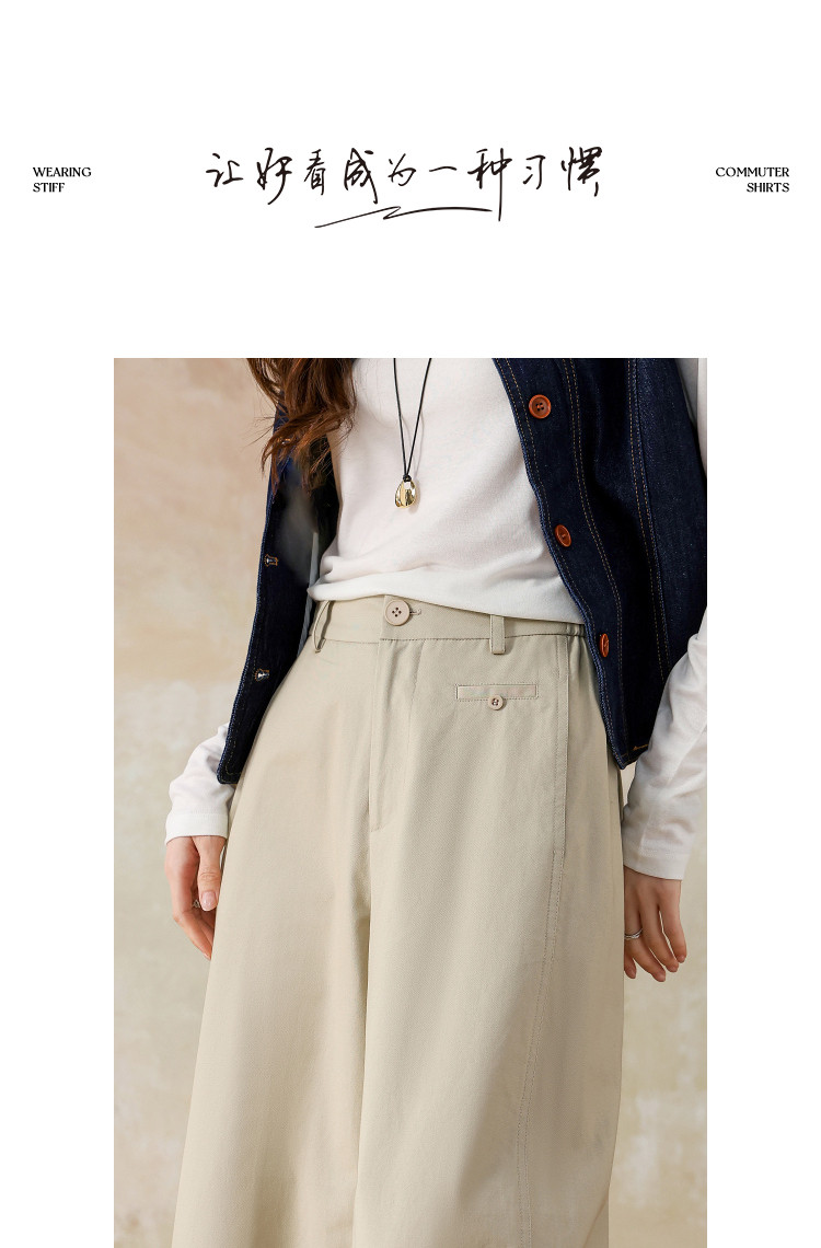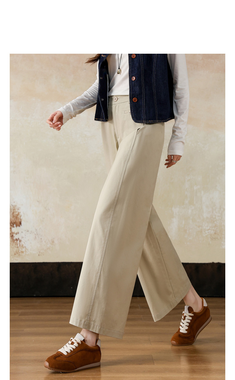 【磨毛100棉】2026春知性半松紧腰宽松九分裤小个子女式休闲裤
