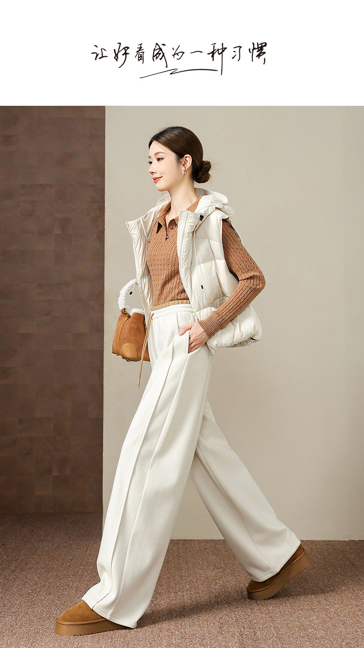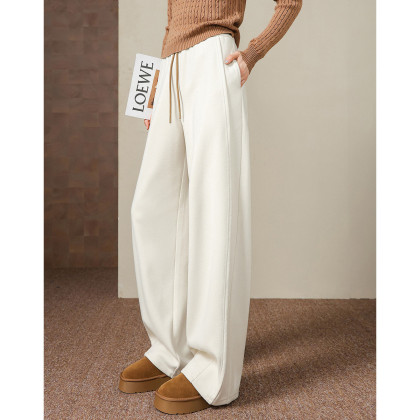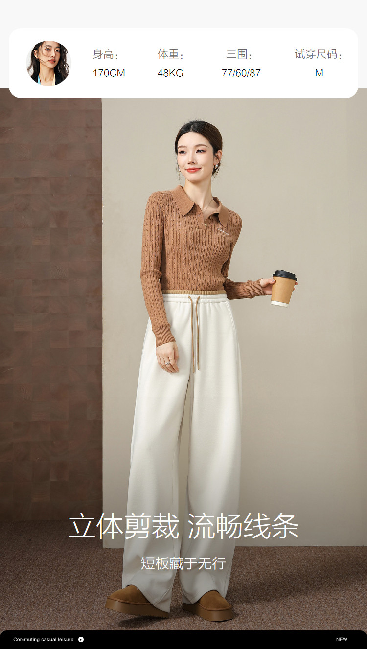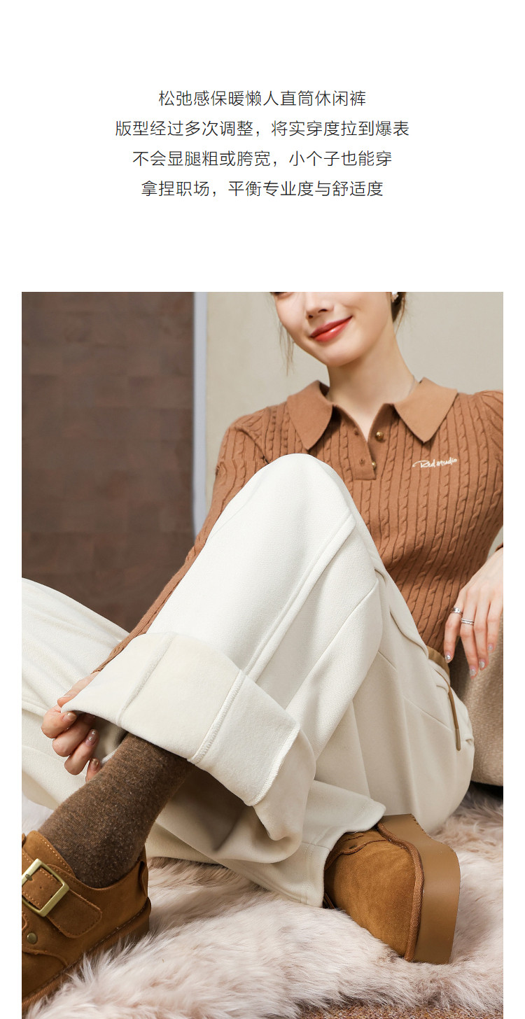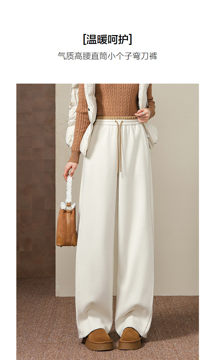 【绒暖序曲】弯刀裤25冬季抽绳撞色松紧高腰直筒小个子休闲裤女