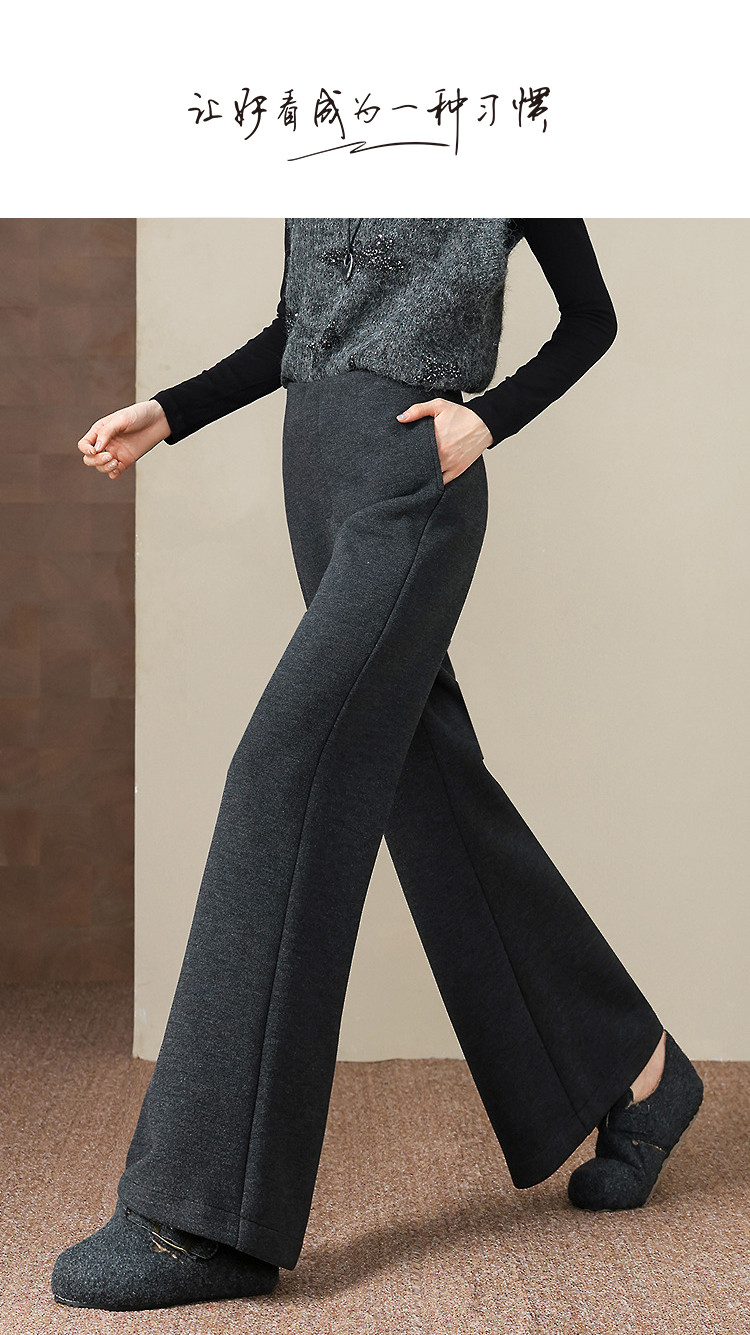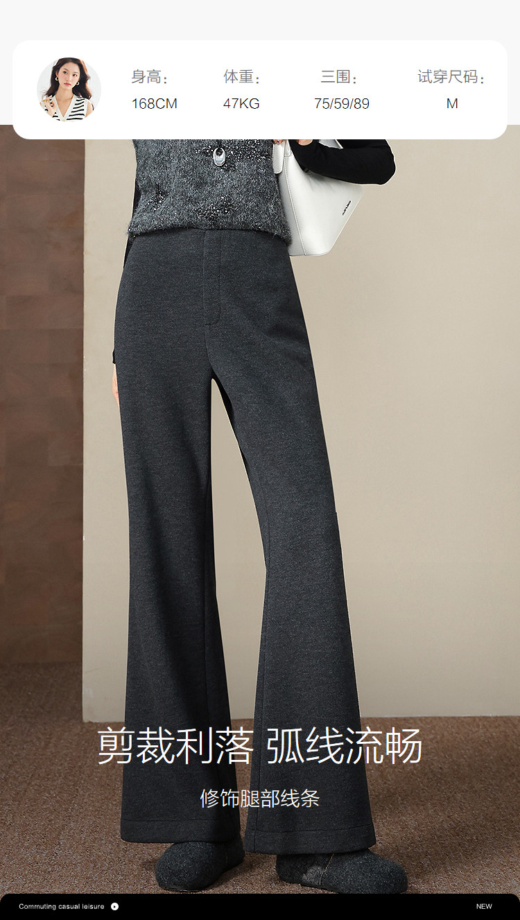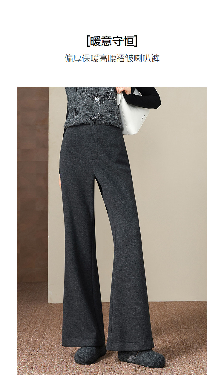 【桑蚕丝绵羊毛混纺】25冬醇厚保暖高腰弹力喇叭显瘦女式休闲裤