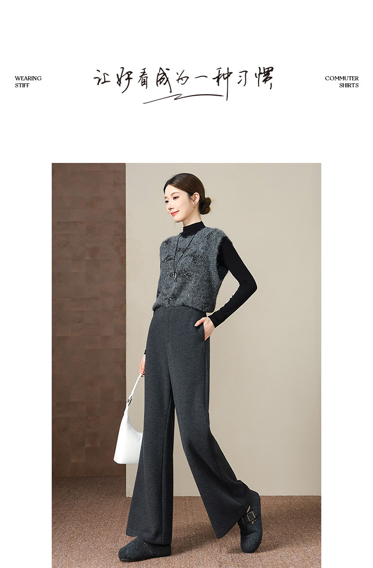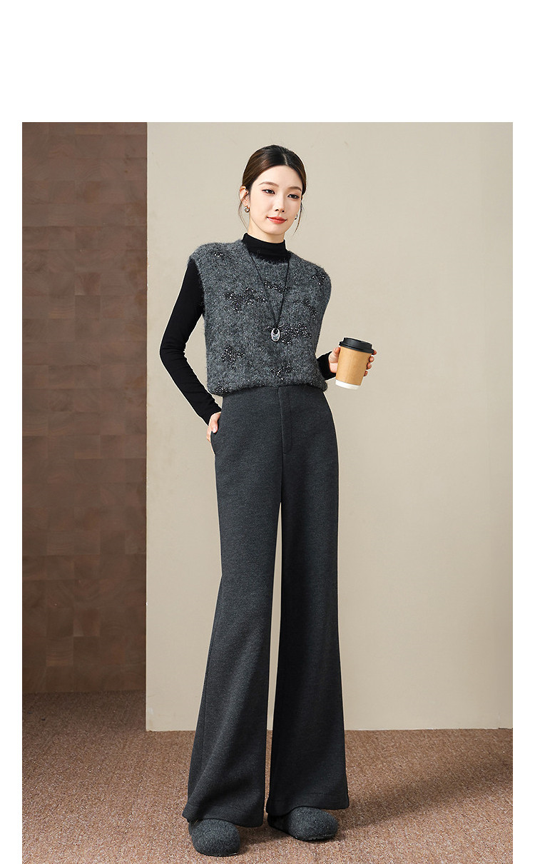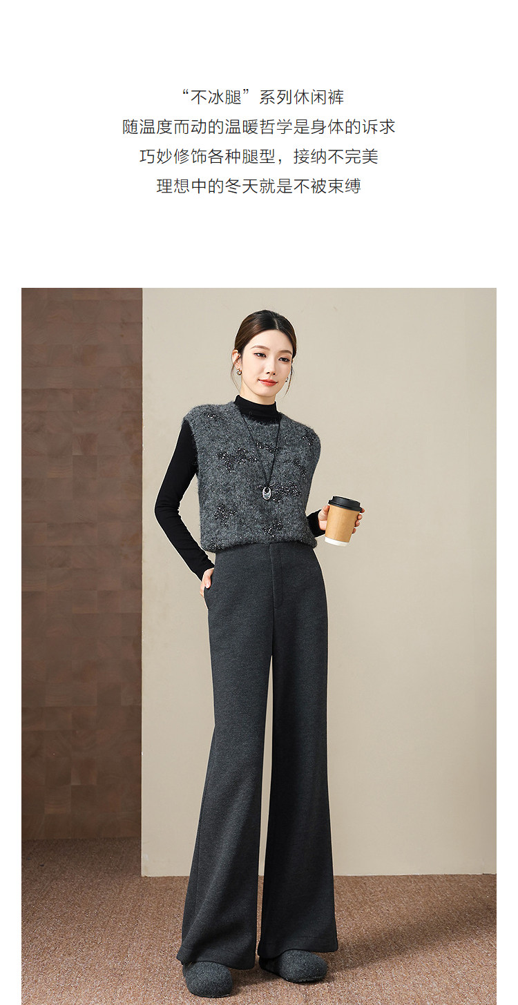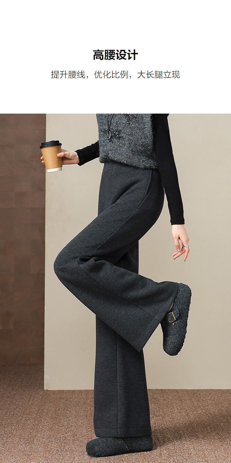 【桑蚕丝绵羊毛混纺】25冬醇厚保暖高腰弹力喇叭显瘦女式休闲裤