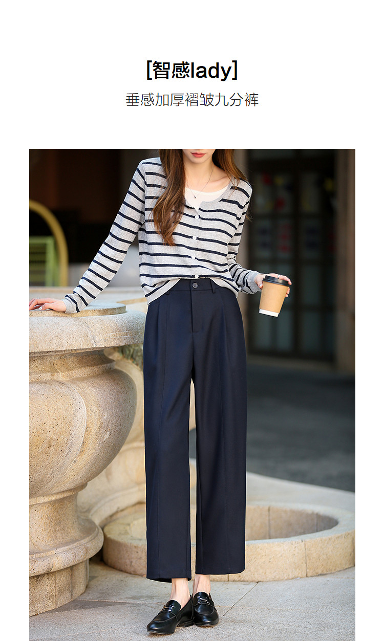 【智感lady】秋季简约通勤风垂感加厚褶皱小个子九分休闲裤