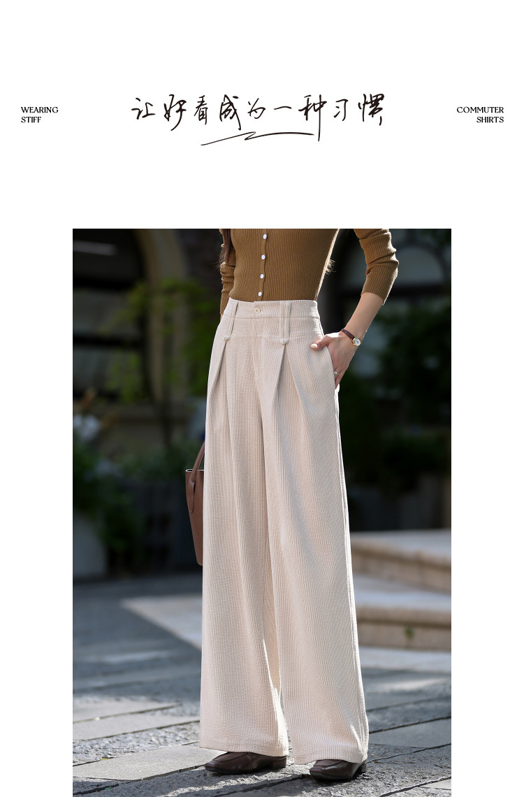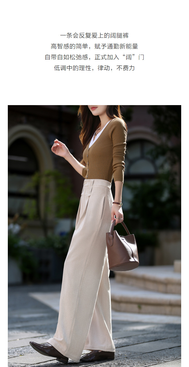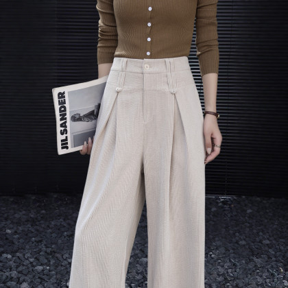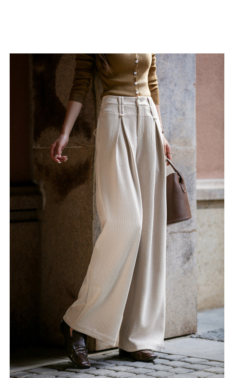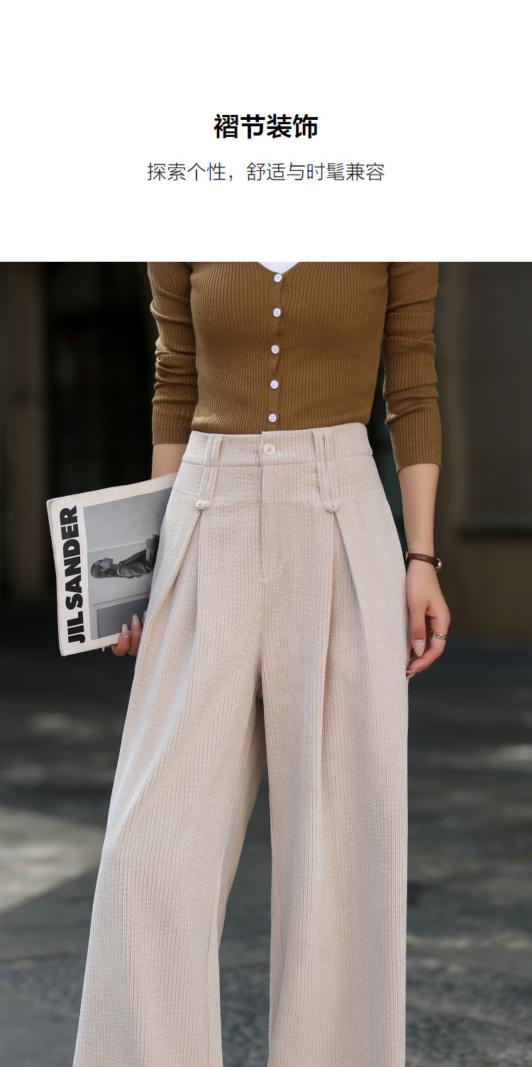 【梨形天菜】秋季保暖绒感雪尼尔褶节气质小个子阔腿女式休闲裤