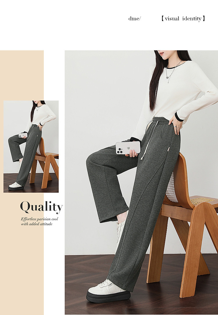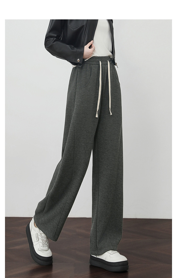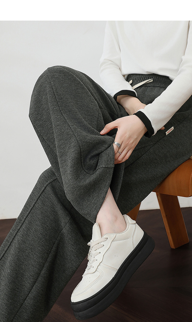 【温暖加绒系列】冬季慵懒风松紧腰系带格纹直筒小个子女式休闲裤