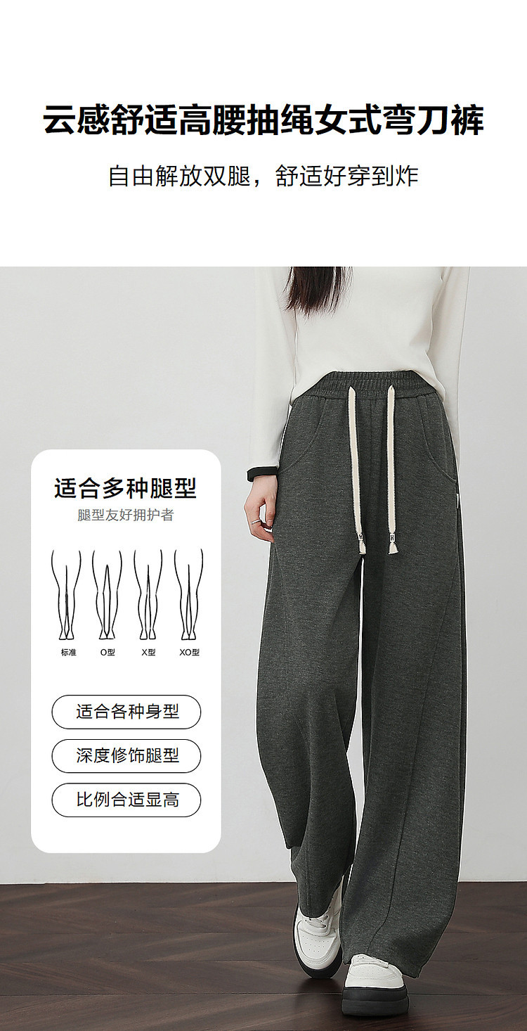 【梨形随便穿】冬季云感舒适高腰抽绳松紧弯刀裤弹力遮肉休闲裤女