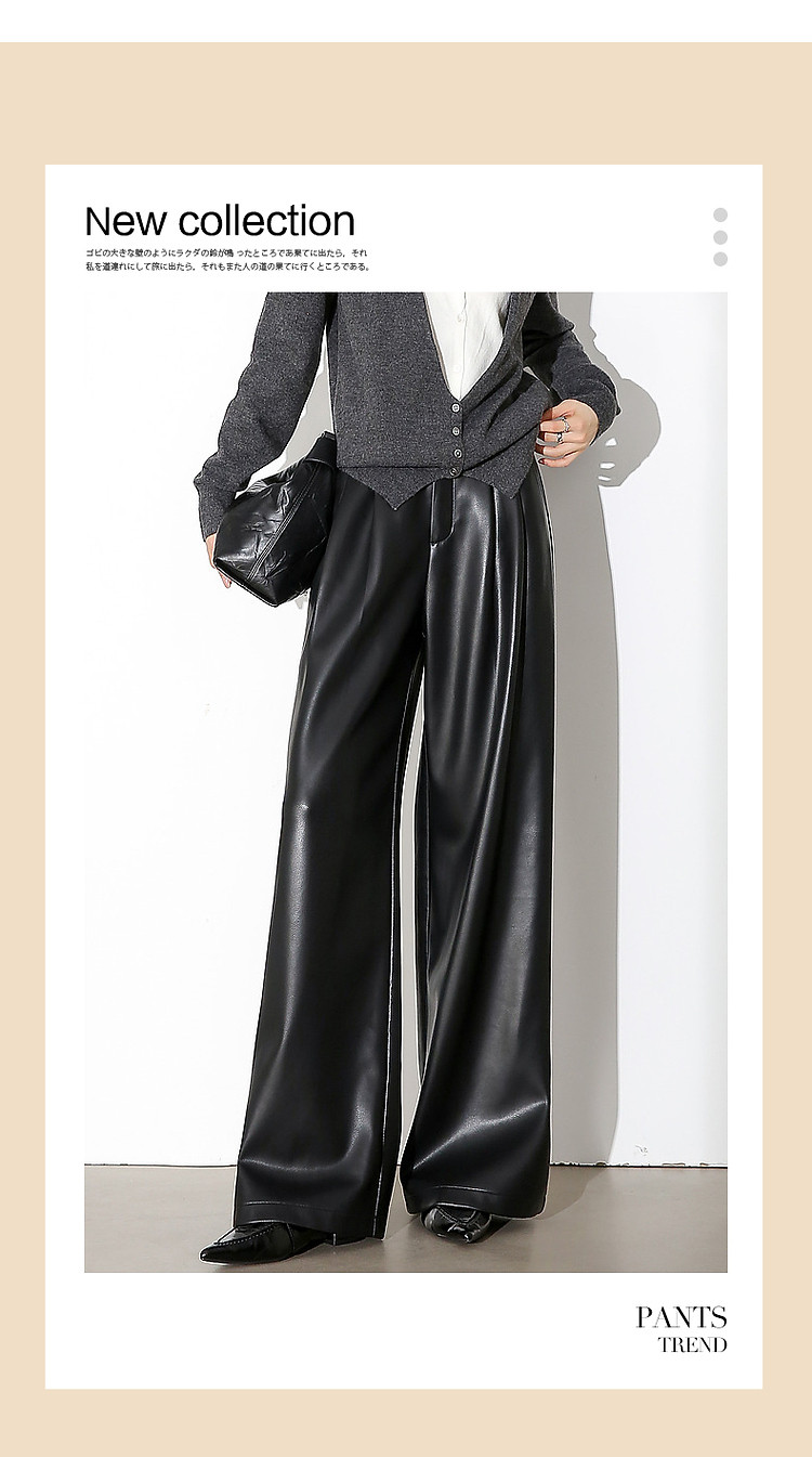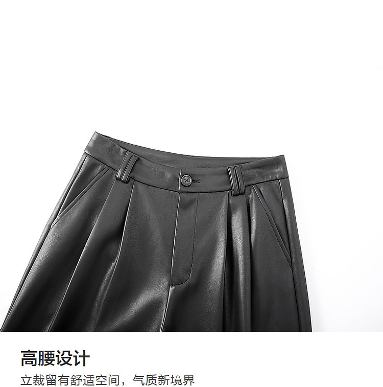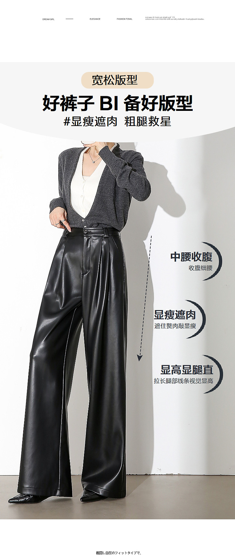 【飒美腔调】冬季立体高腰PU拖地裤宽松舒适小个子好搭女休闲裤