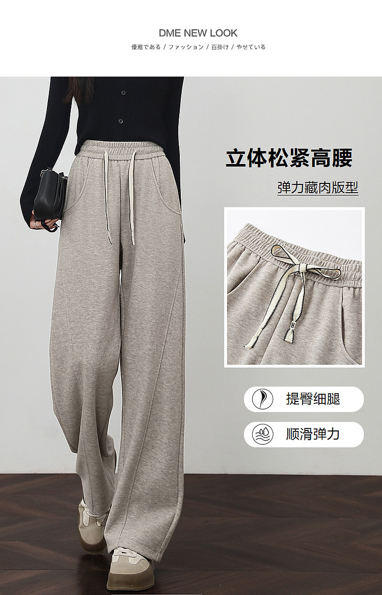【梨形随便穿】冬季云感舒适高腰抽绳松紧弯刀裤弹力遮肉休闲裤女