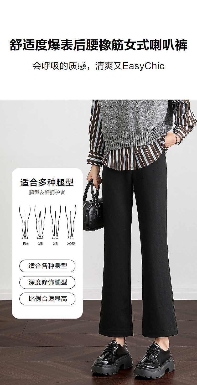 【职场人好“裤”】冬商务通勤后腰橡筋喇叭裤星空呢女式休闲裤